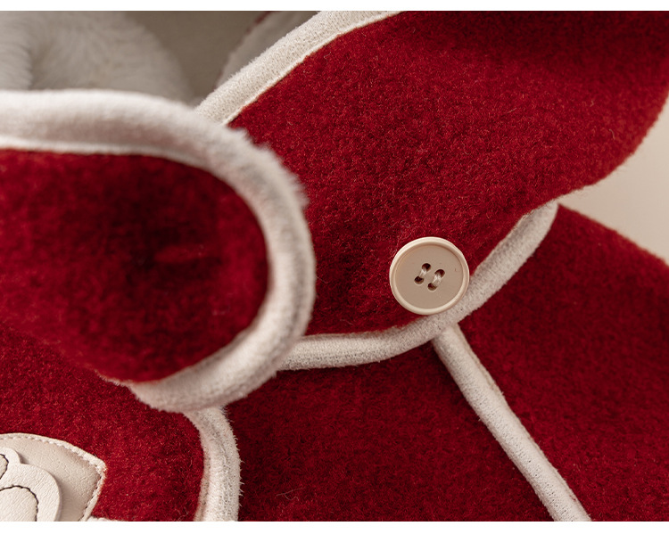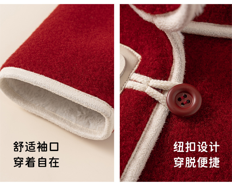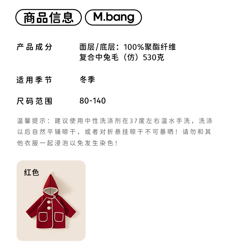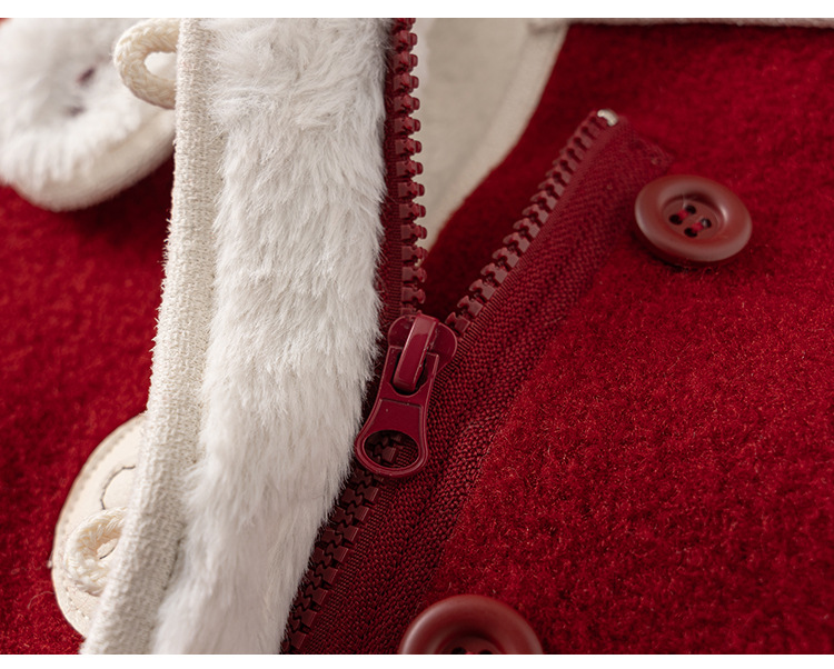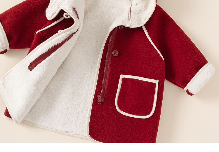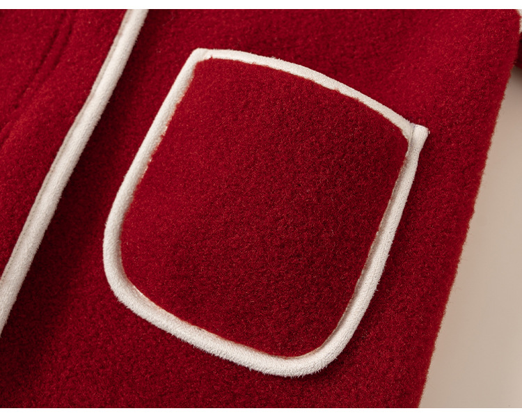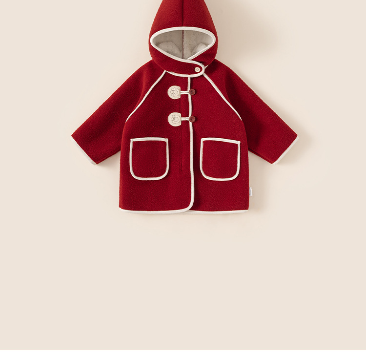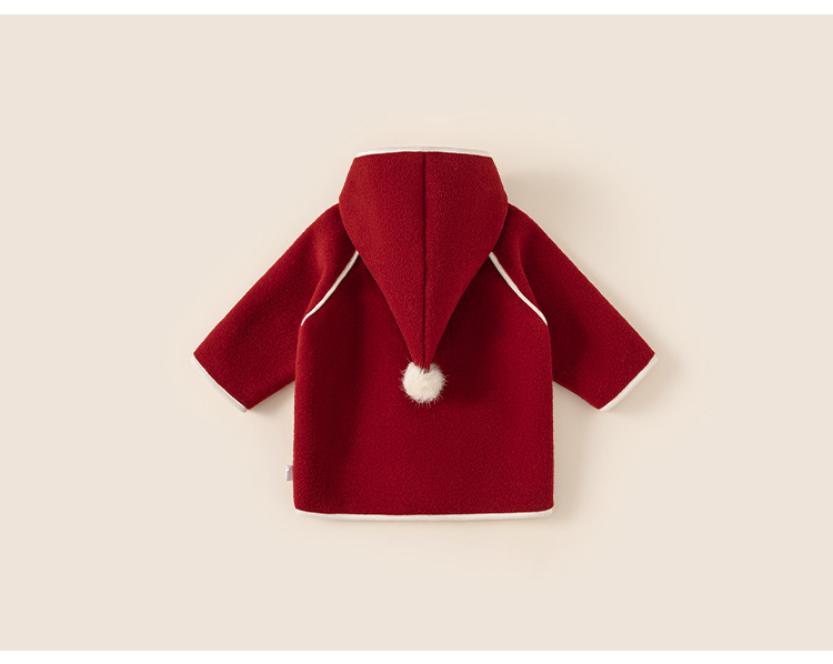 邦选小童呢大衣红色过年尖尖帽 中长款巫师帽女童外套