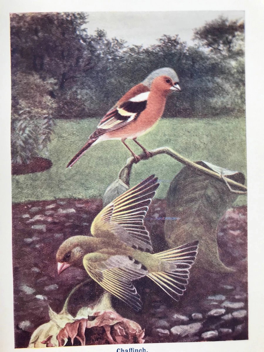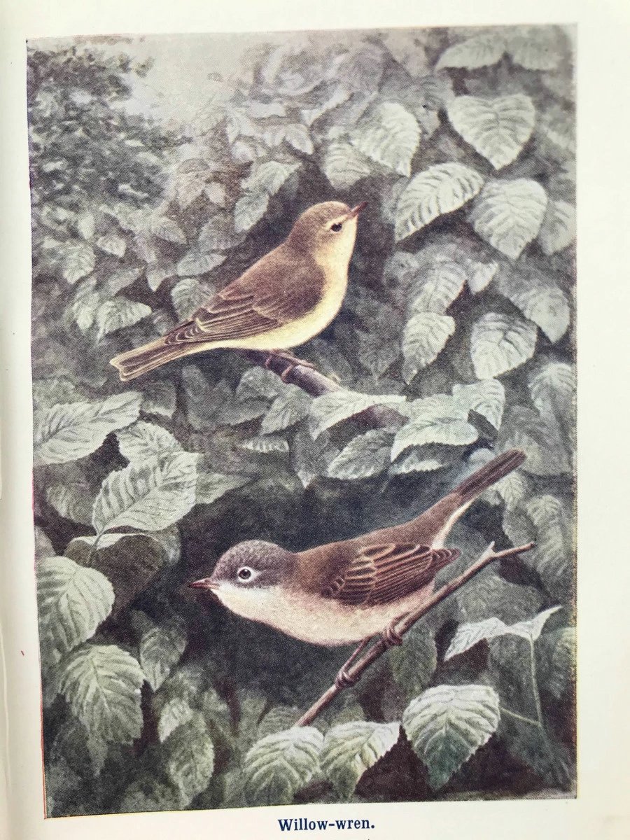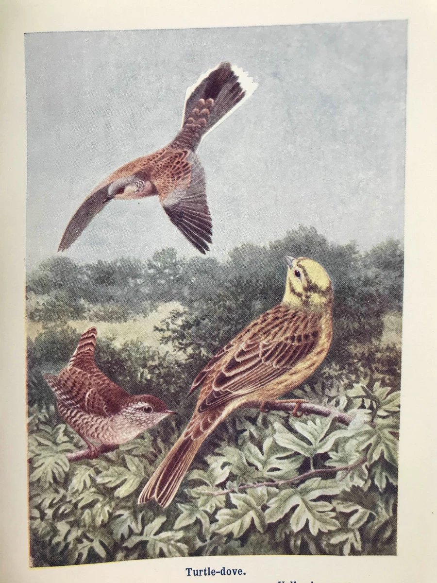 1910年 英国乡下常见鸟类手册 12幅彩色118幅黑白插图 漆布精装36开