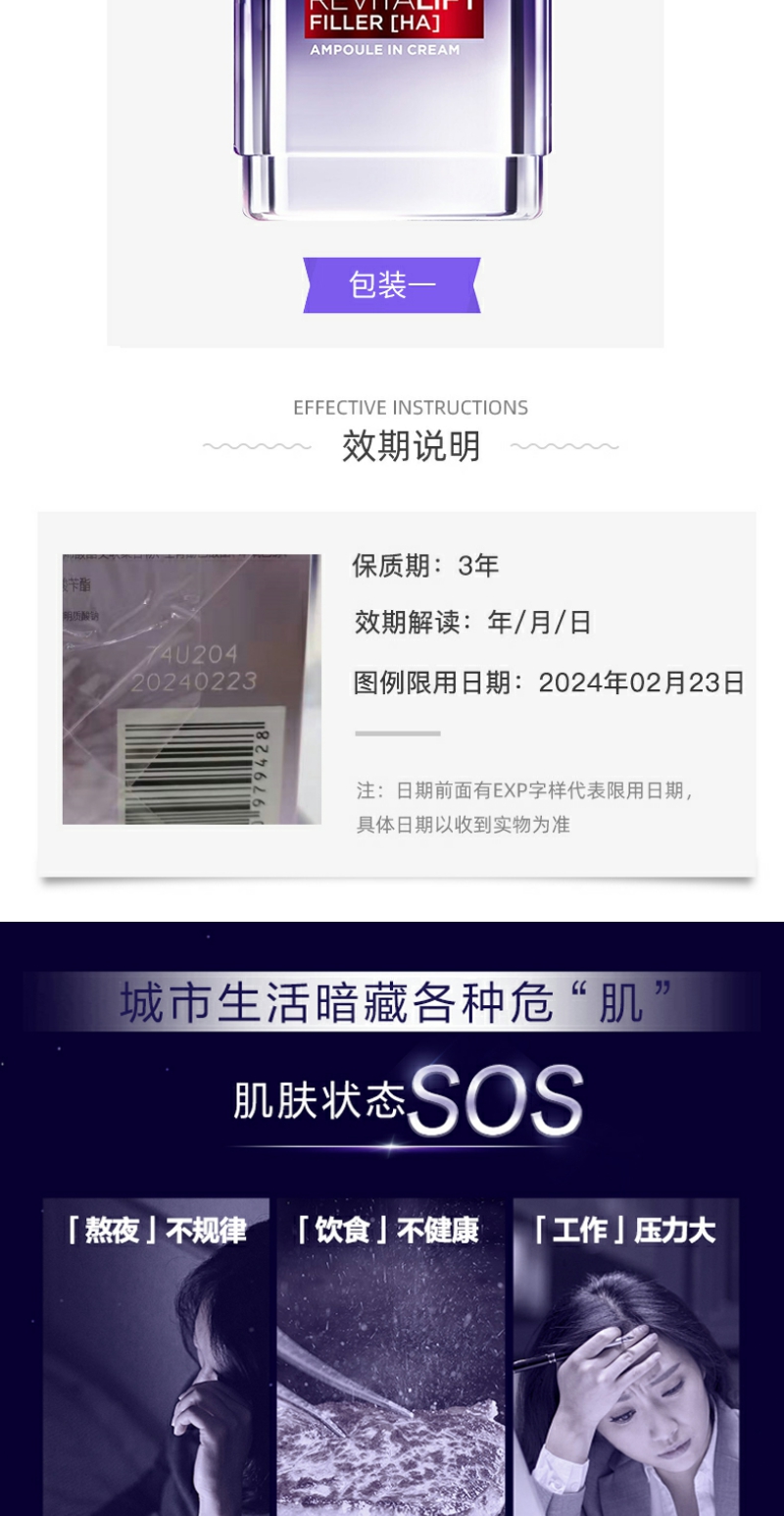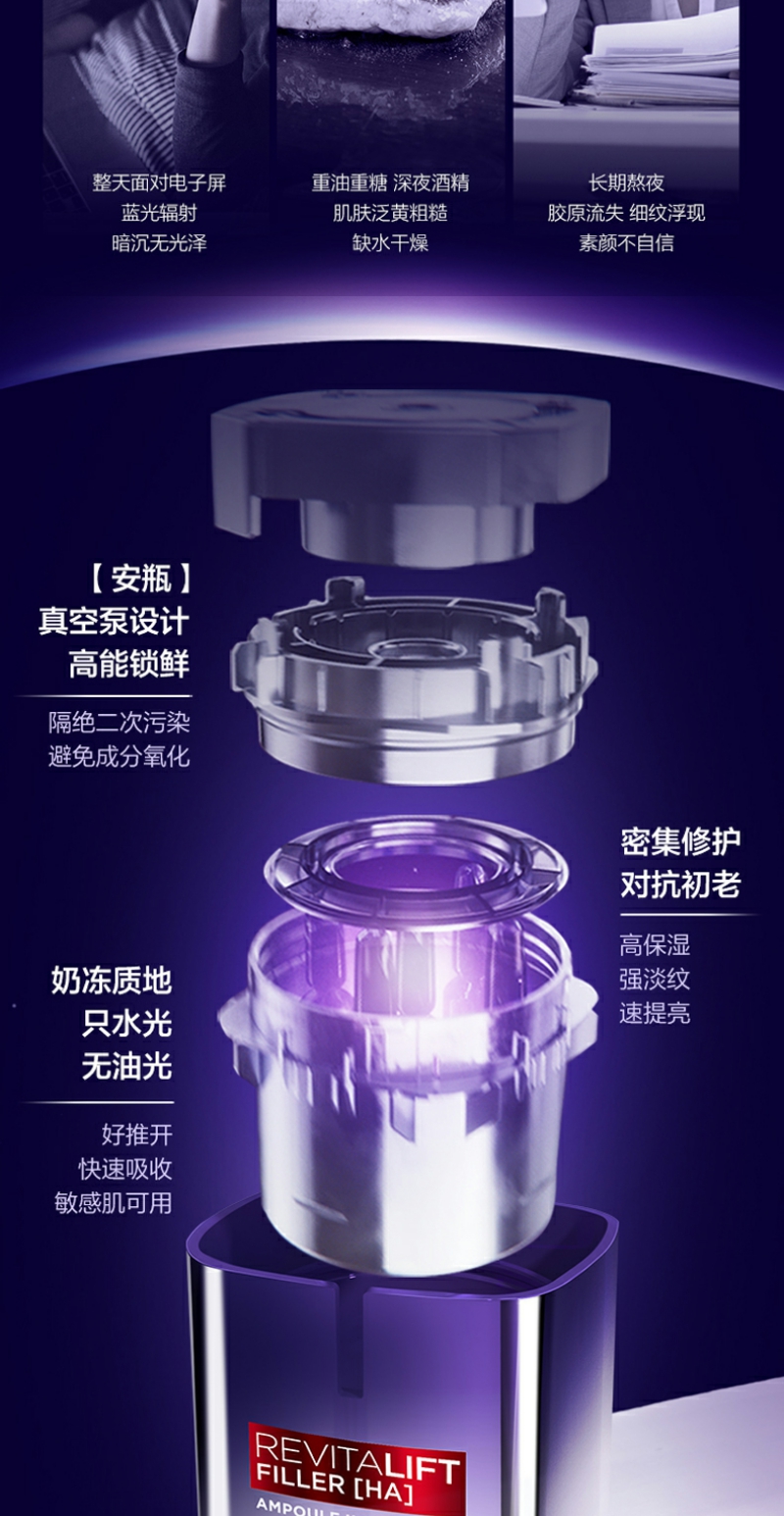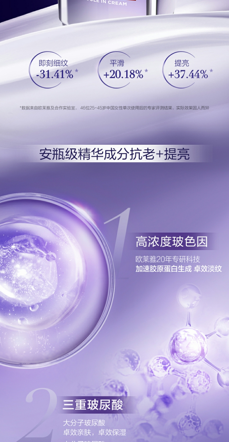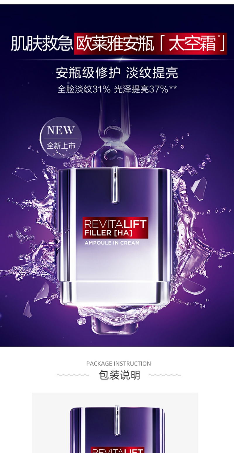 【YZ】欧莱雅复颜玻尿酸水光充盈导入精华面霜50ml太空霜