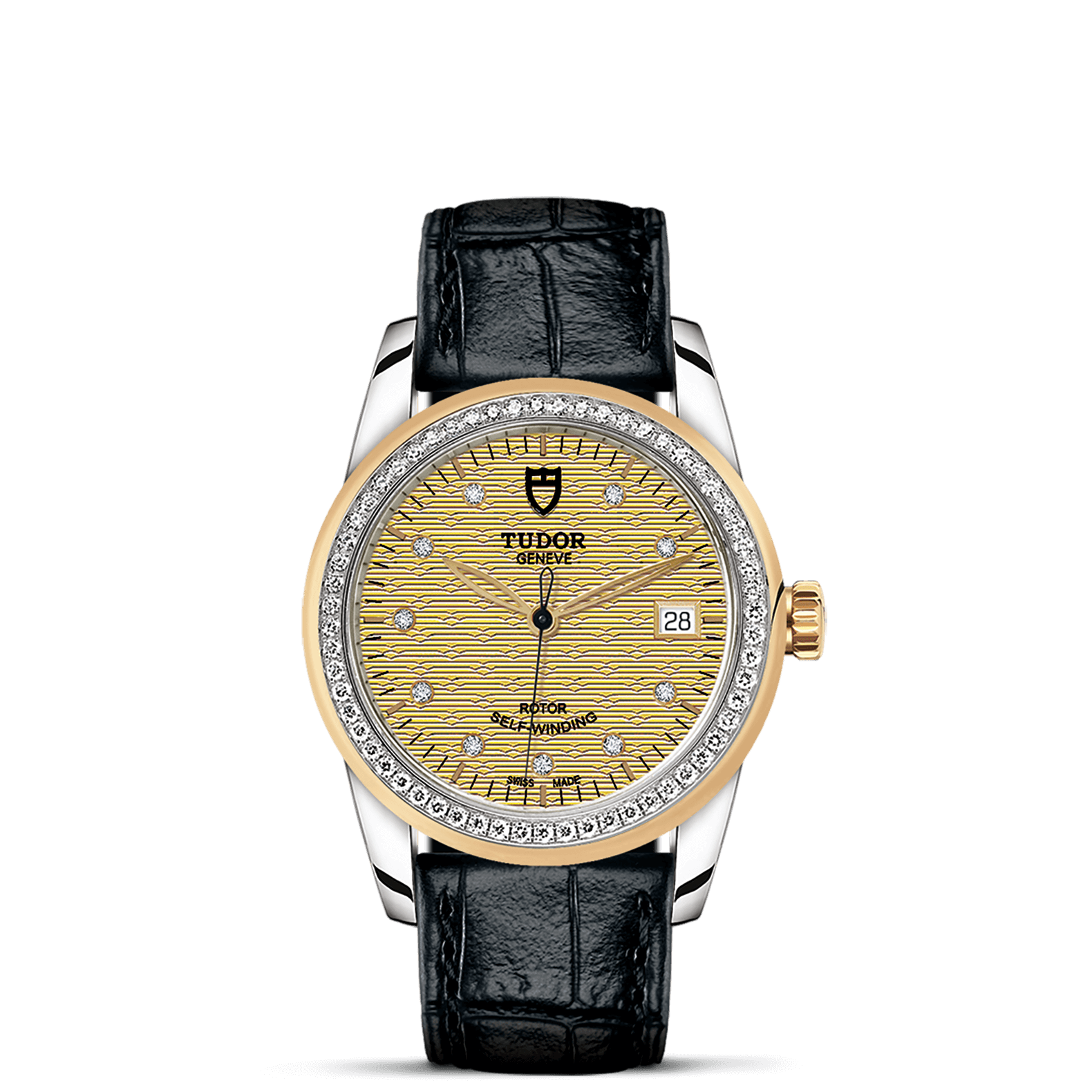 旋入式上链錶冠,饰以帝舵表标志;精钢覆有0.1毫米18K黄金薄层
