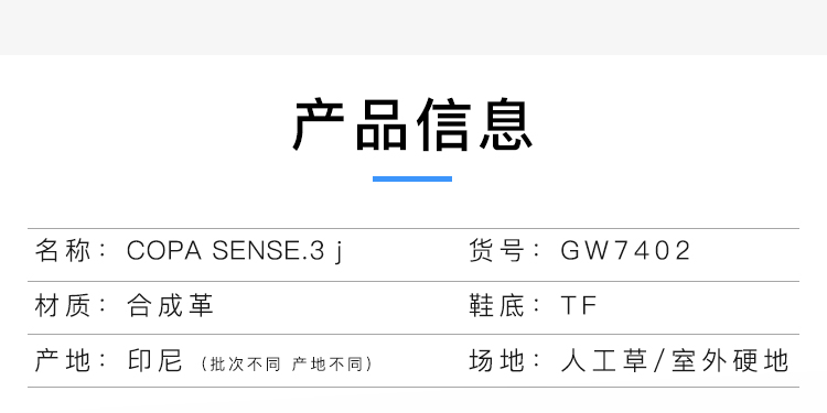 ADIDAS/阿迪达斯COPA SENSE.3 TF碎钉儿童款中端足球鞋男GW7402