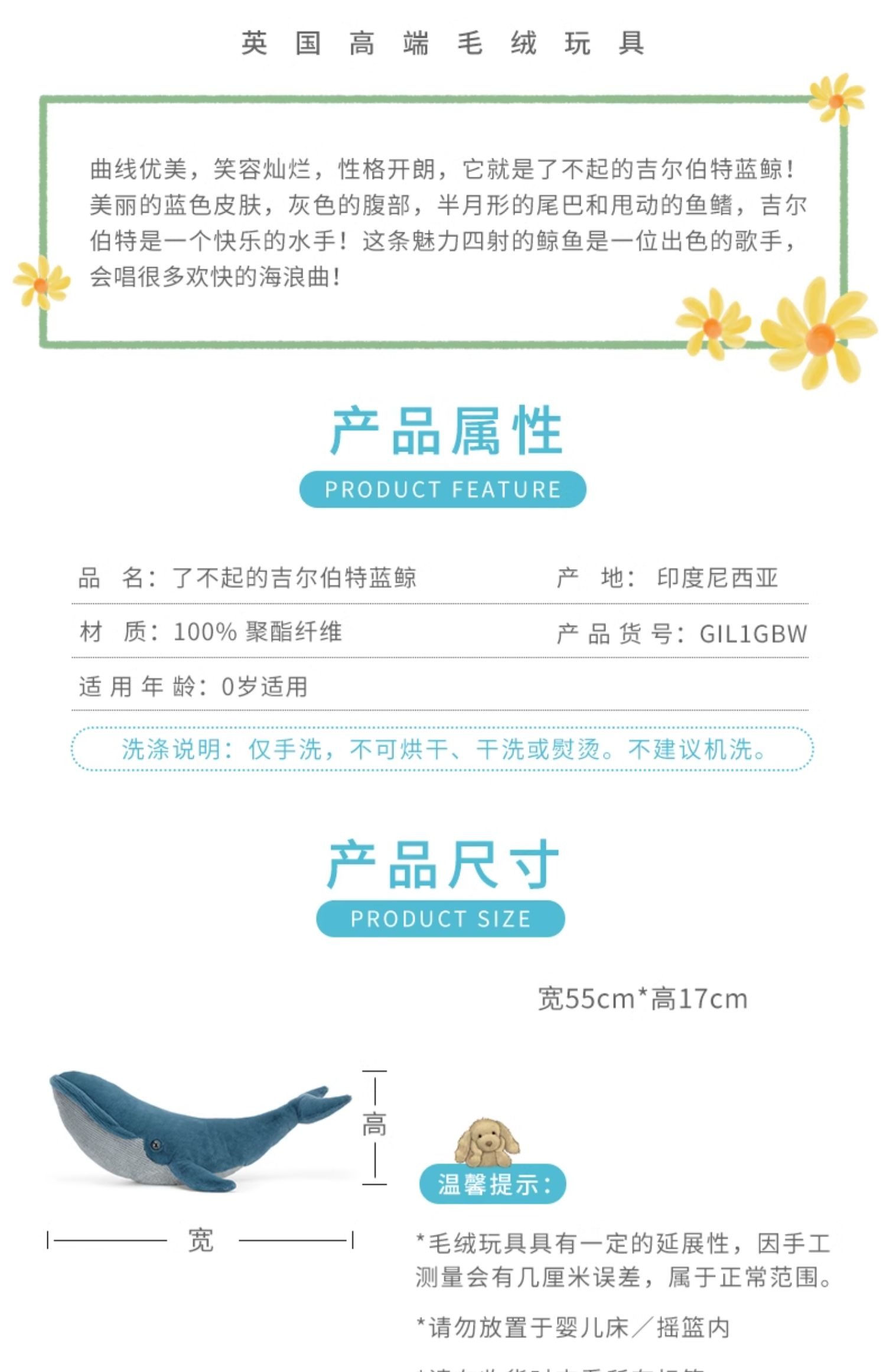 Jellycat 了不起的吉尔伯特蓝鲸 17cm