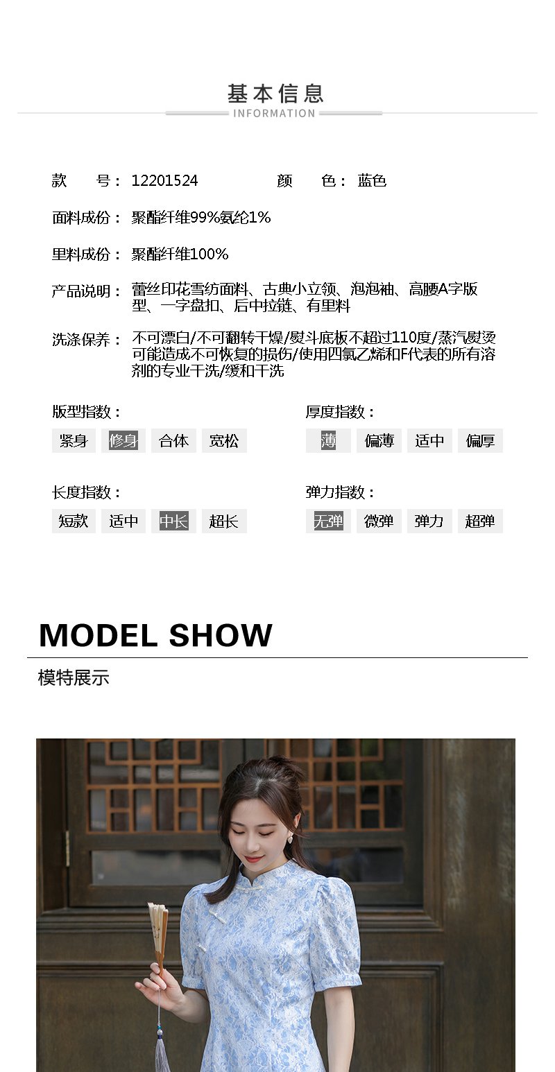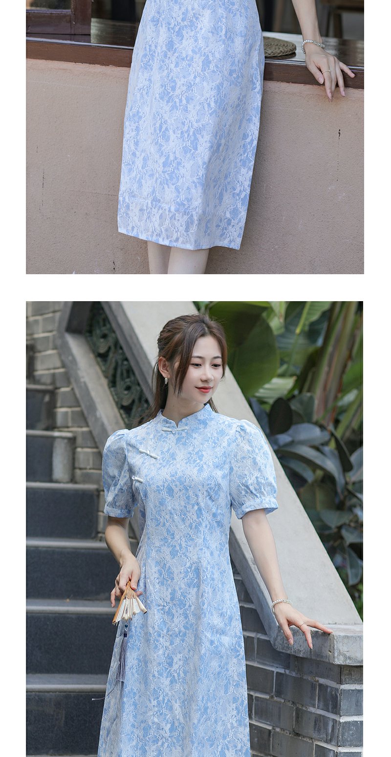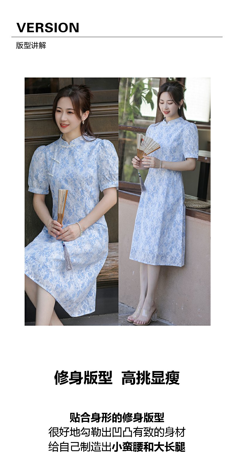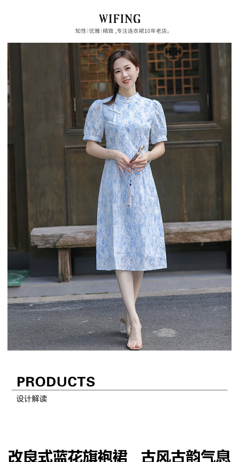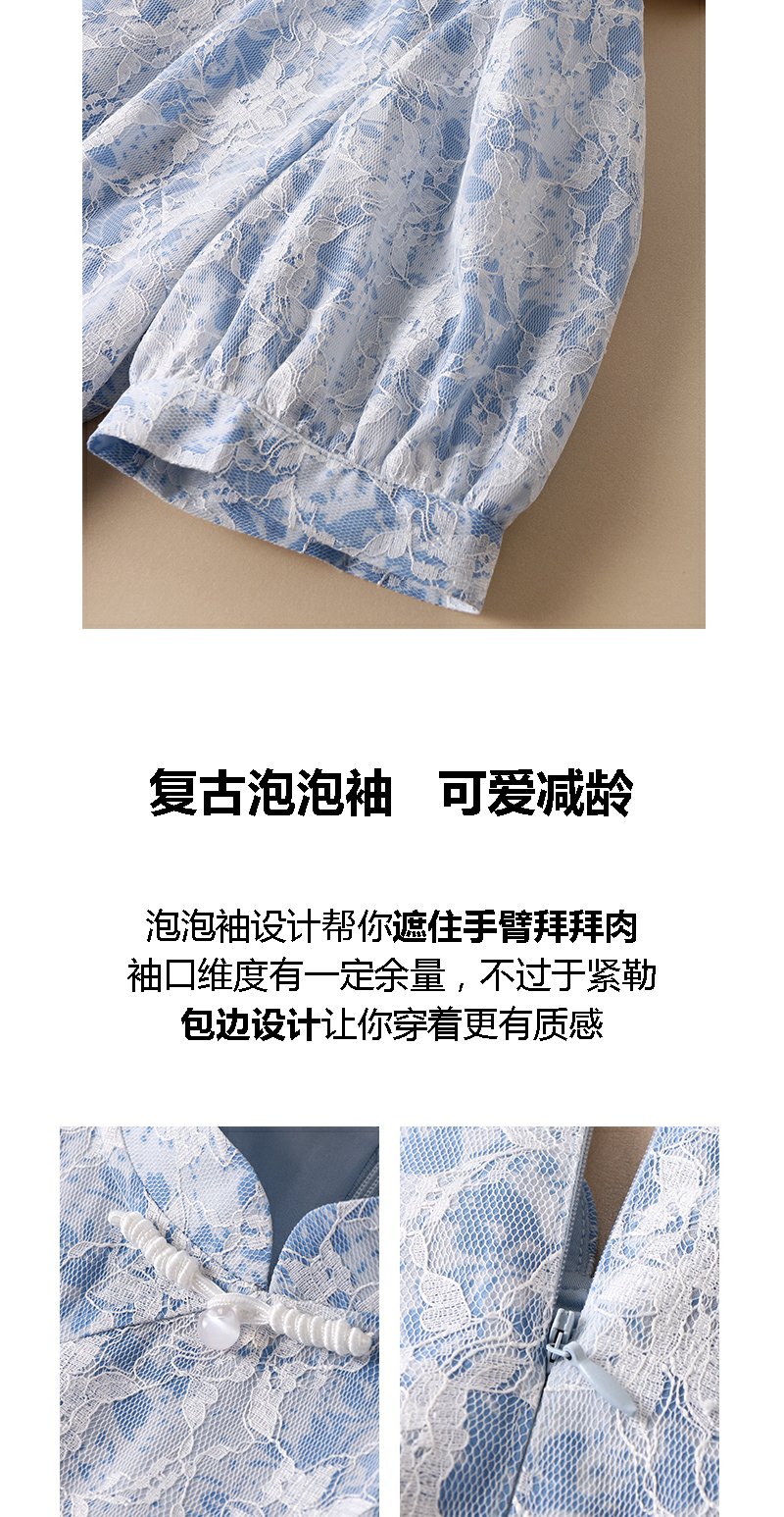 未风蓝色改良旗袍连衣裙女夏2024夏季新款女装显瘦新中式国风裙子