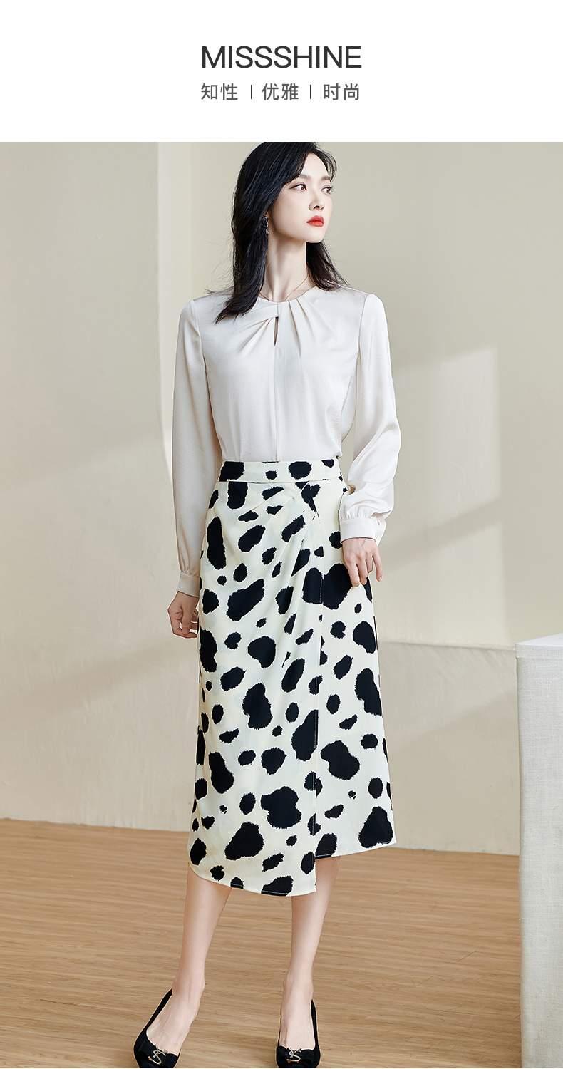剩S/M 米思阳2025春季新款时尚大气淑女高腰半身裙压褶遮肚小A字裙2204