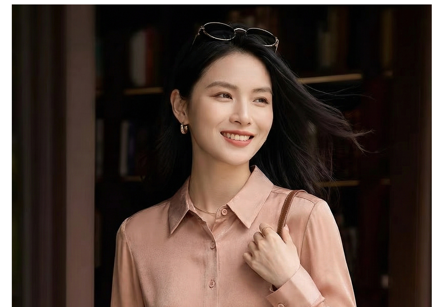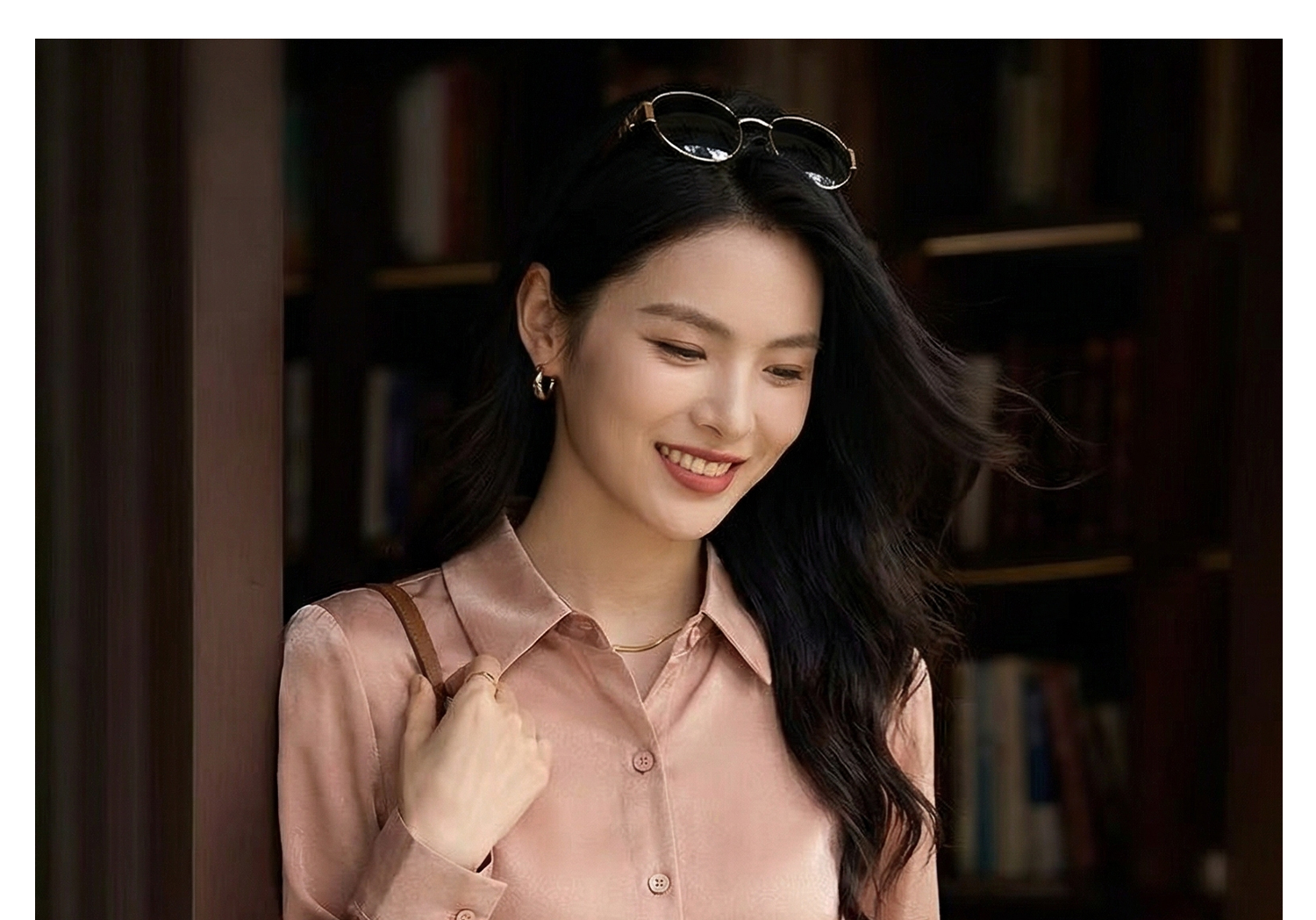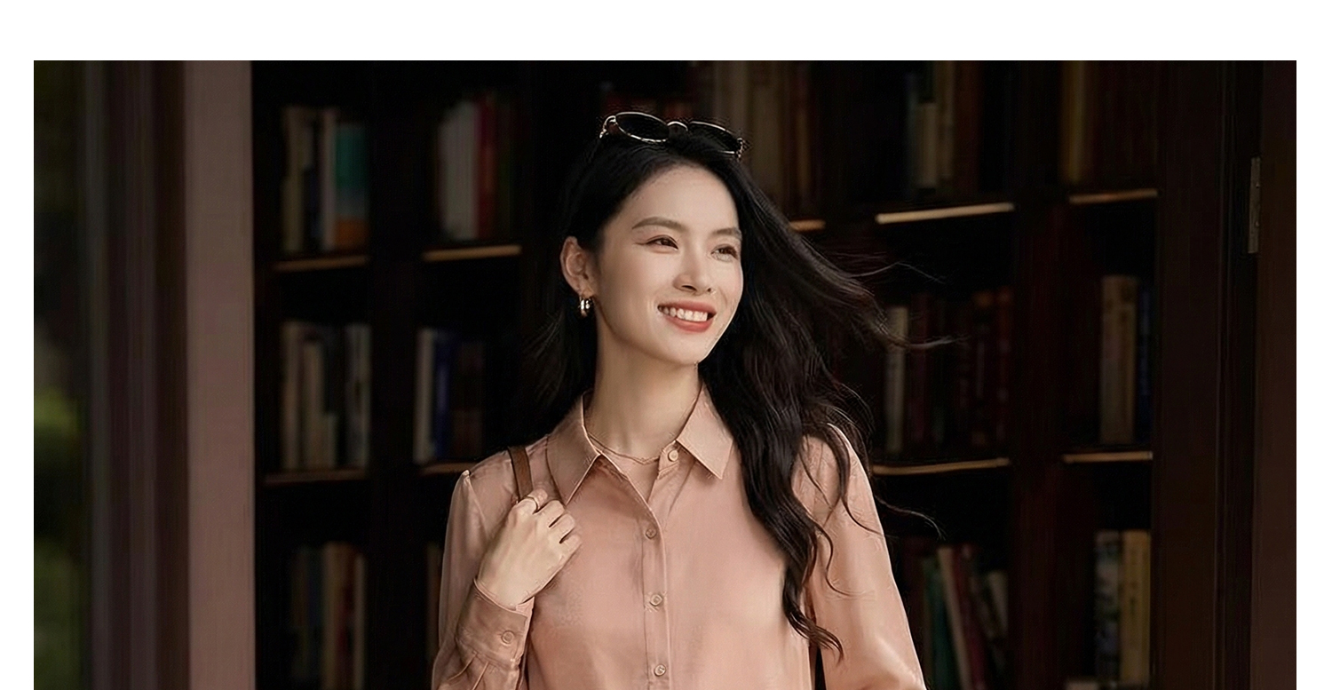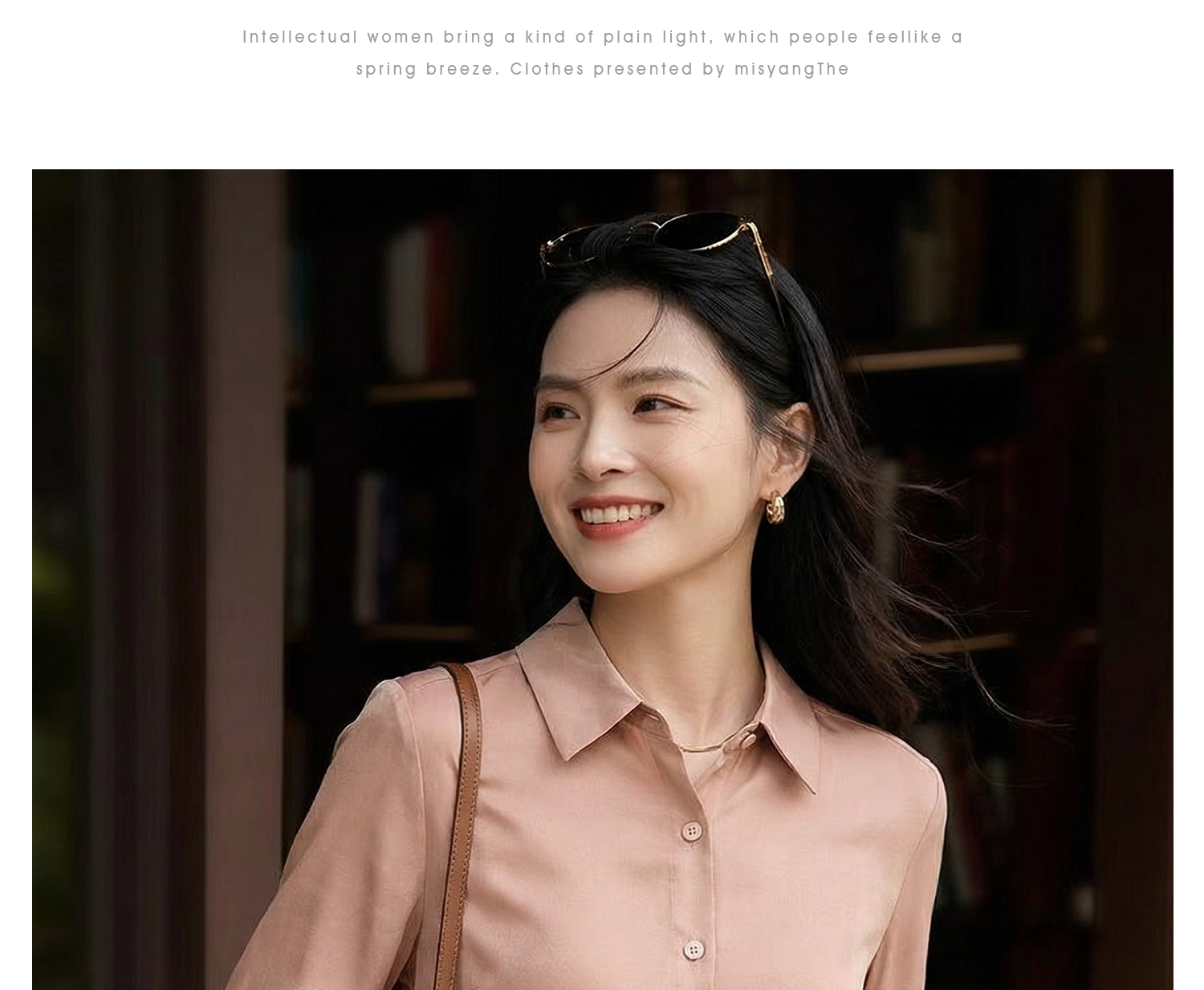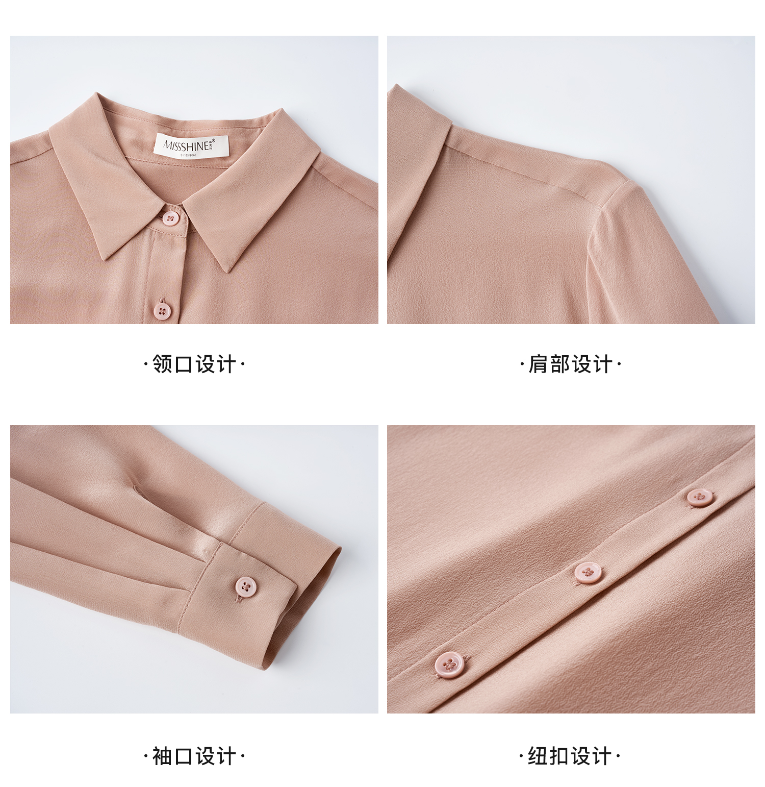 「柔金缎真丝衬衫」会呼吸的桑蚕丝 柔滑亲肤 自带珍珠光泽 远看显贵 近触高级 米思阳2026春季衬衫高级感通勤百搭显瘦翻领长袖女式衬衫1420