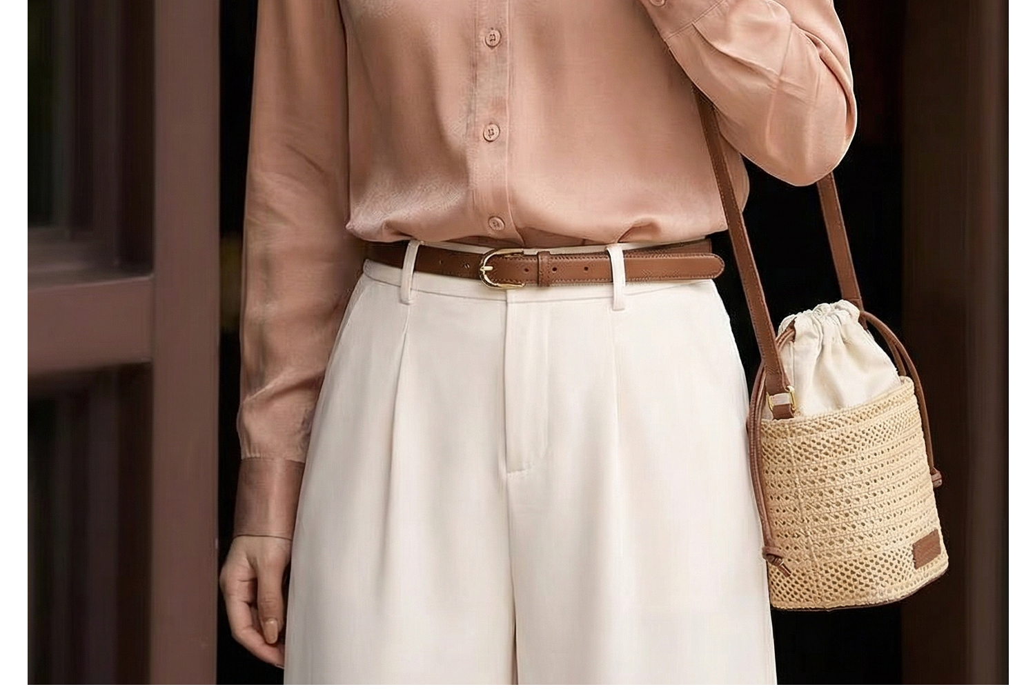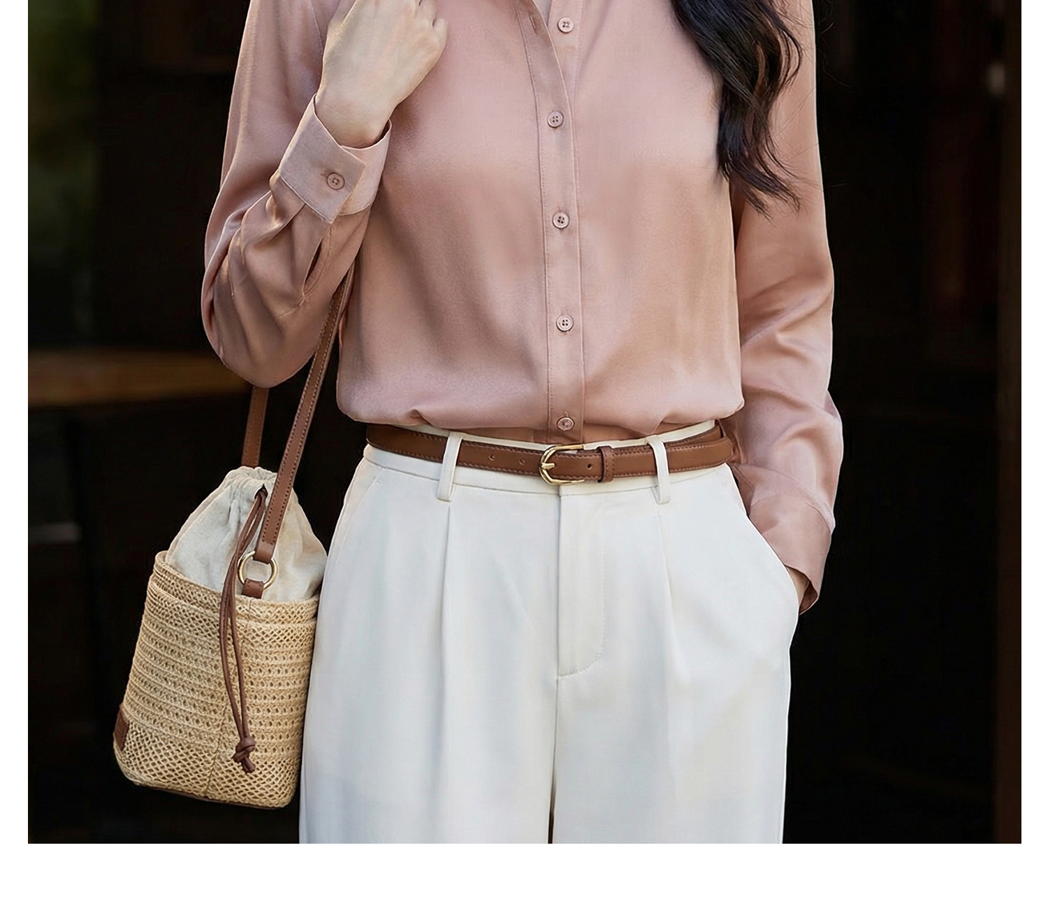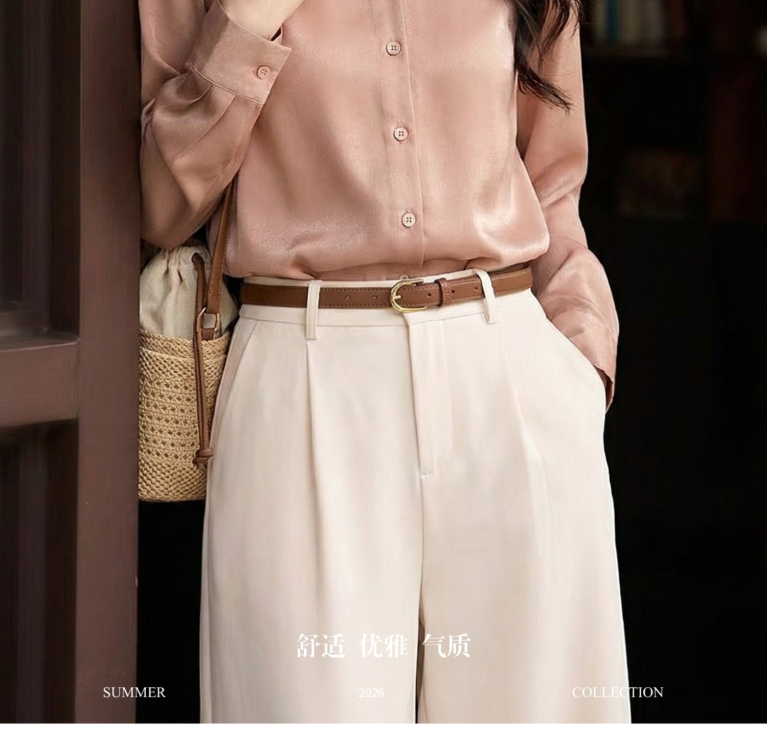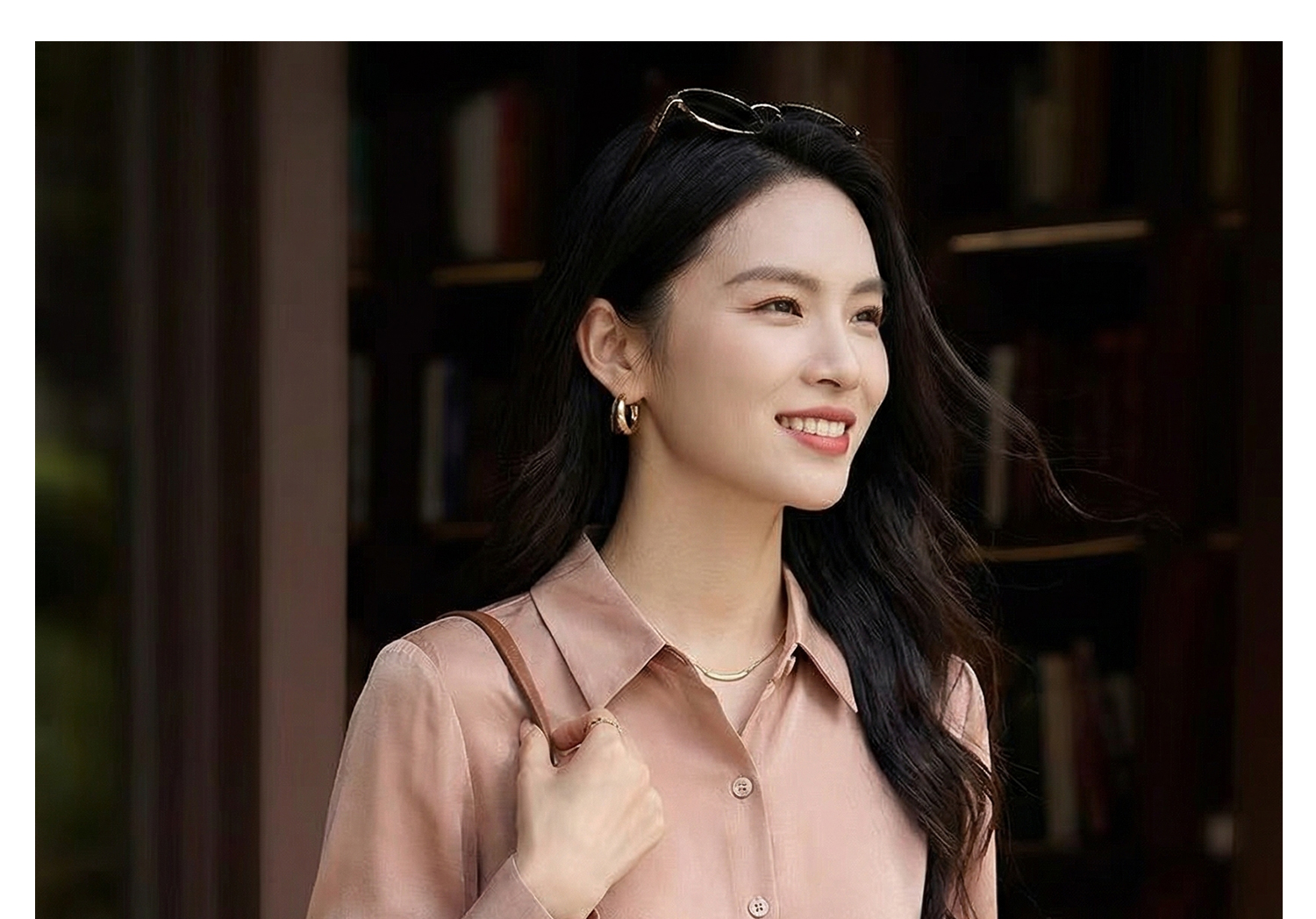 「柔金缎真丝衬衫」会呼吸的桑蚕丝 柔滑亲肤 自带珍珠光泽 远看显贵 近触高级 米思阳2026春季衬衫高级感通勤百搭显瘦翻领长袖女式衬衫1420