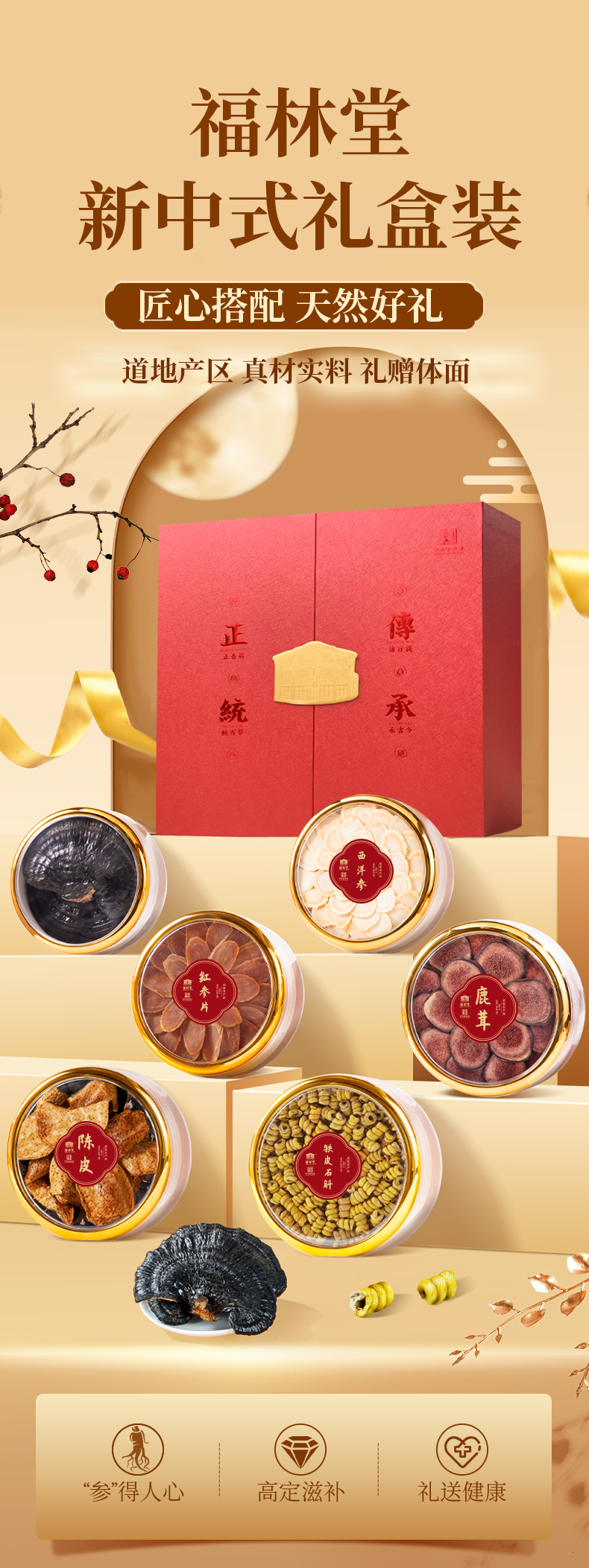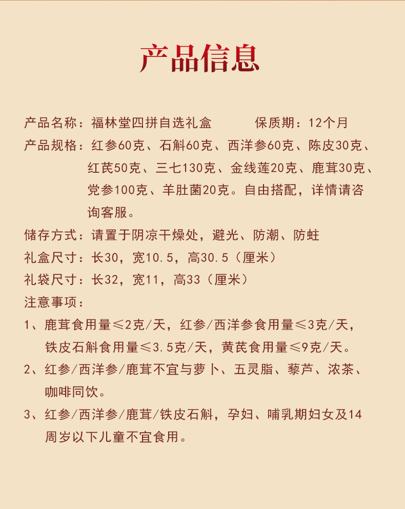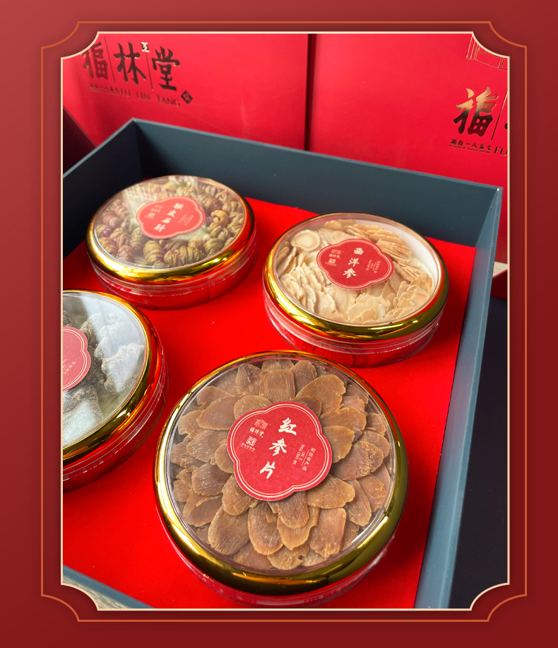 福林堂四拼礼盒(红参60克/盒,铁皮石斛60克/盒,三七130克/盒,西洋参60克/盒)+手提袋 lc