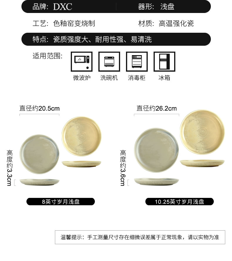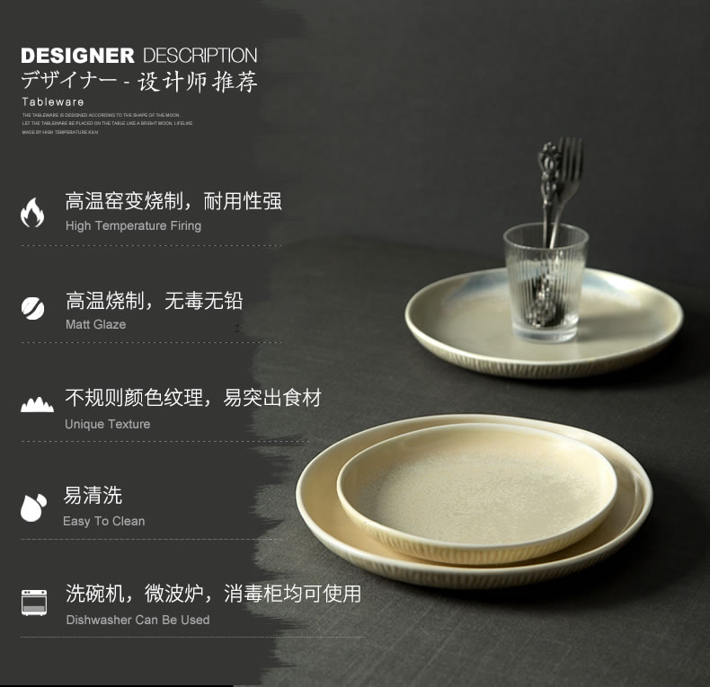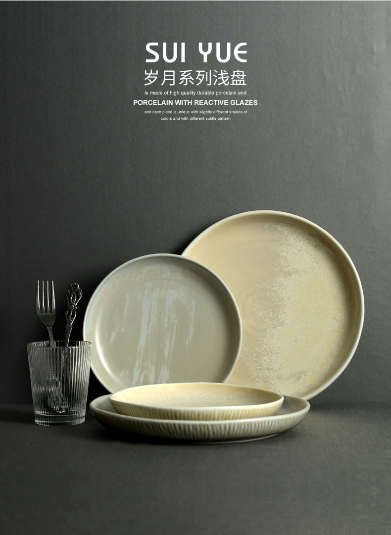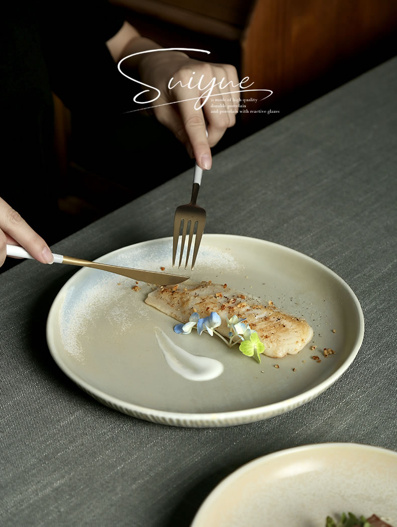 DXC北欧风陶瓷浅盘子圆形精致创意个性家用 不规则陶瓷餐具菜碟子