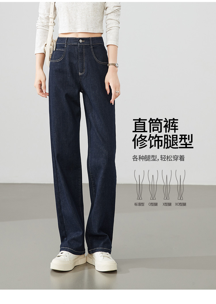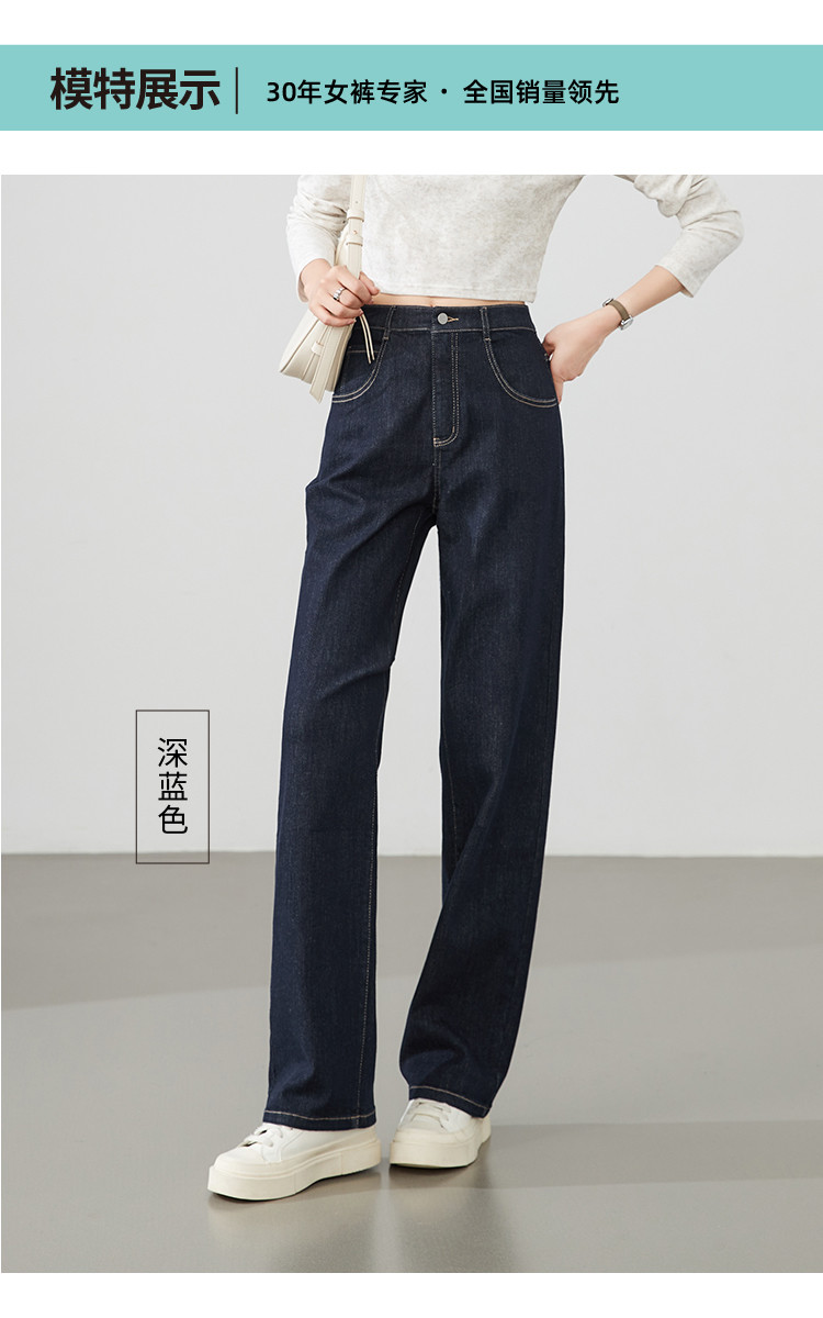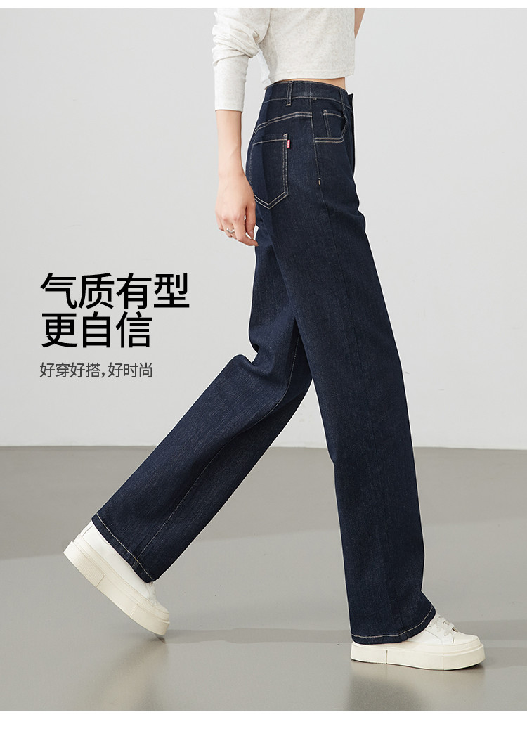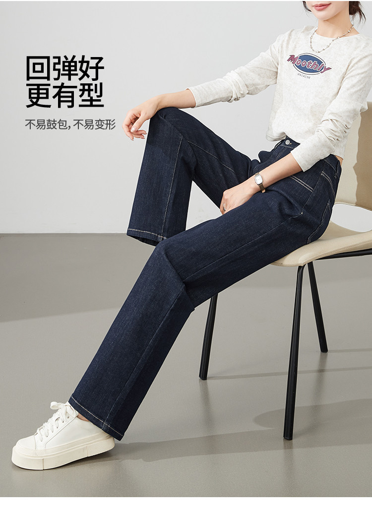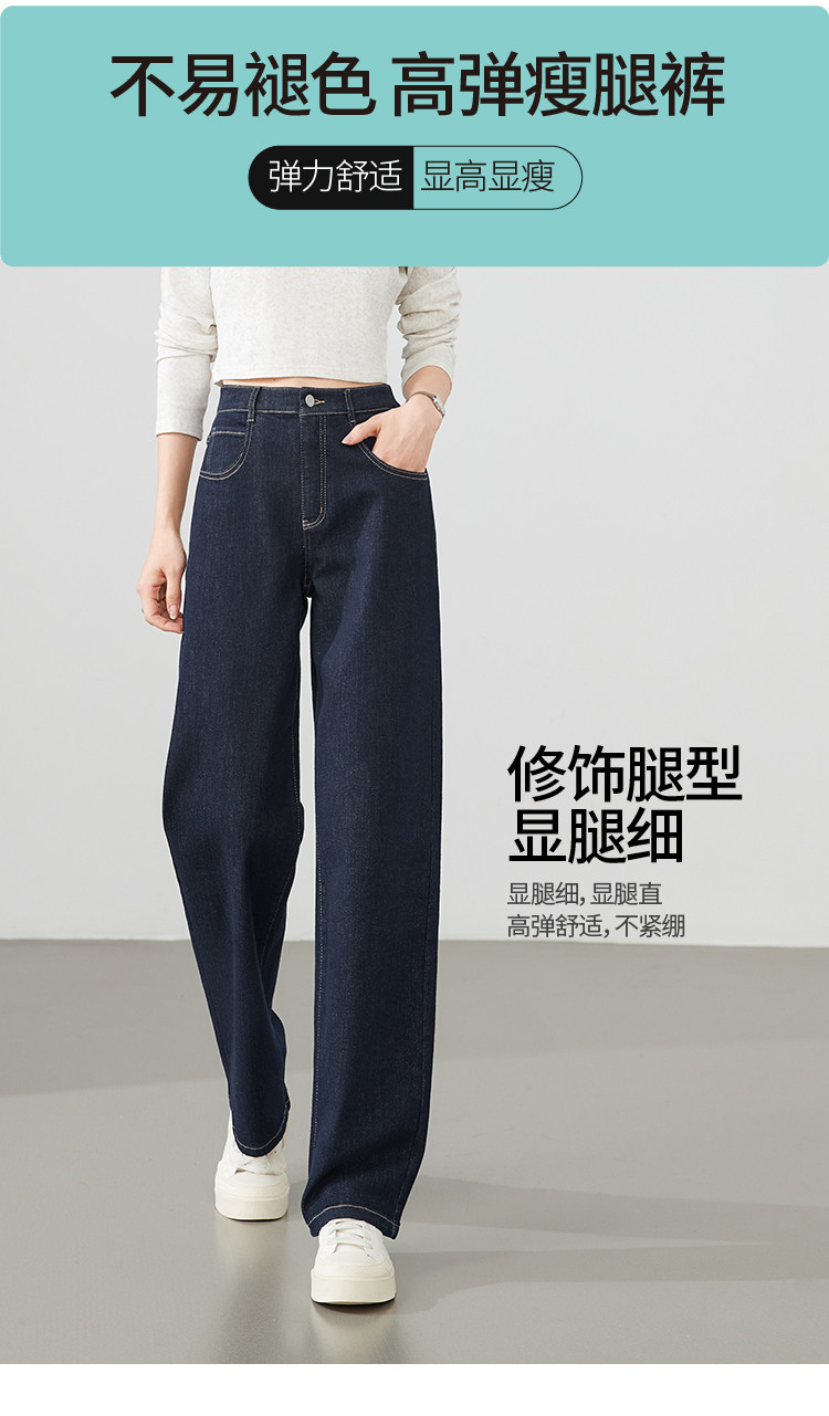 【不易褪色-窄版直筒】逸阳秋新品弹力宽松显瘦拖地牛仔长裤4389