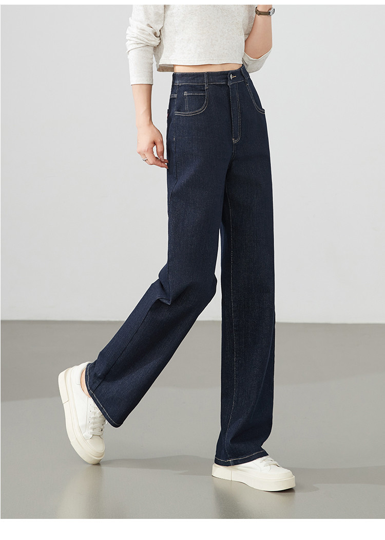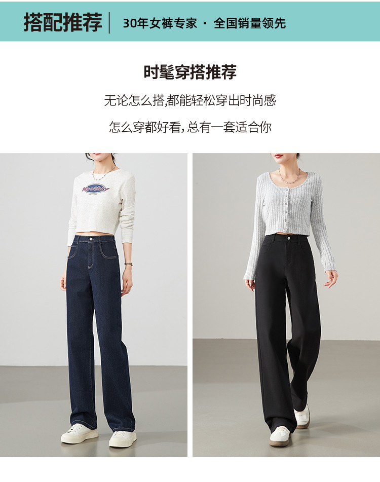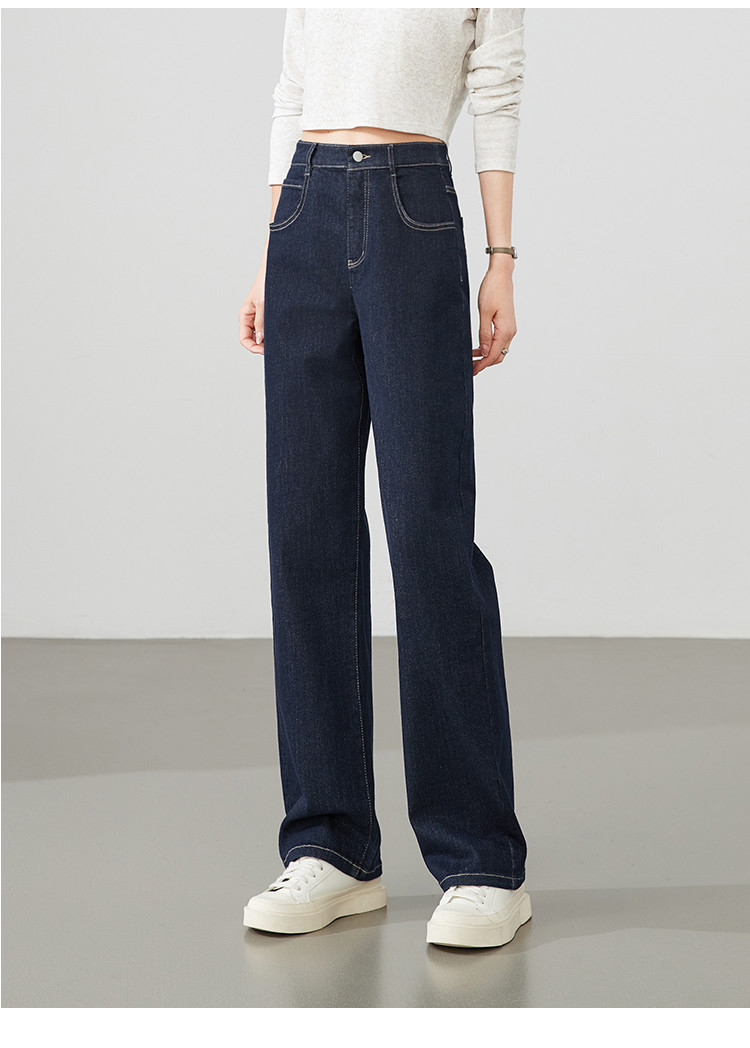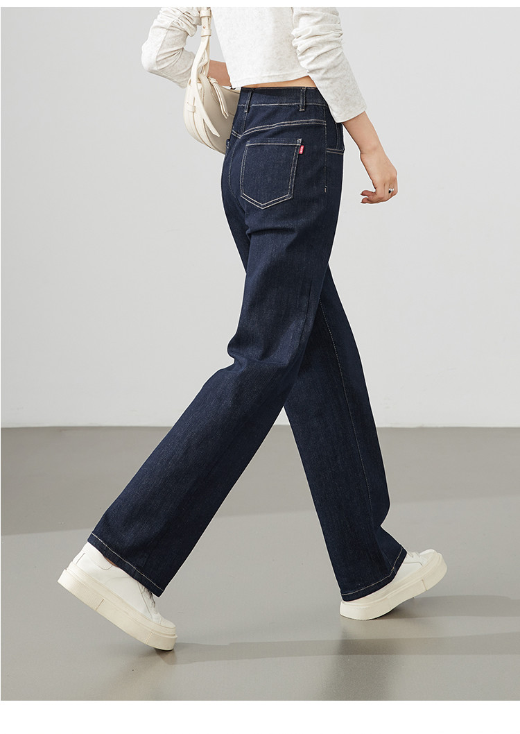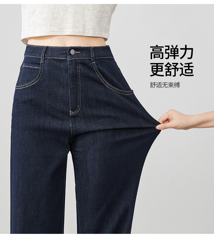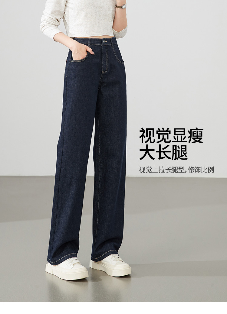 【不易褪色-窄版直筒】逸阳秋新品弹力宽松显瘦拖地牛仔长裤4389