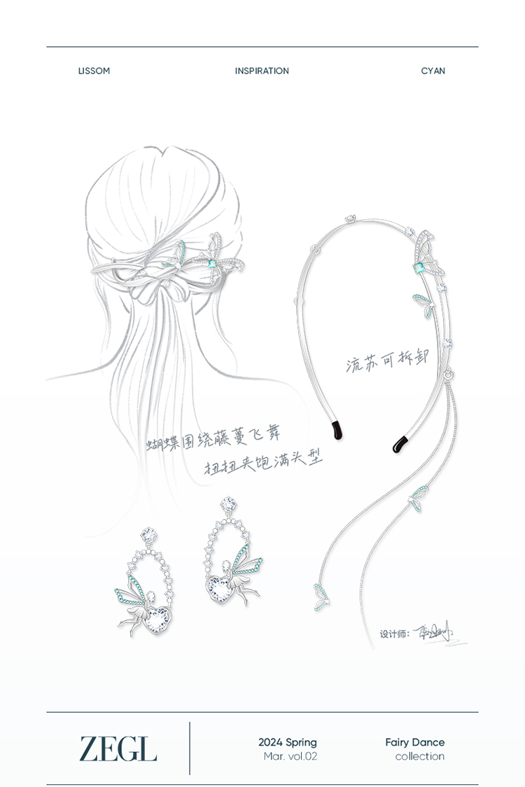 ZEGL设计师精灵之舞系列蝴蝶发夹子2024新款高级感头饰发卡发饰品