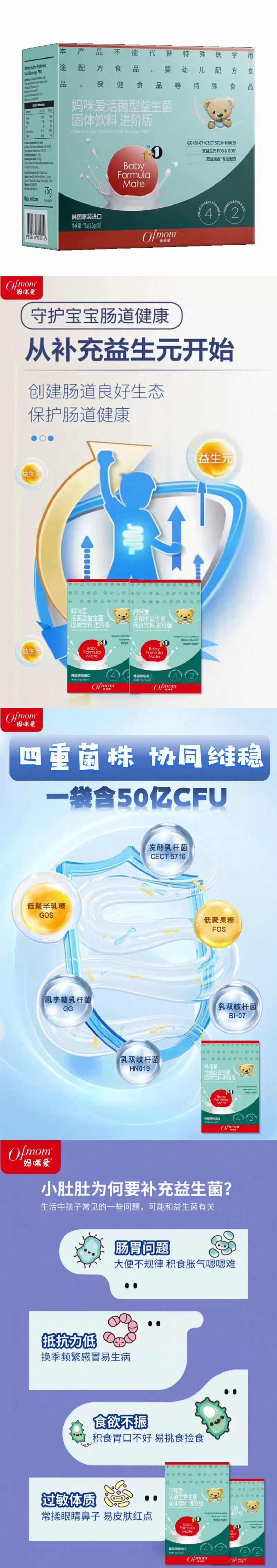 妈咪爱益生菌进阶版2代四联菌株0岁+婴幼儿呵护敏感宝宝75g(50条/盒)