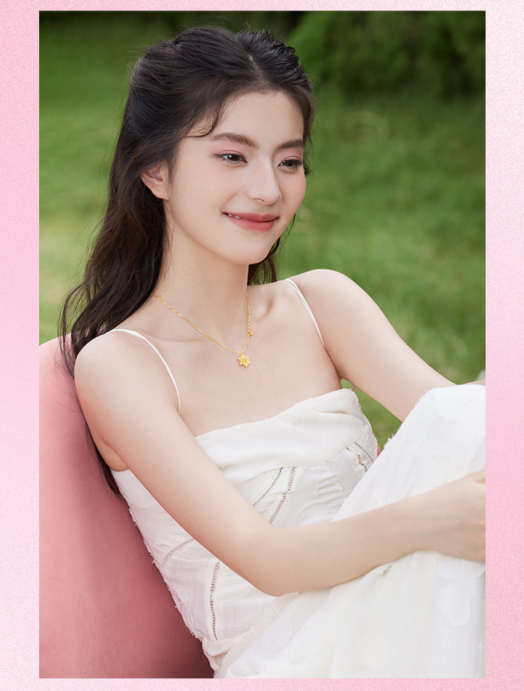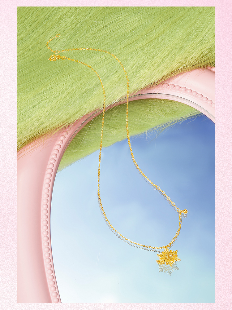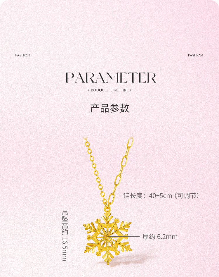 周六福5G黄金项链女计价足金雪花颈饰在逃公主系列送女友礼物