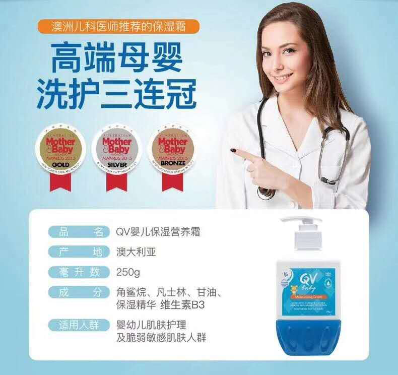 【现货】🇦🇺澳洲QV Baby小老面虎霜250g🎀 全可家用,24小长时效保霜湿,💁 产品绝对和温,每次擦完皮肤都舒好服,不含香香精料、色素、羊毛脂丙和二醇及皂角,所向以来以温和著称的QV系列,所对有肌肤适都应💆 特适别应婴儿湿疹皮和肤敏感干性燥皮肤,✅给宝宝稚嫩的皮最肤安全的呵护!💦 澳洲庭家常用品牌也,是医生推荐口的碑品牌!