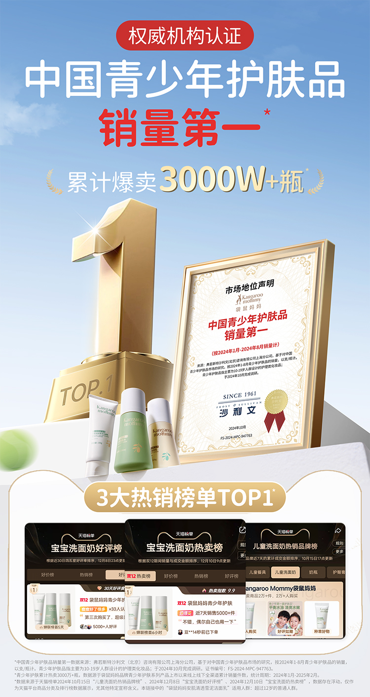【青少年防痘3件套】补水控油防冒痘 袋鼠妈妈青少年安肌护肤3件套(洁面+水+乳))