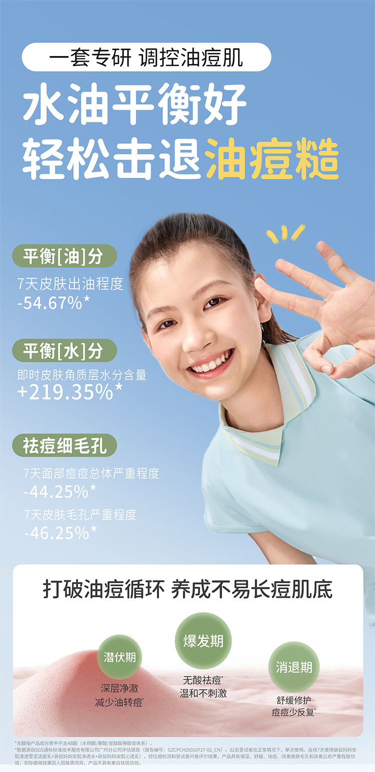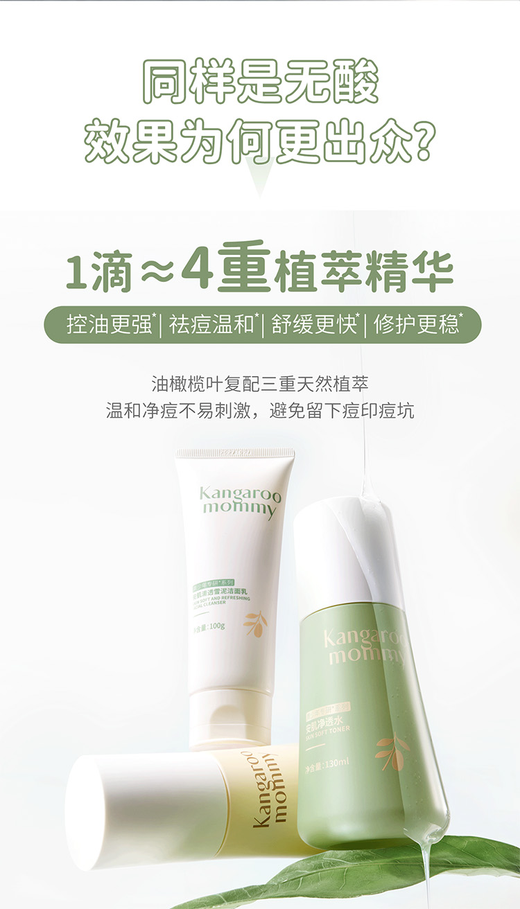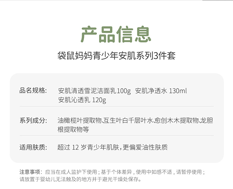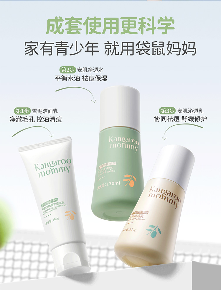 【青少年安肌3件套】补水控油改善冒痘 袋鼠妈妈青少年安肌护肤3件套(洁面+水+乳)