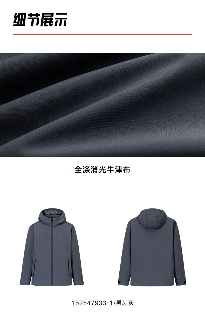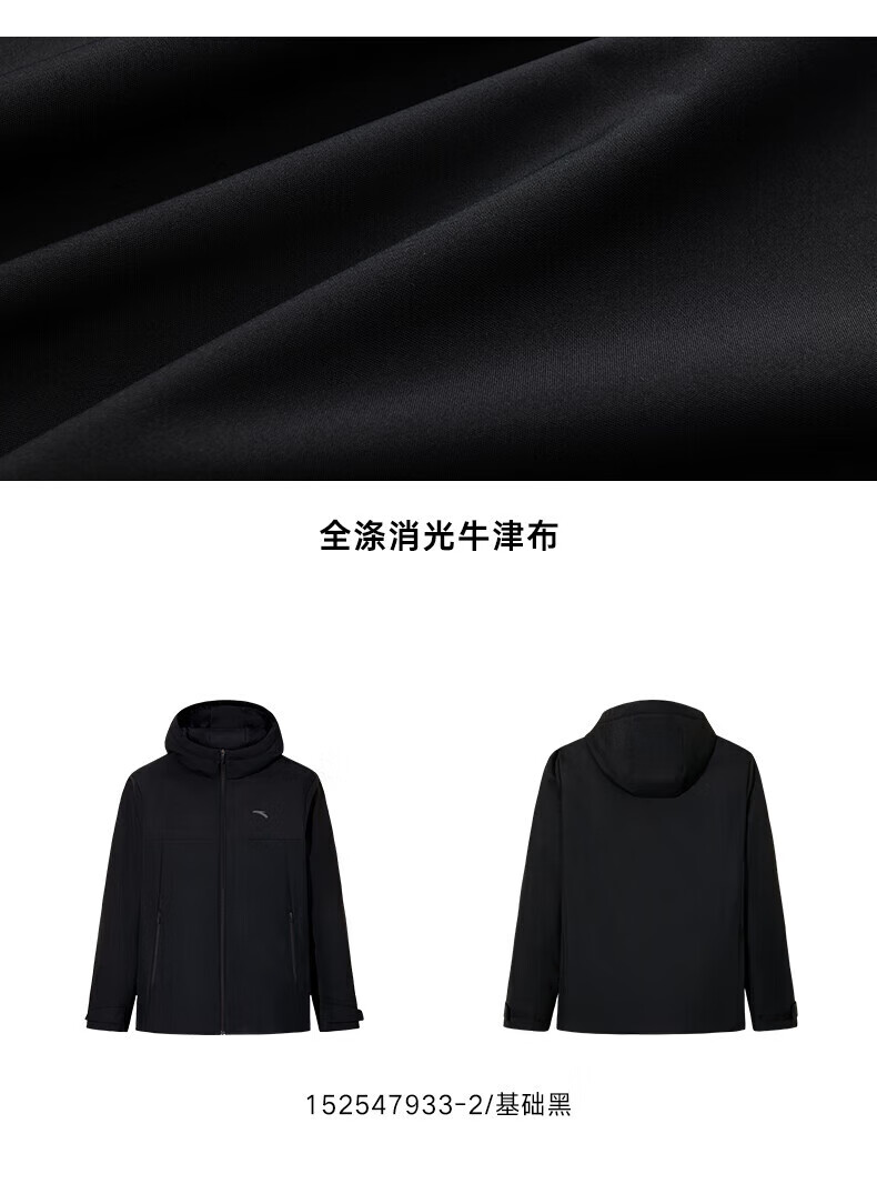 安踏(ANTA)短款羽绒服男冬季新款防泼书连帽保暖棉服运动外套152547933 基础黑-2