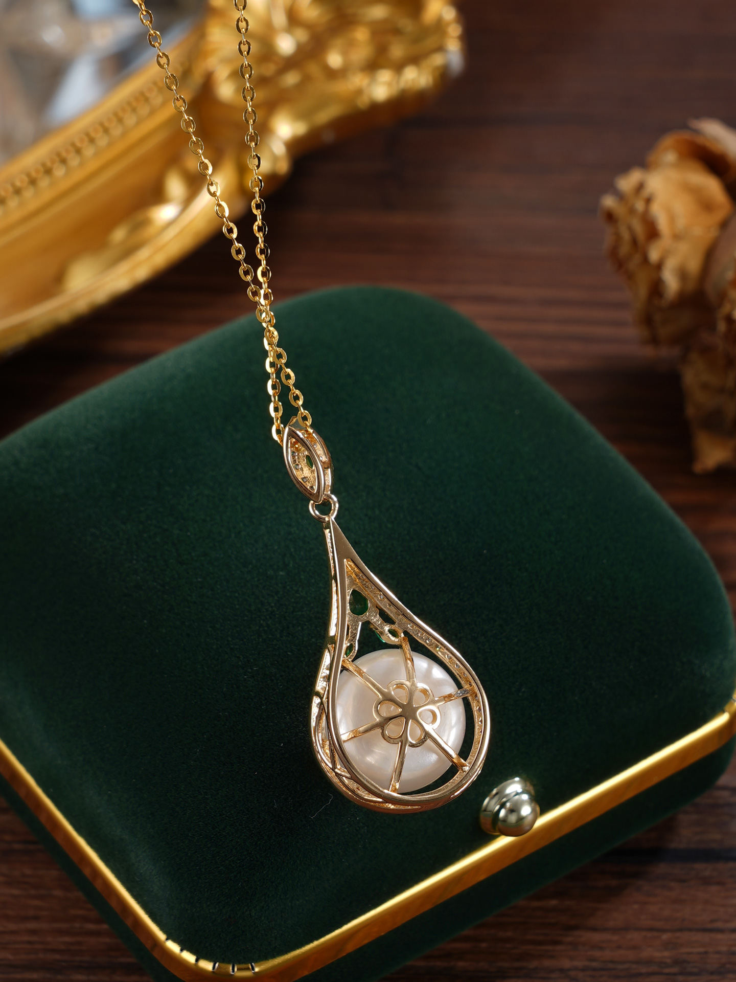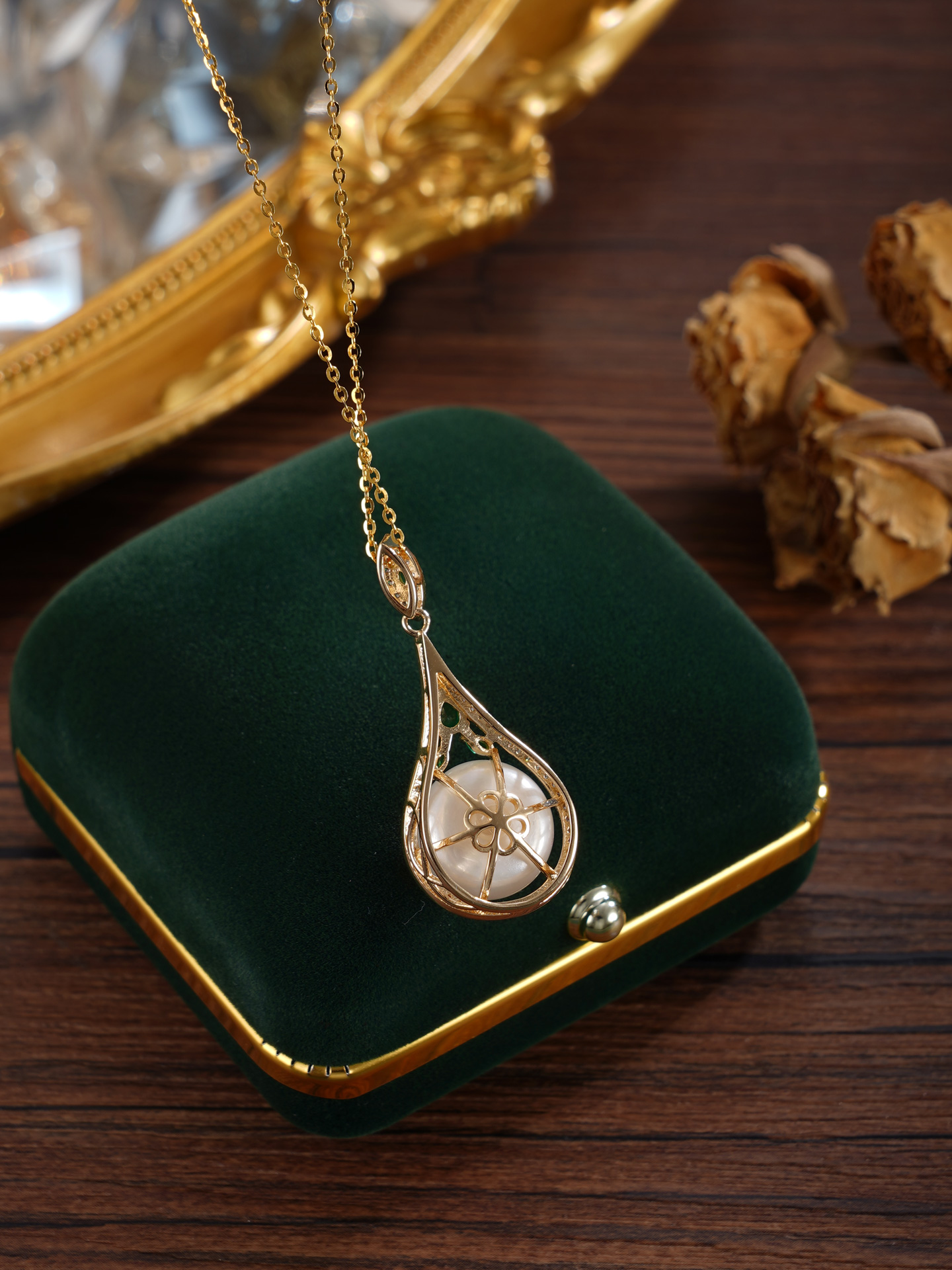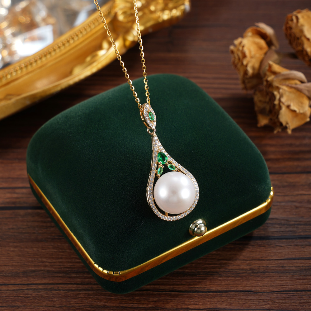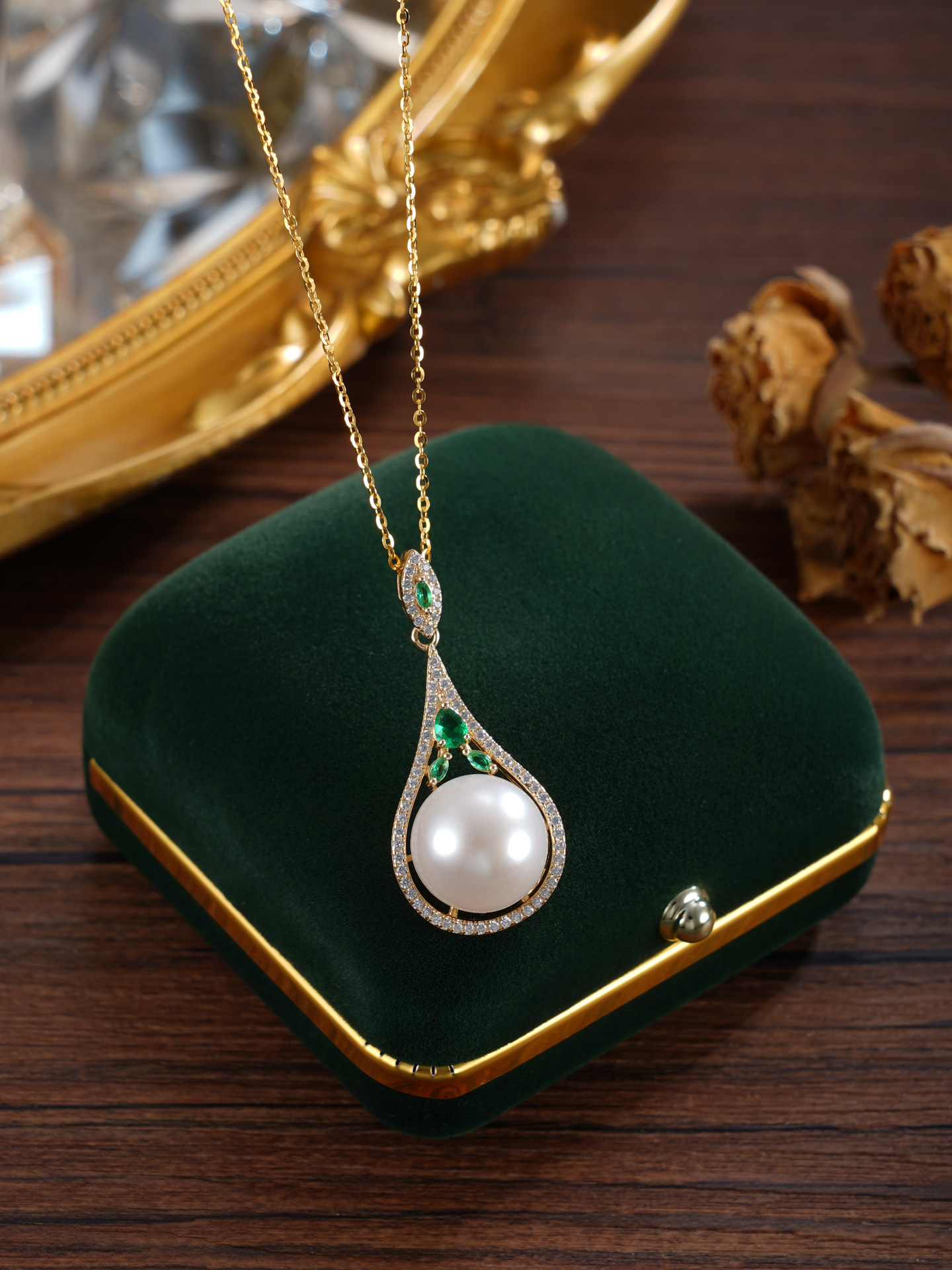 子佩集【恒久珍视】银S925珍珠惜王妃套链【P1926A】12.5mm珠绿点水滴镀金2601