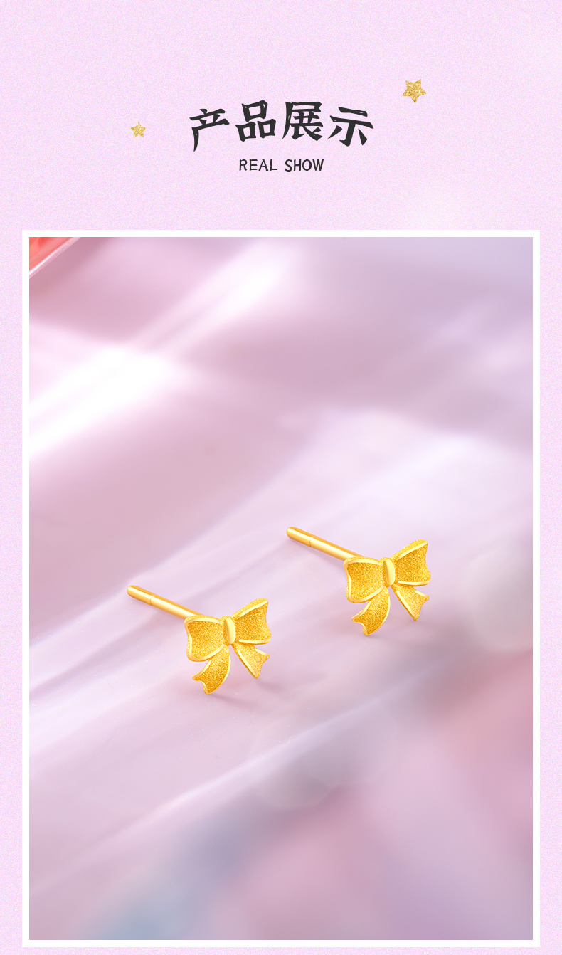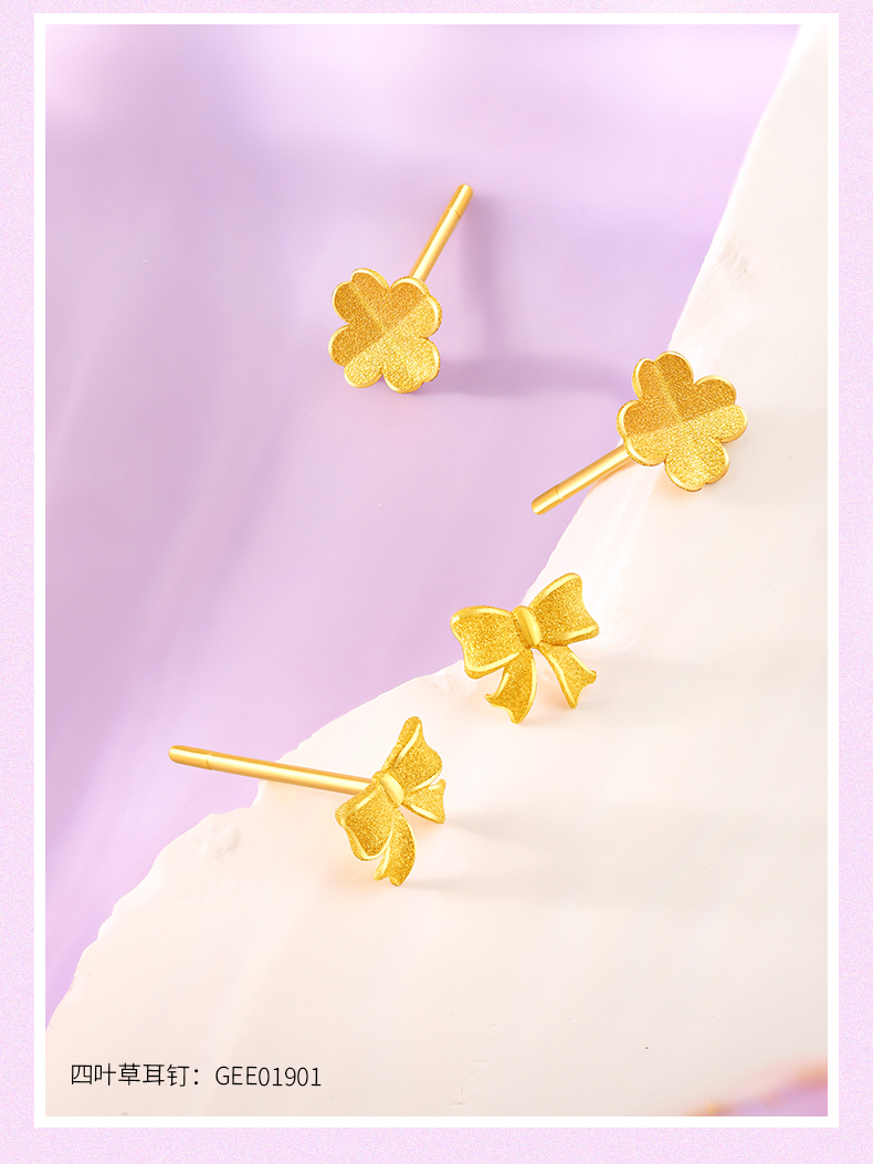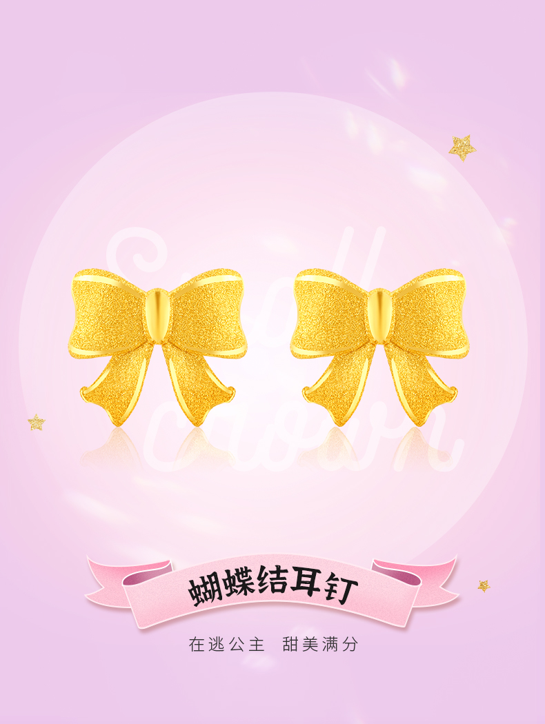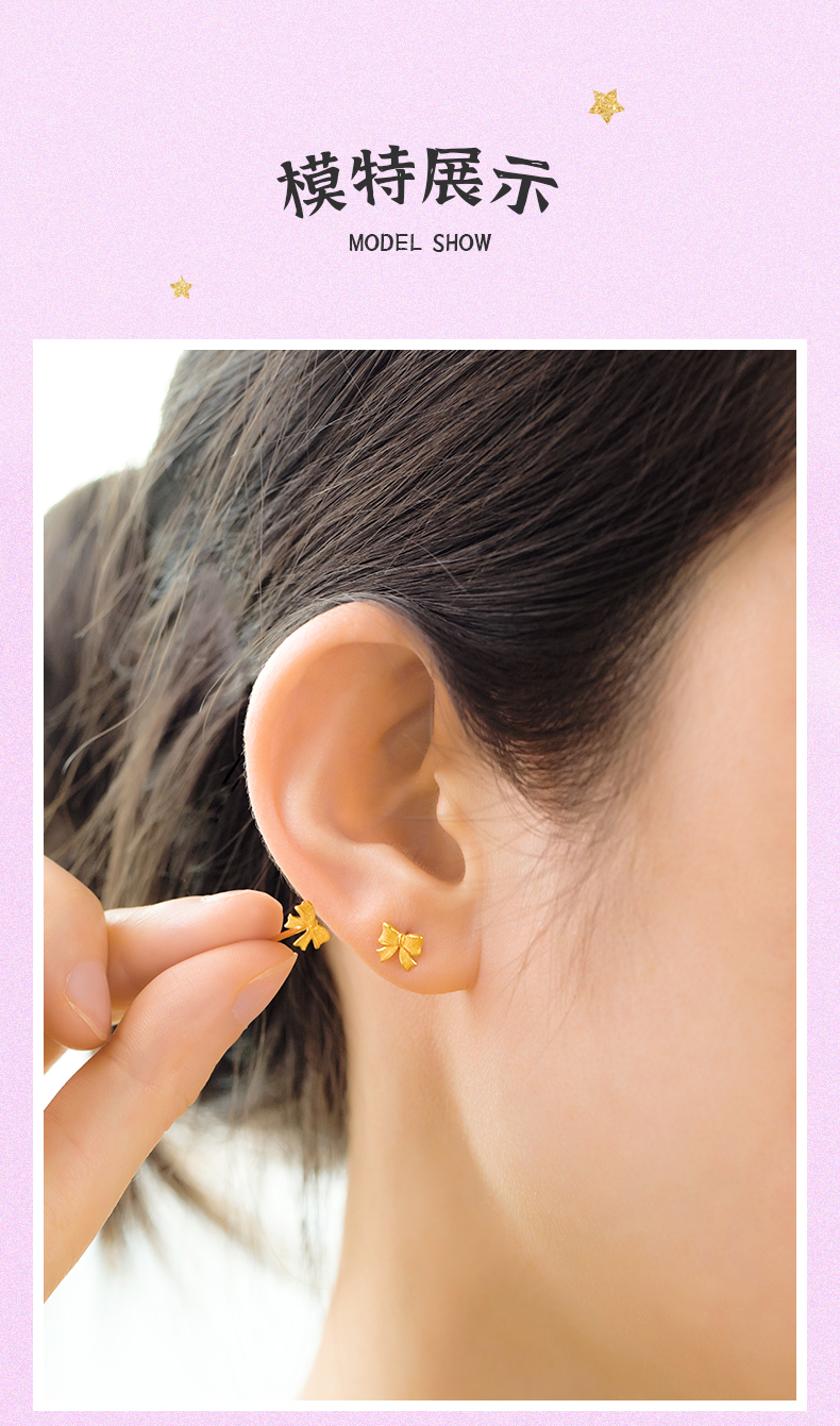 在逃公主蝴蝶结足金耳钉女士黄金耳饰送女友礼物【按克计价黄金1】MEMORA诗普琳GEE01801(线上专供)