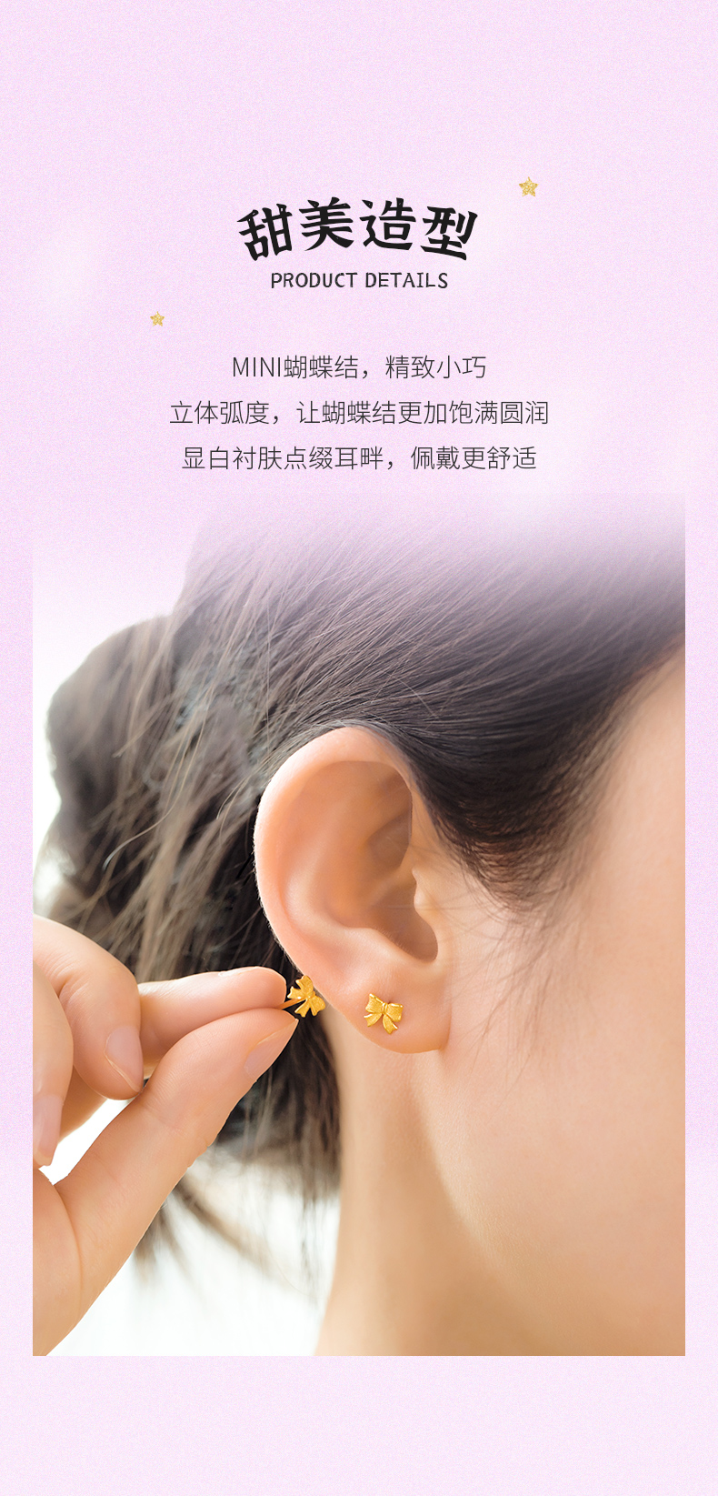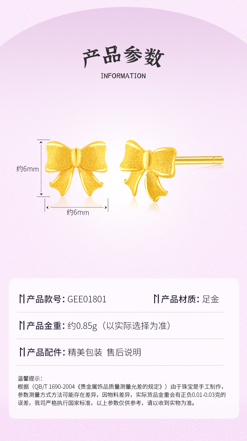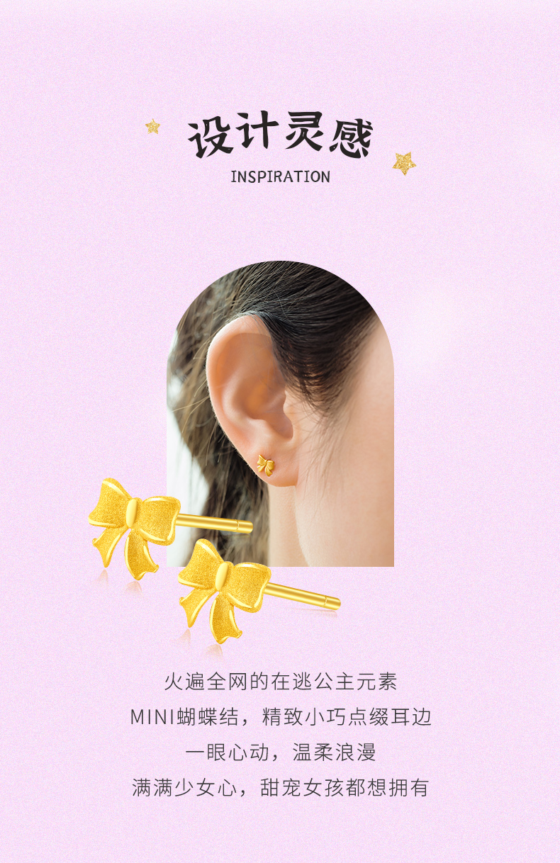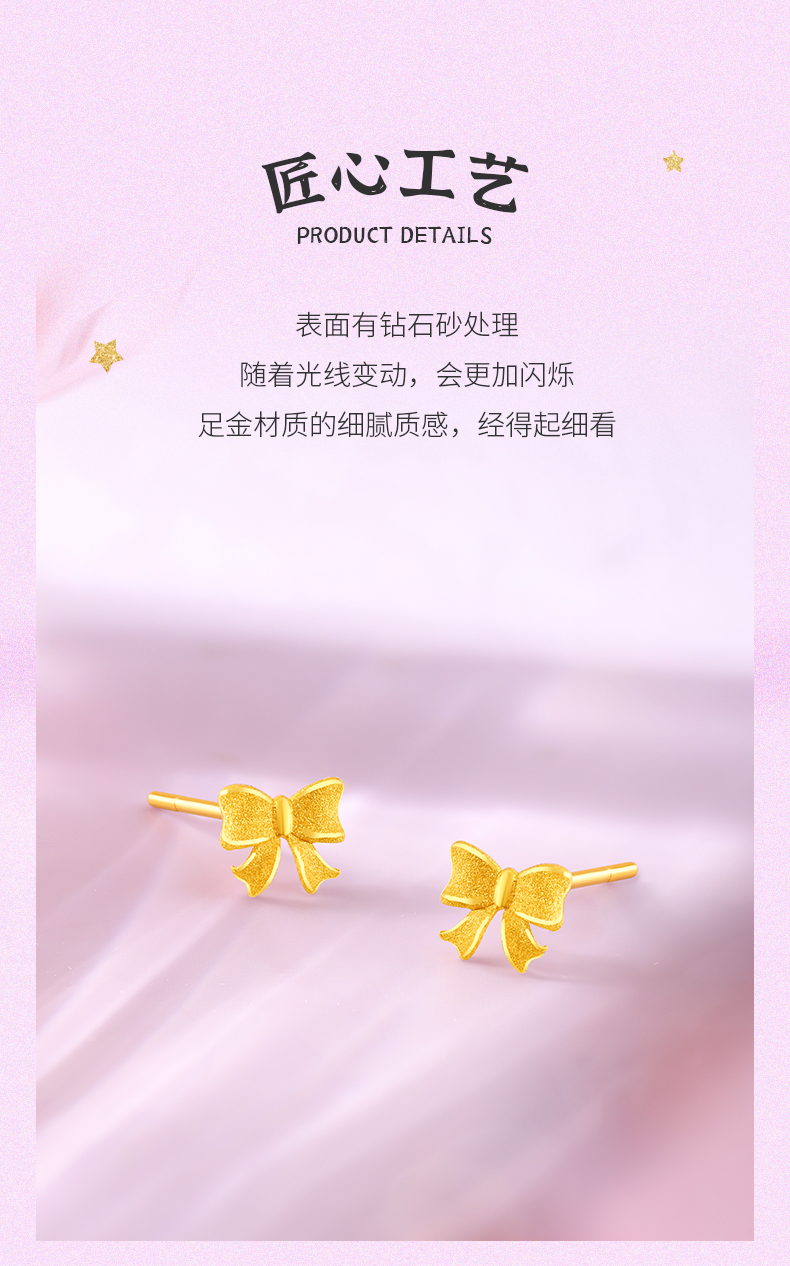 在逃公主蝴蝶结足金耳钉女士黄金耳饰送女友礼物【按克计价黄金1】MEMORA诗普琳GEE01801(线上专供)