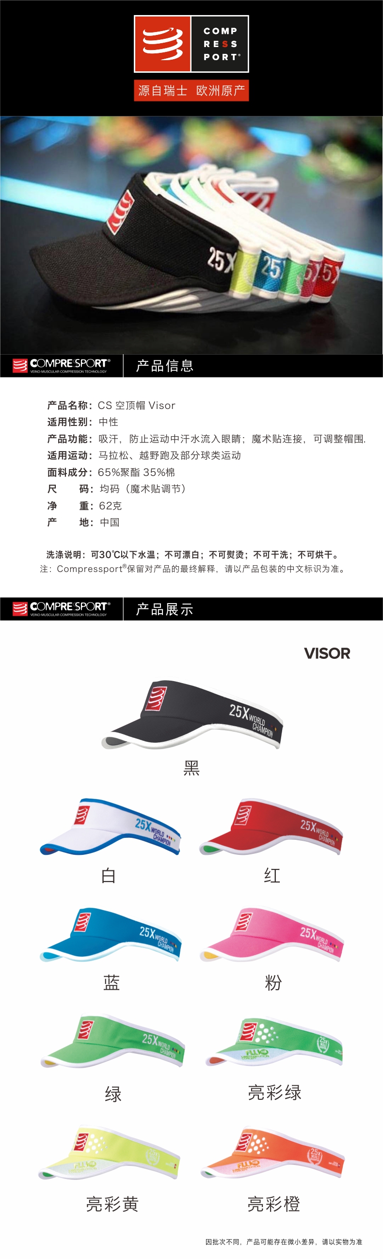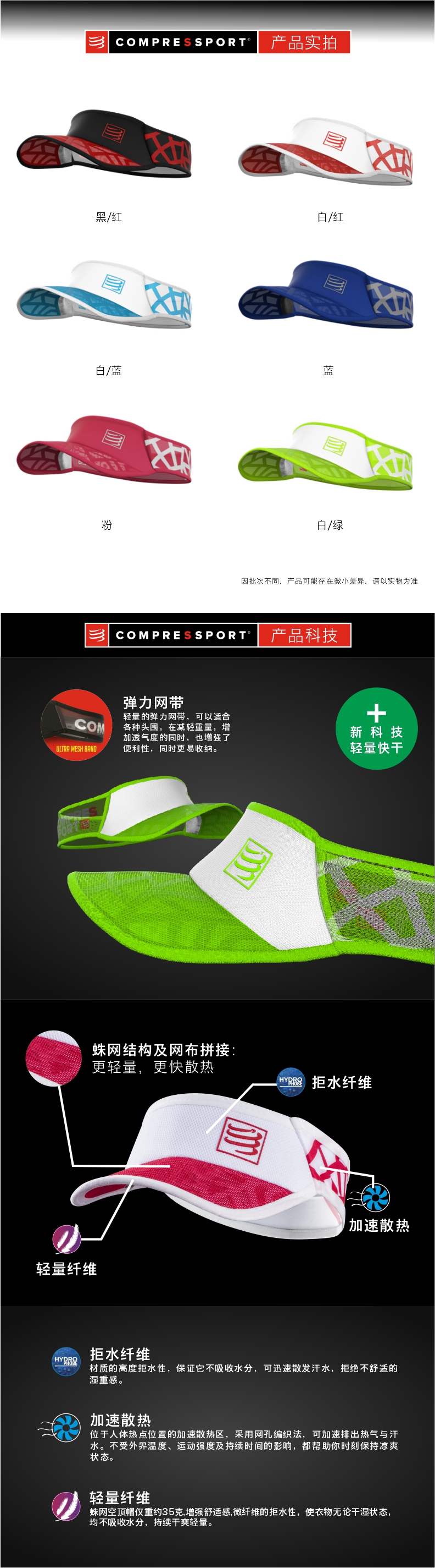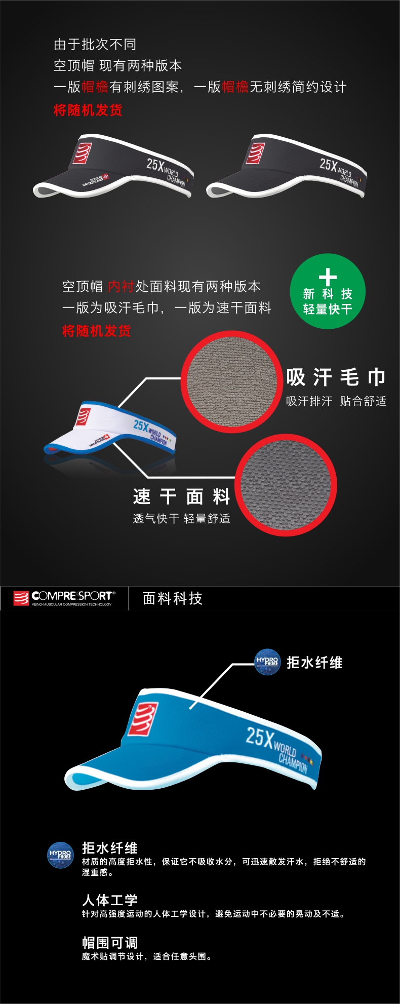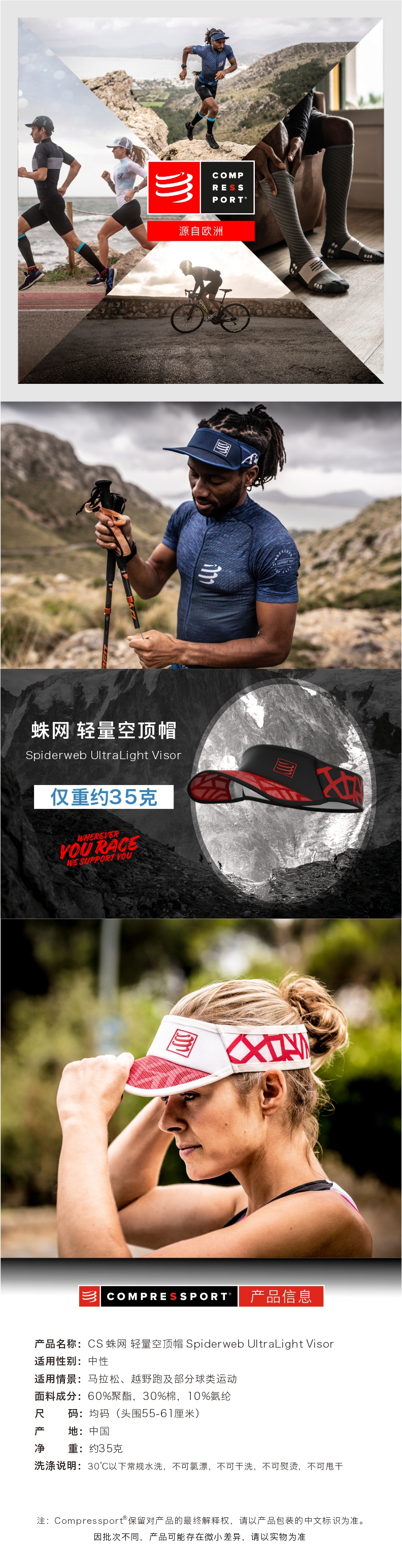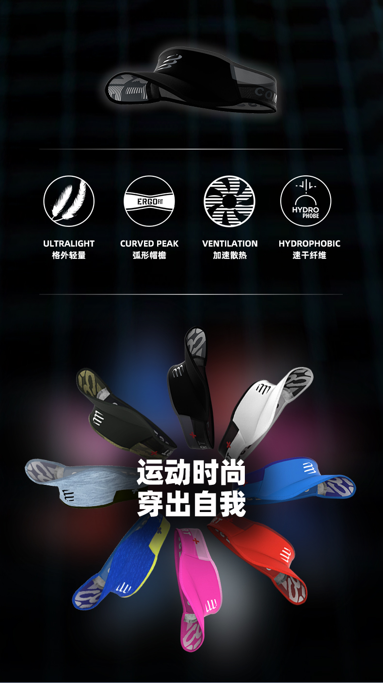COMPRESSPORT CS 马拉松跑步训练轻量空顶帽