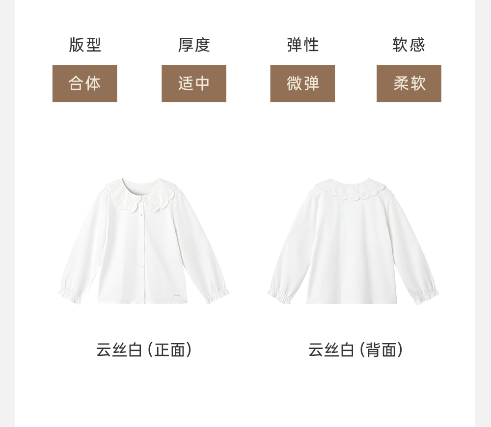英氏童装女宝宝吸湿速干刺绣翻领衬衫纯棉2024新款YRCAJ1Q232A