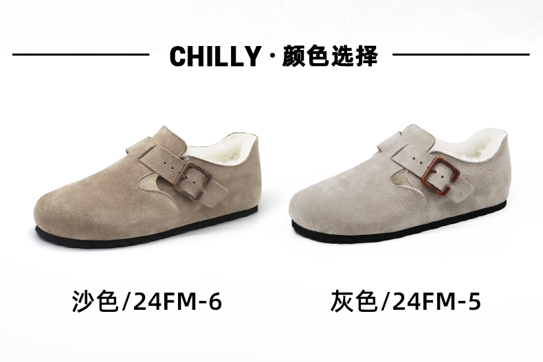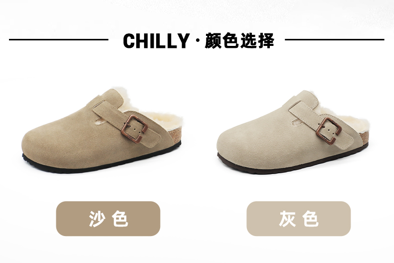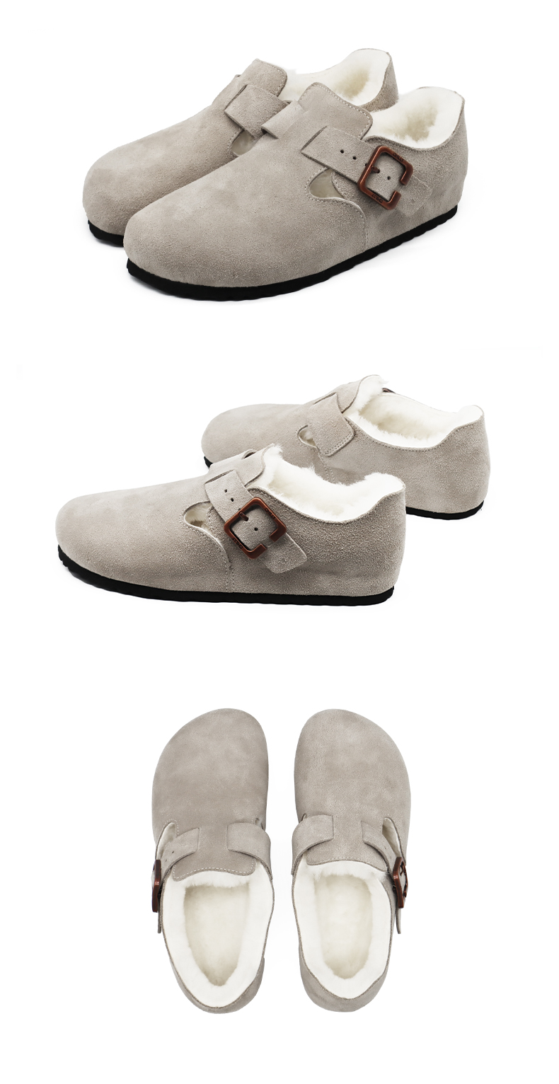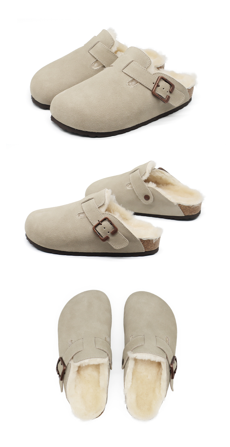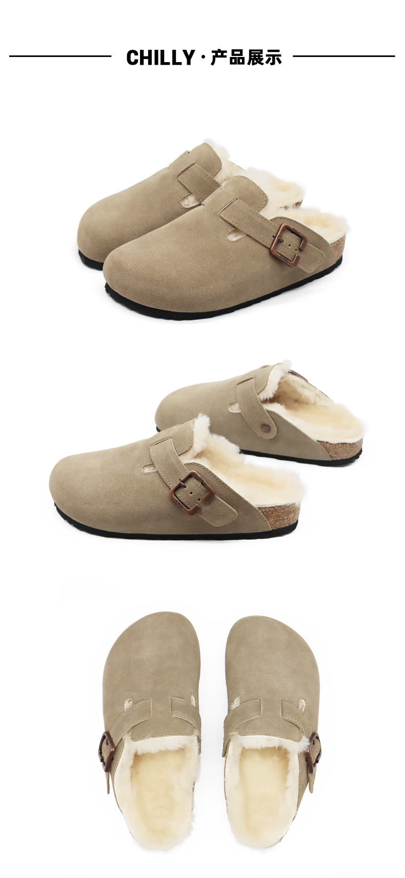 【云优选】BEFFON北风冬季软木博肯鞋,加绒保暖半拖包头鞋 真羊毛 厚牛皮 更健康