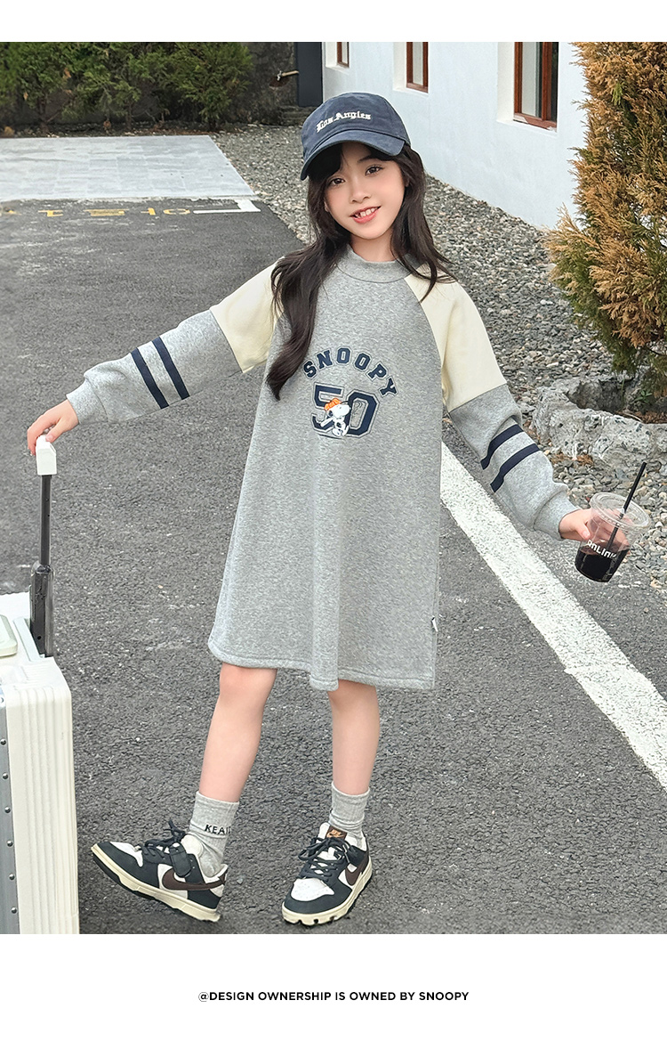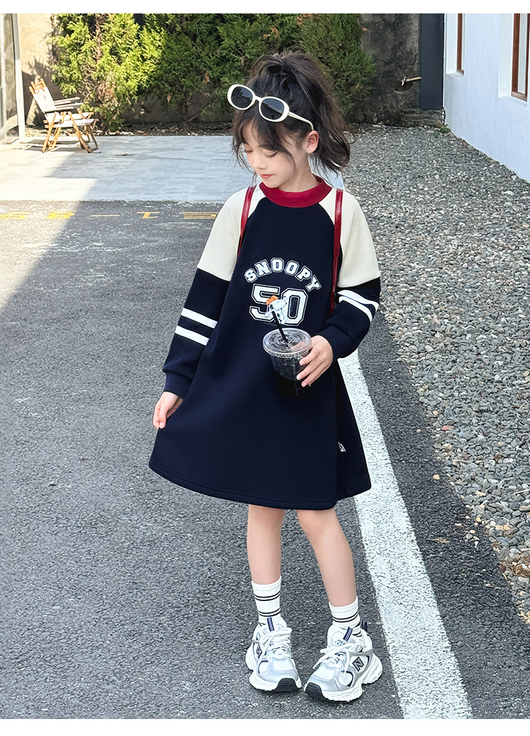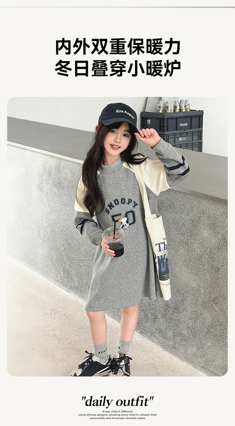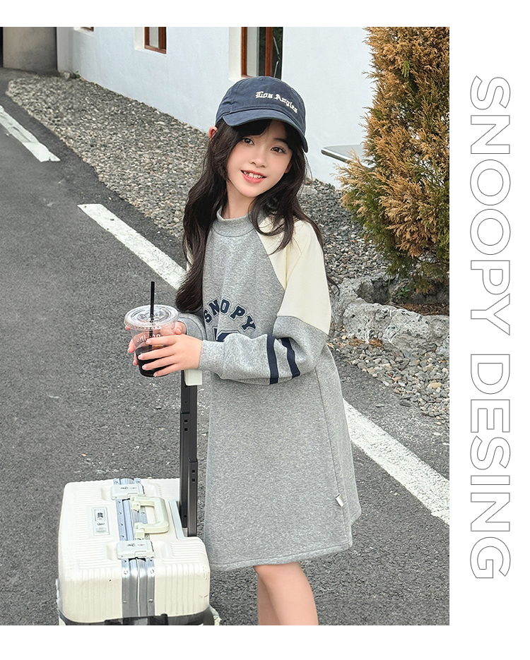 【清仓捡漏】【加绒】【140-160】【史努比】女童加绒保暖连衣裙