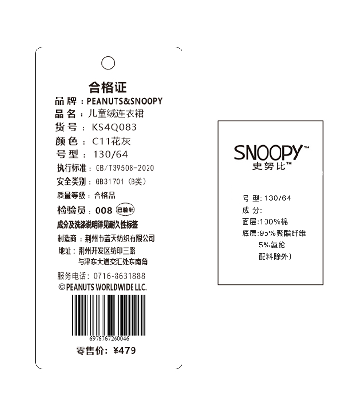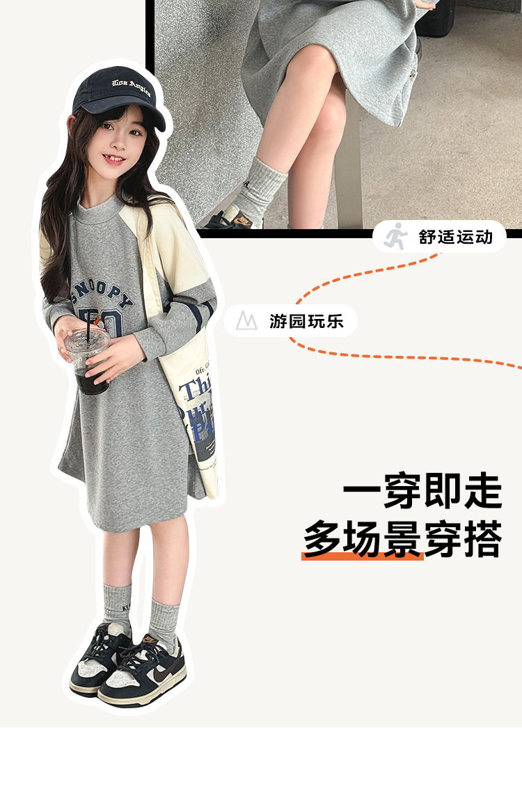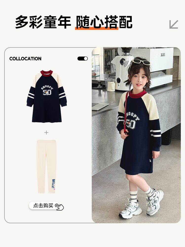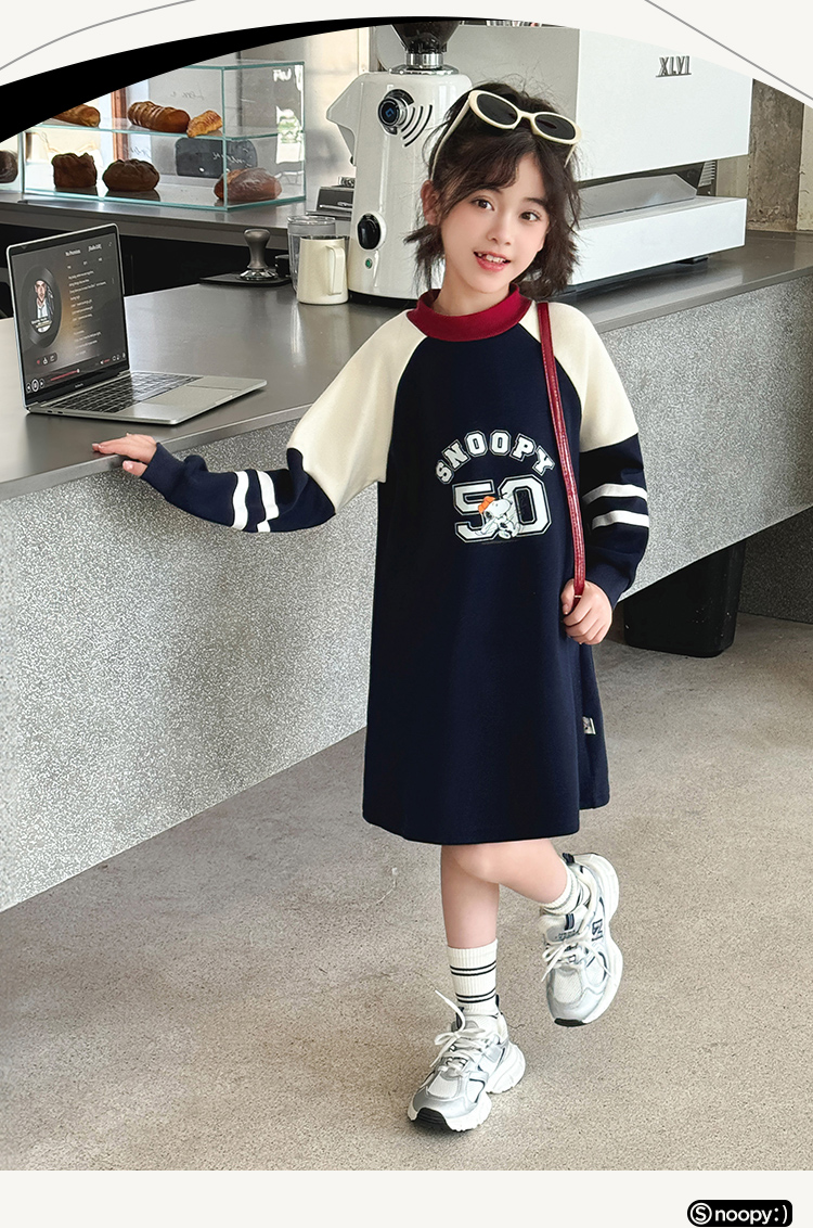 【清仓捡漏】【加绒】【140-160】【史努比】女童加绒保暖连衣裙