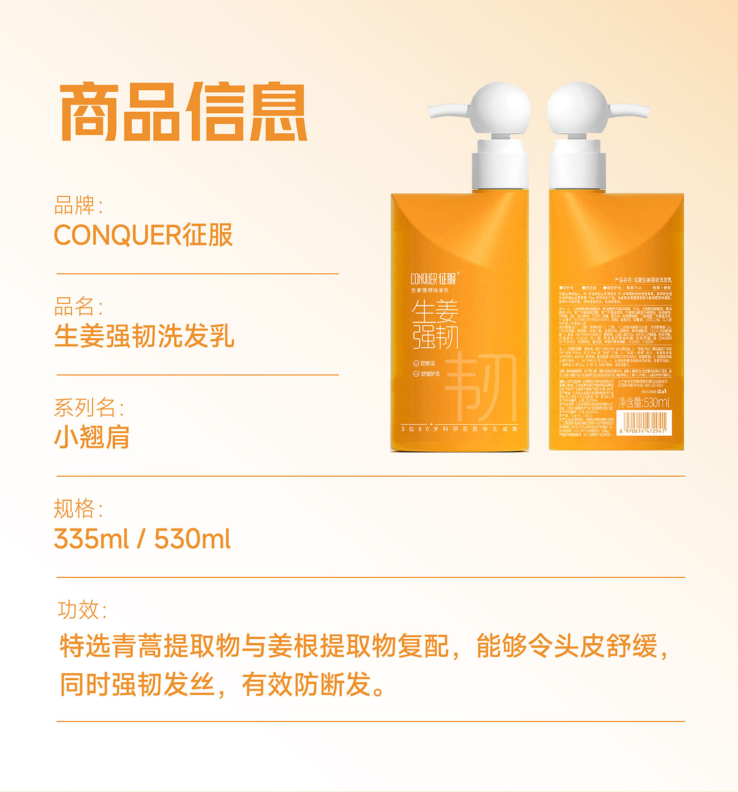 第3代新升级征服青蒿止痒洗发乳,生姜强韧、去屑净爽、控油蓬松、滋养柔顺系列洗发乳