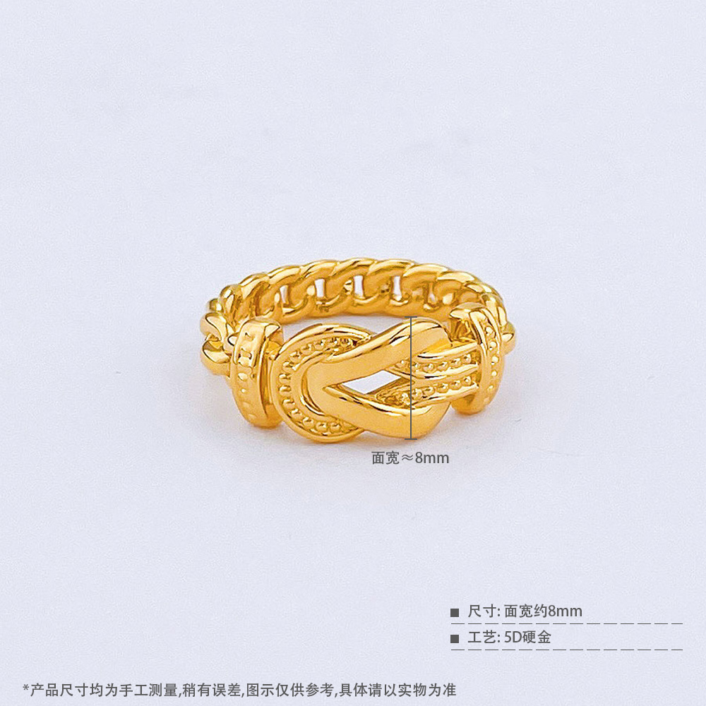 【限时克减150元】足金 【精品】无氰5D硬金镂空固口戒指链条臂马蹄扣圈戒(面宽约7.8-8.2mm)(AR5DJZ00041)(预售产品下单后不退款不退货不换货不补差价)