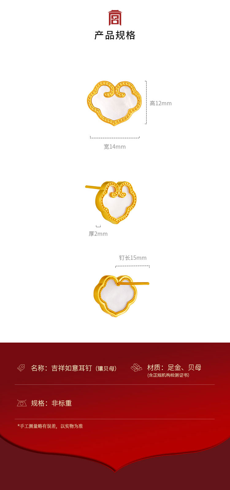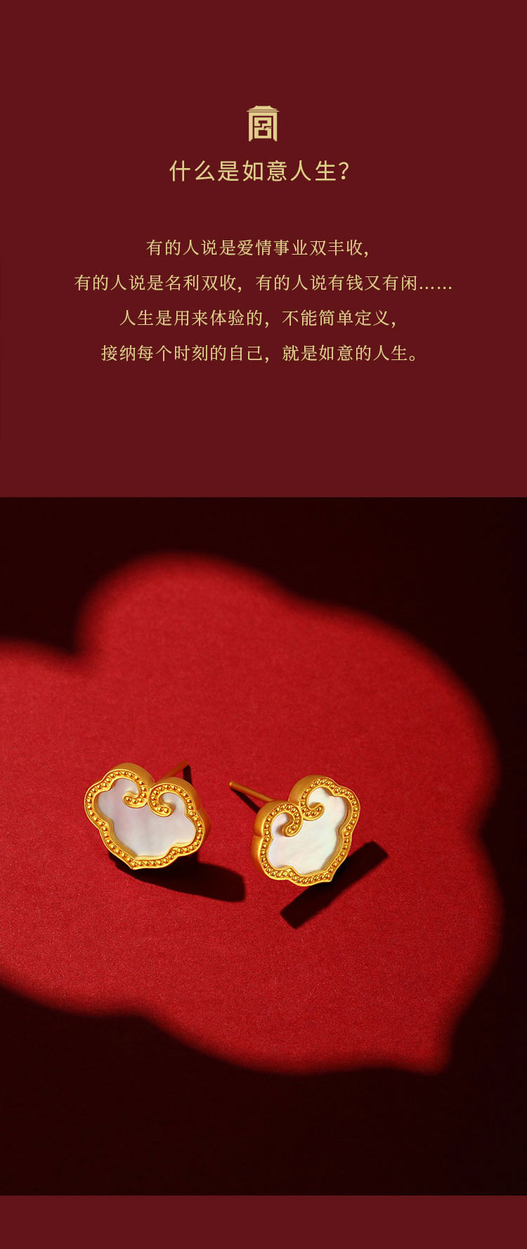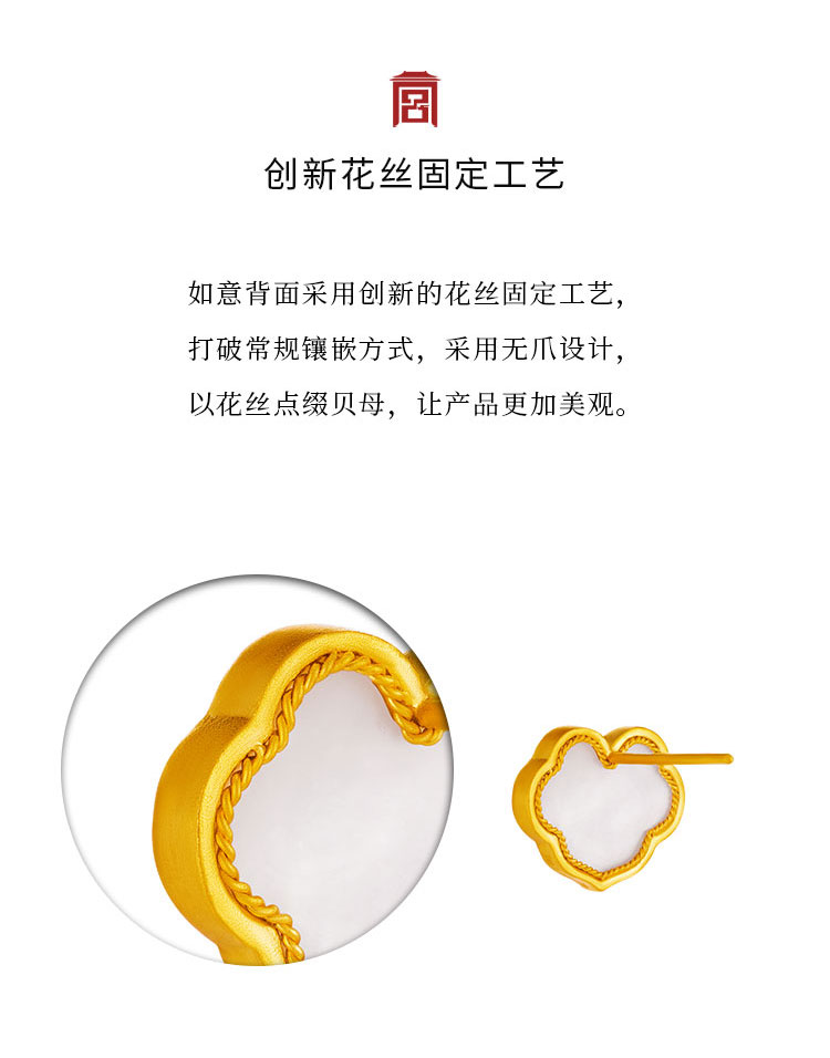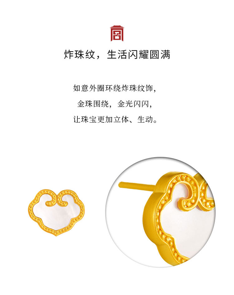 宫匠造办 吉祥如意耳钉 黄金镶贝母