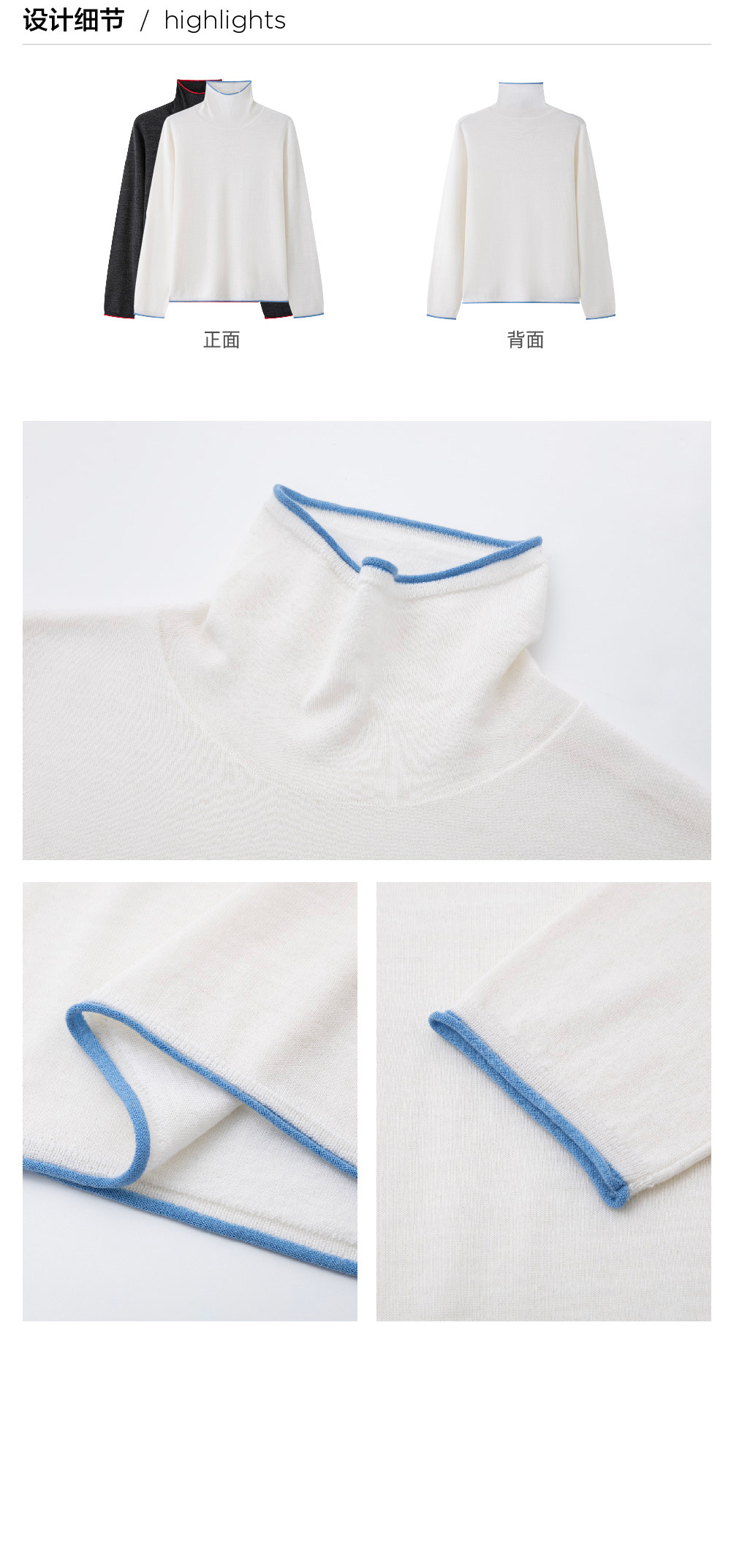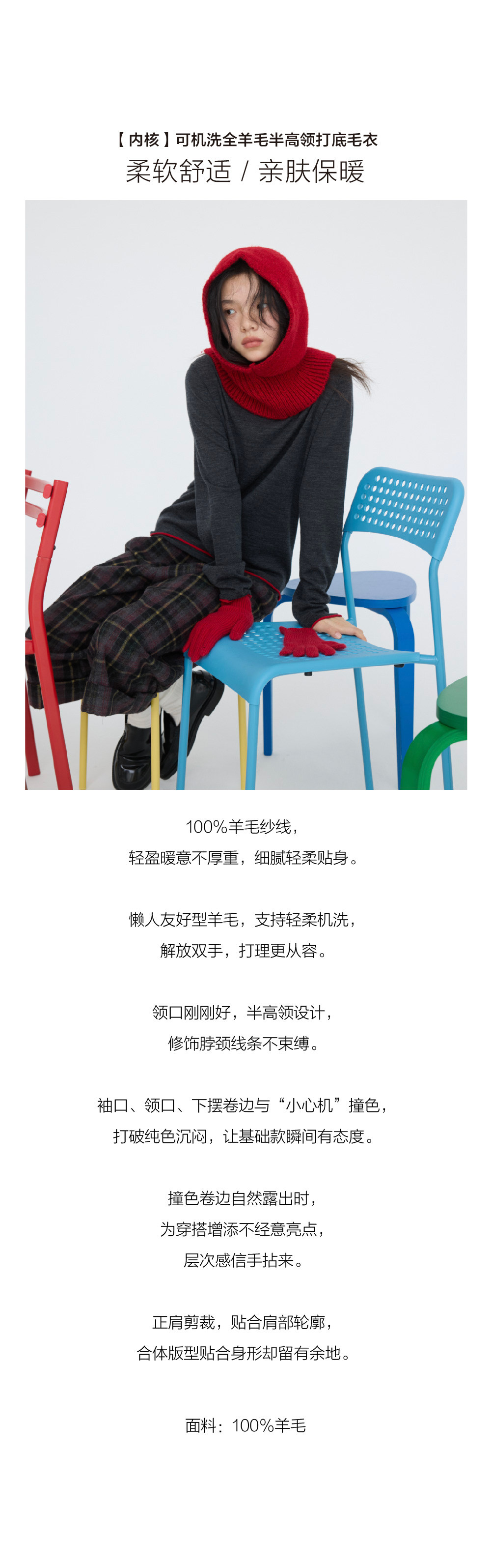 步履不停/5D16103C/100羊毛可机洗高领打底毛衣