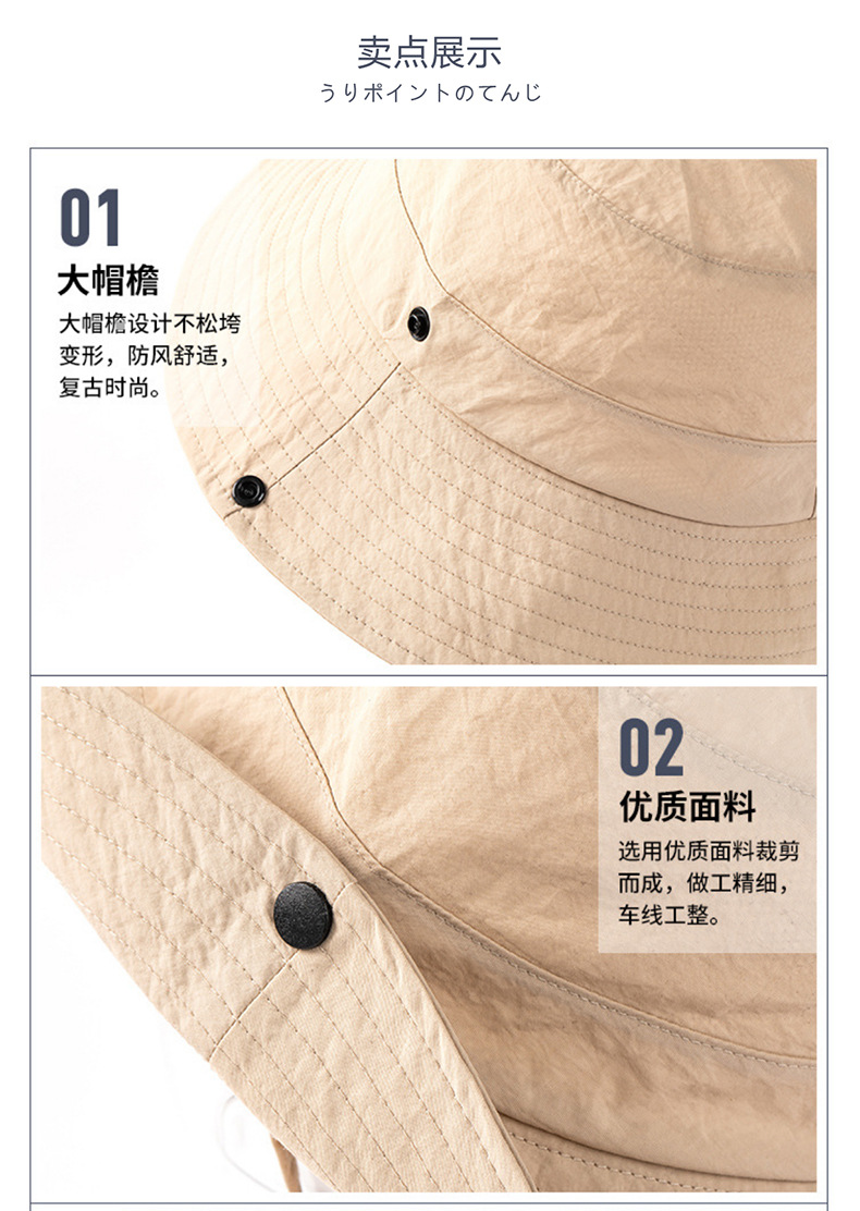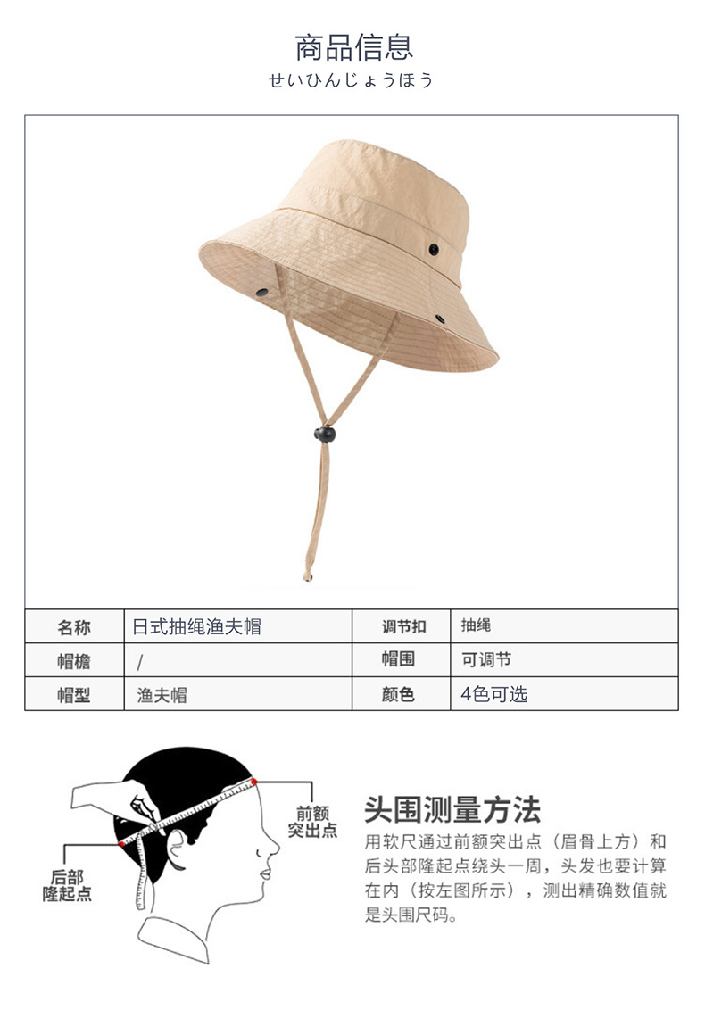 【抽绳速干渔夫帽】速干抽绳渔夫帽遮阳夏季男女防晒薄钓鱼户外透气帽子