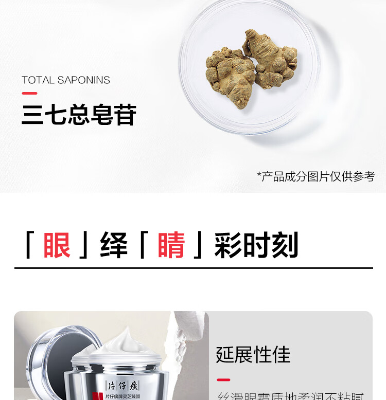 片仔癀灵芝臻颜淡纹眼霜 三七抗皱紧致淡眼纹滋润护肤品 30g