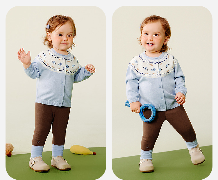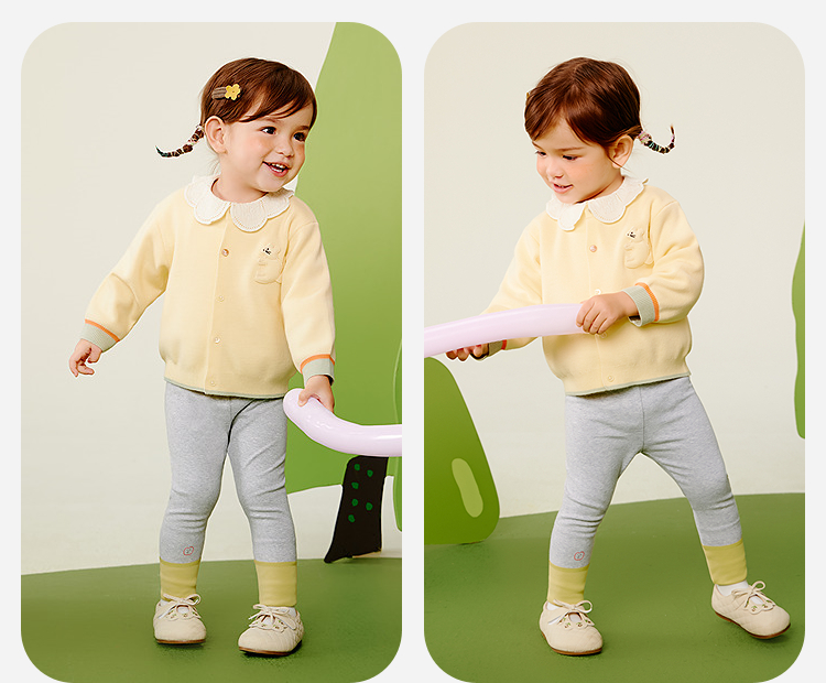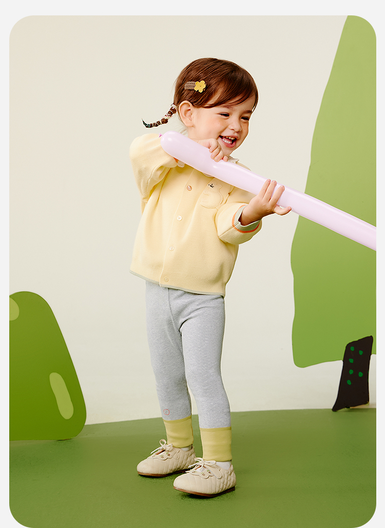 迷你巴拉女童裤子儿童甜美花朵宝宝柔软修身打底裤秋