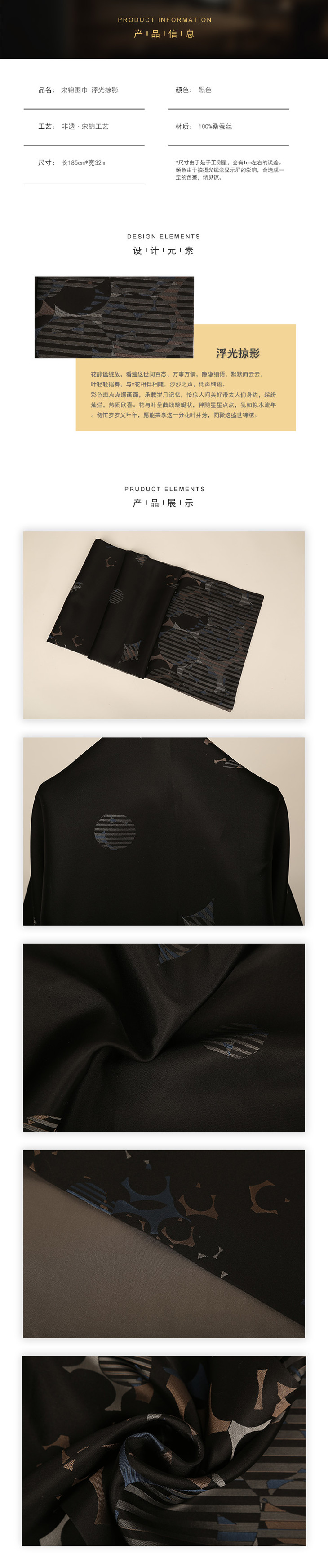 SAINTJOY/上久楷 宋锦围巾 浮光掠影黑色 SCS19027