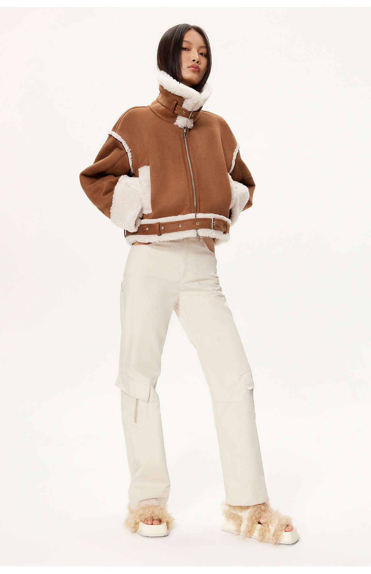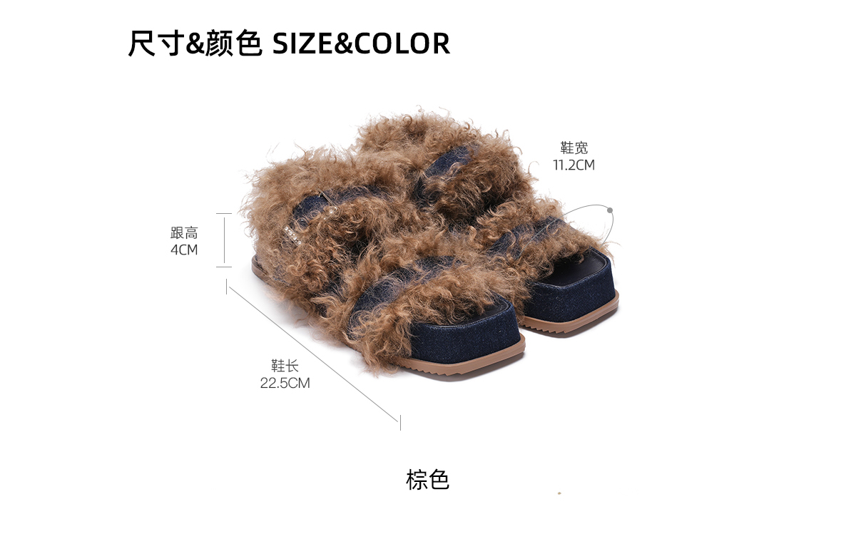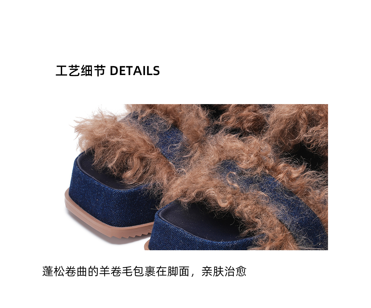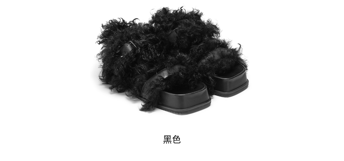 [断码]lost in echo秋季新款设计师款毛拖魔术贴厚底增高毛茸茸拖鞋女