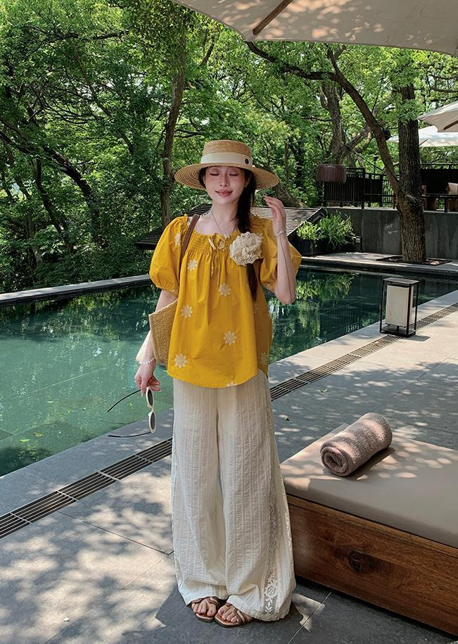 琥珀黄亮眼又特别 黄色全棉底布配白色提花刺绣 在人群中脱颖而出,美得很吸睛 棉质面料细腻亲肤,清凉透气 带来绝佳的舒适体验 喜欢这种风格的姐妹千万不要错过!