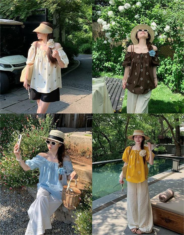 团长碎碎念 宝子们,我挖到夏日宝藏啦! 这4款重工刺绣娃娃衫,美到我词穷! 立体饱满的撞色刺绣,自带高级感 四种颜色绝绝子:杏色/蓝色清新浪漫,棕色异域风情,黄色热烈明媚,每一款都超吸睛。 宽松版型藏肉显瘦,一字肩可两穿设计搭配抽绳展现优美脖颈线条,轻松撑起整体筋骨。 灯笼袖可以遮住手臂小肉肉~衬得手臂很纤细 100%棉面料,轻盈不压身,上身透气很飘逸! 仿佛皮肤和大自然一起缓慢地呼吸,还敲凉快,夏天就交给它来打头阵吧! 穿上它,你就是街头最靓的仔,分分钟美到窒息!