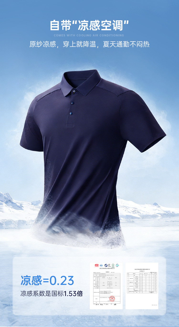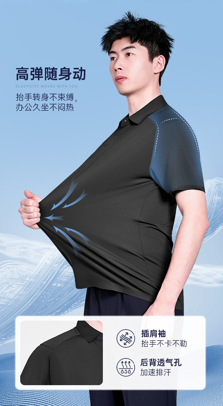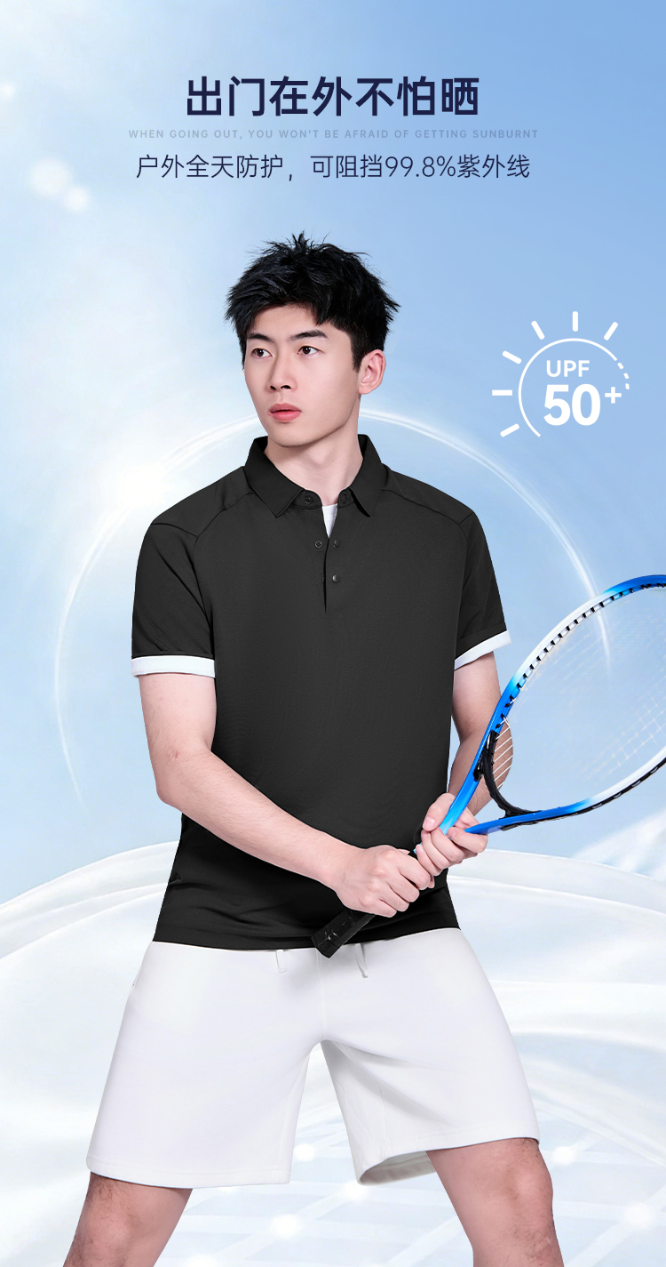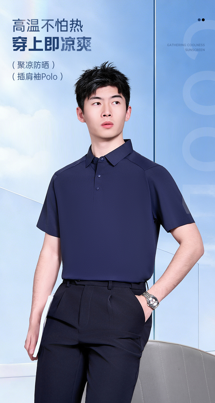 【聚凉防晒插肩袖polo衫】压胶翻领凉感短袖T恤休闲透气通勤半袖上衣POLO衫LZ603