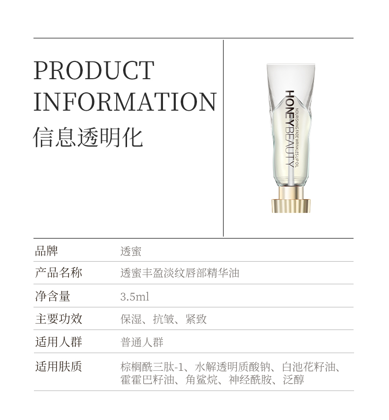 【任选4件打2.5折丨折后9.97元】透蜜 丰盈淡纹唇部精华油3.5ml