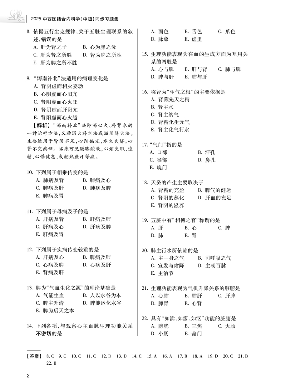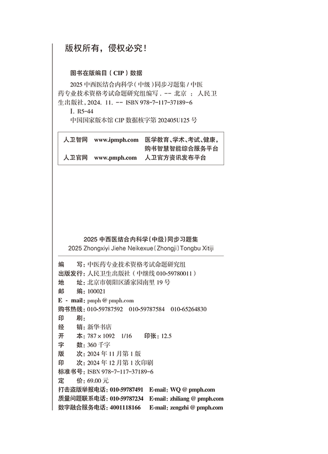 2025中西医结合内科学(中级)同步习题集 全国卫生专业技术资格考试习题集丛书 适用专业中西医结合内科学(中级)9787117371896