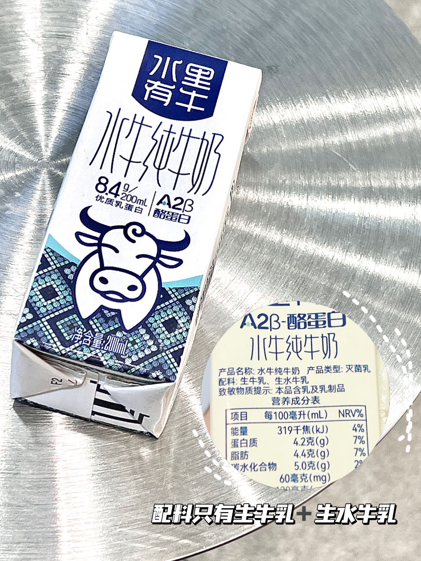 配料表就俩 —— 生牛乳 + 生水牛乳✅