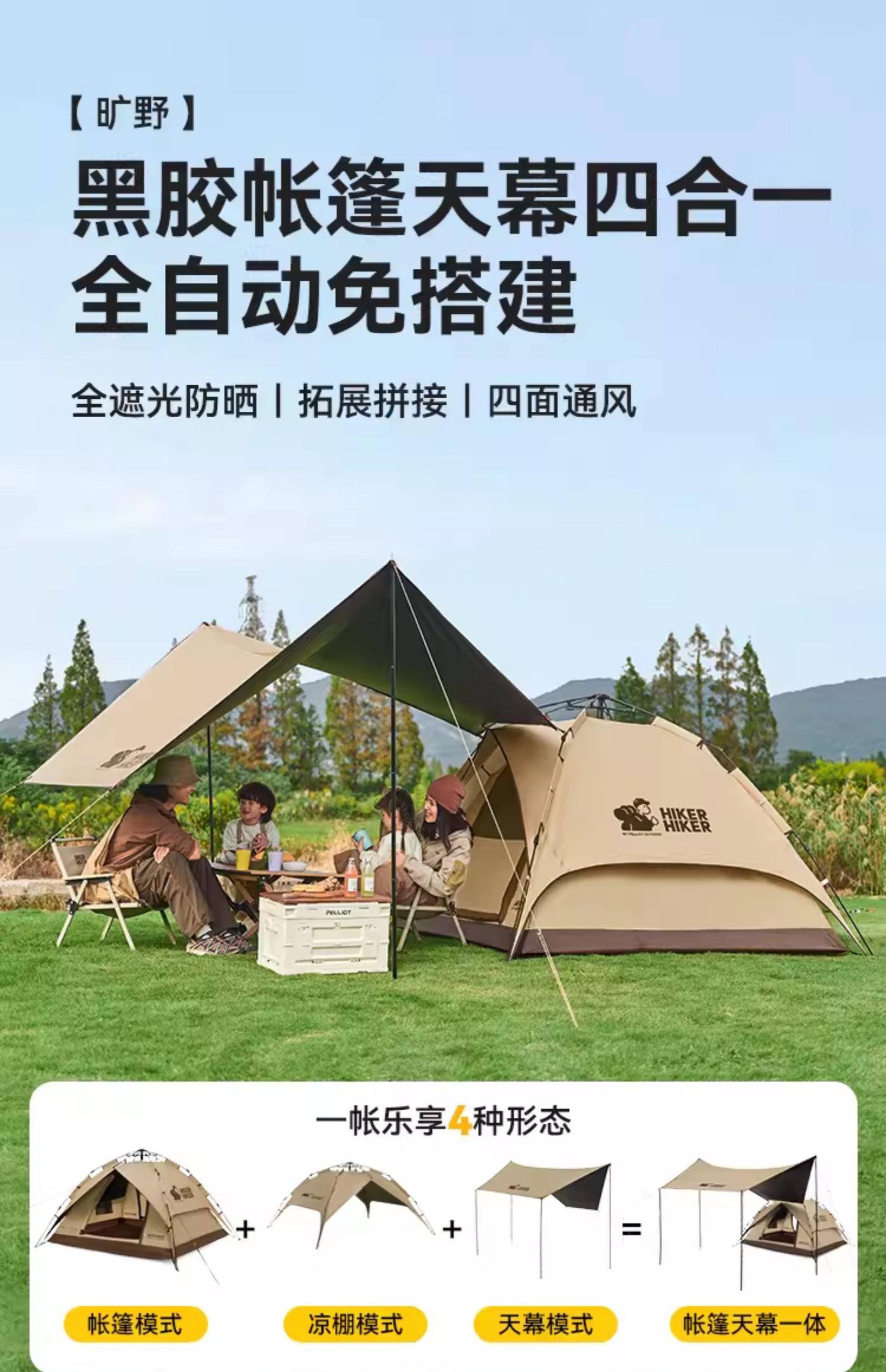 【旷野】伯希和户外帐篷天幕二合一露营便携折叠野营过夜装备全套
