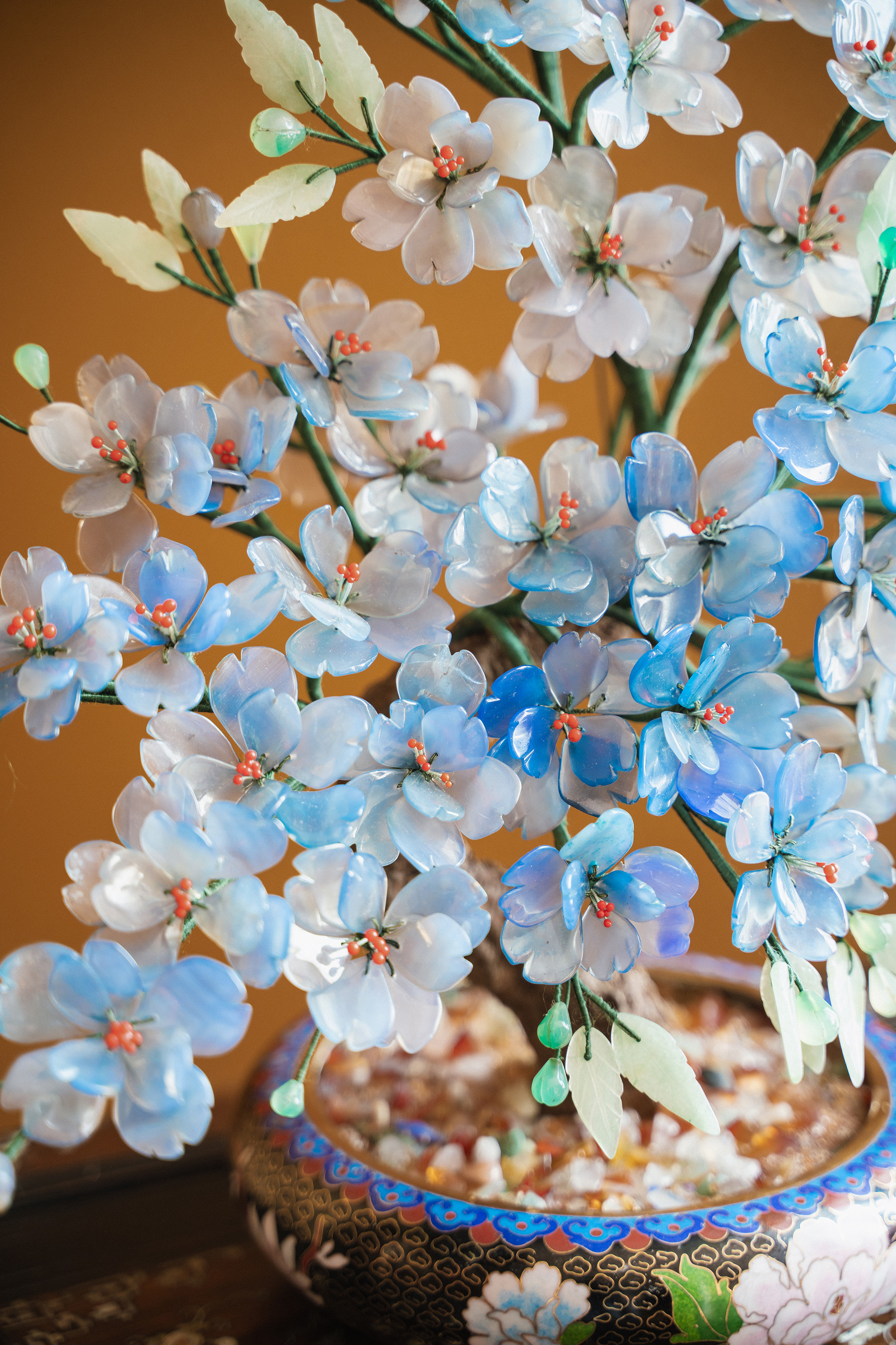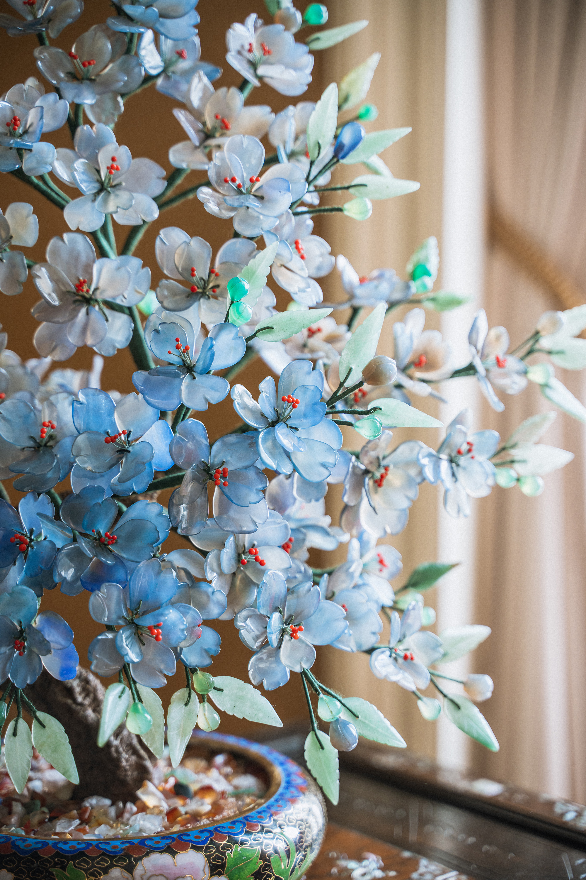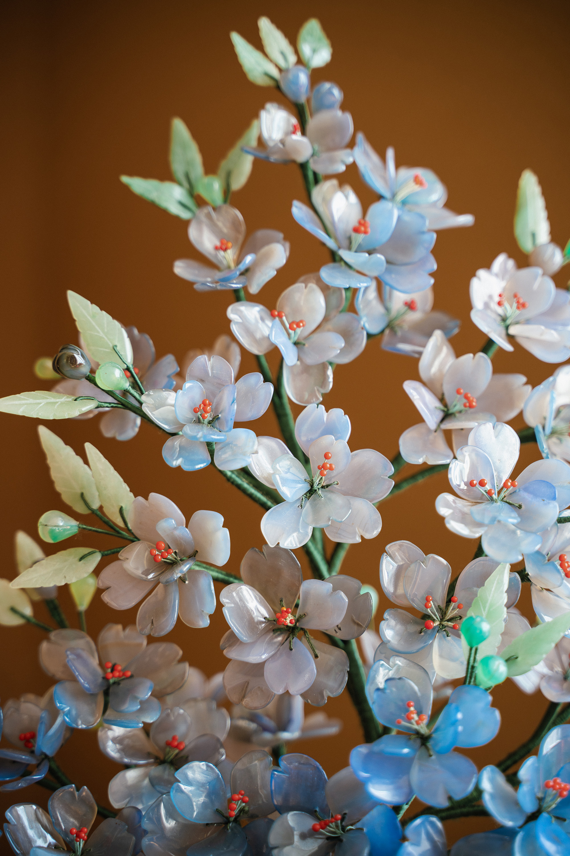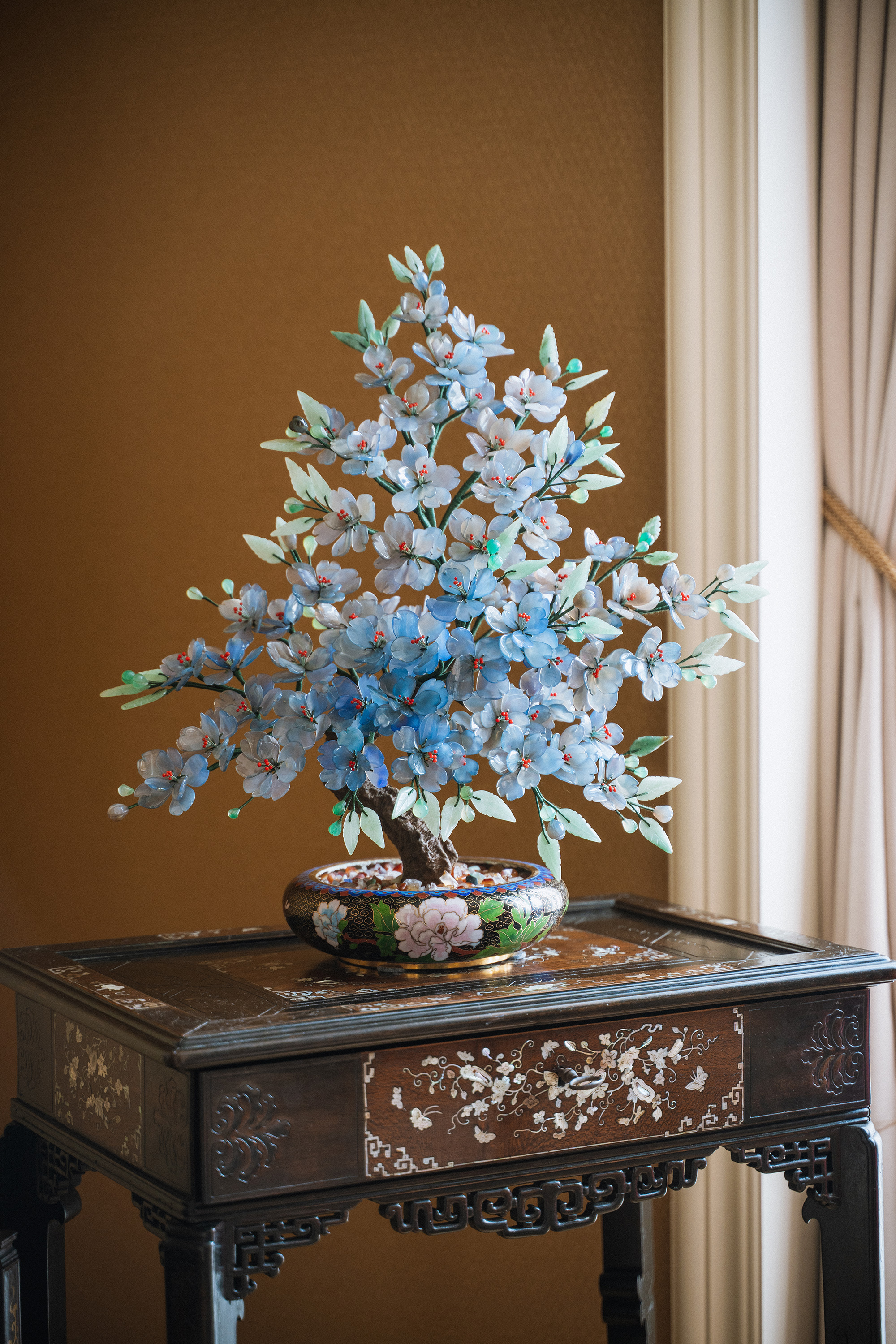 中国出品宝相花纹景泰蓝盆装饰「蓝韵碧桃」珍宝像生盆景