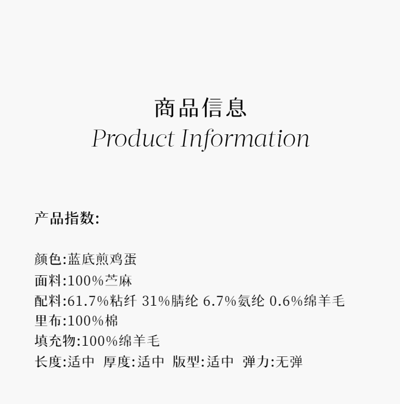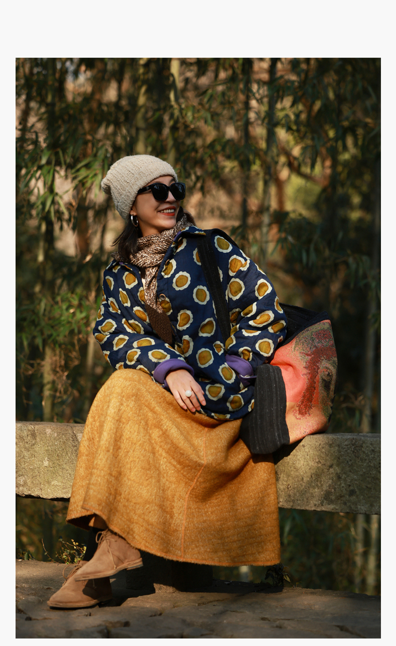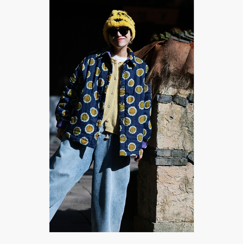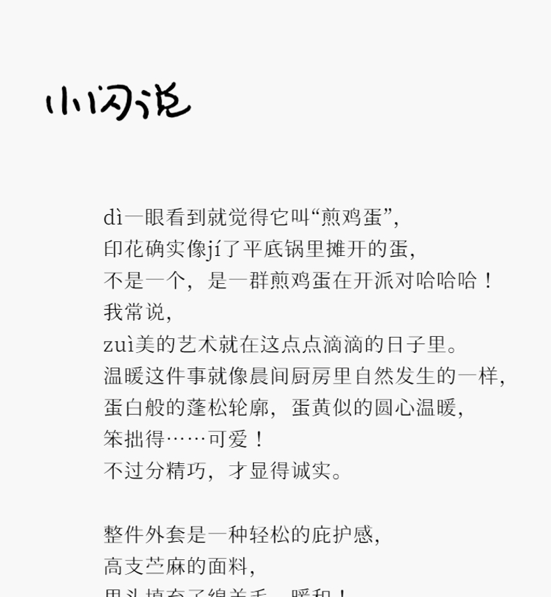 Petit Schan小闪 CLO#1028 Fried eggs 煎鸡蛋 高支苎麻印花绵羊毛厚外套