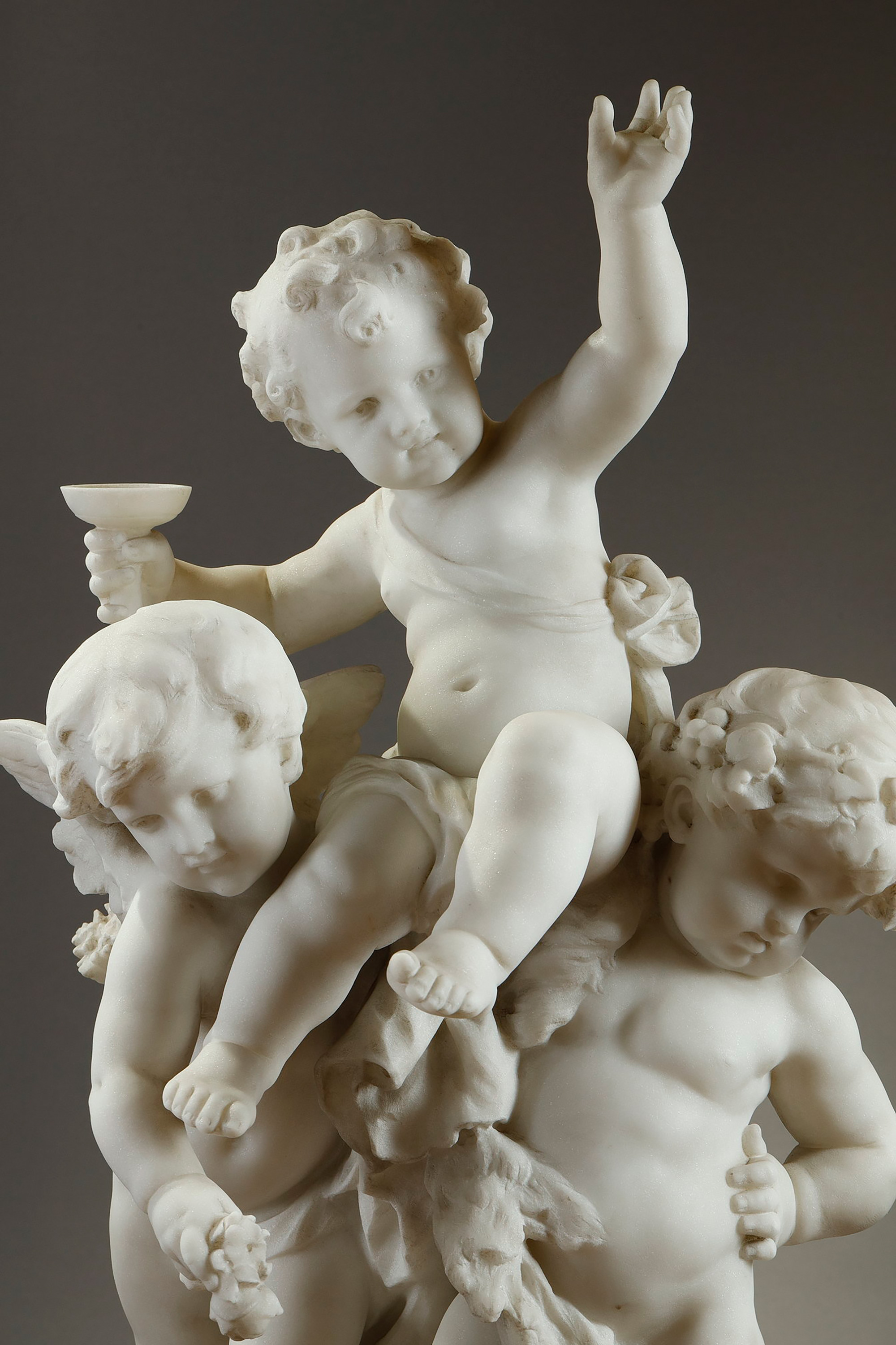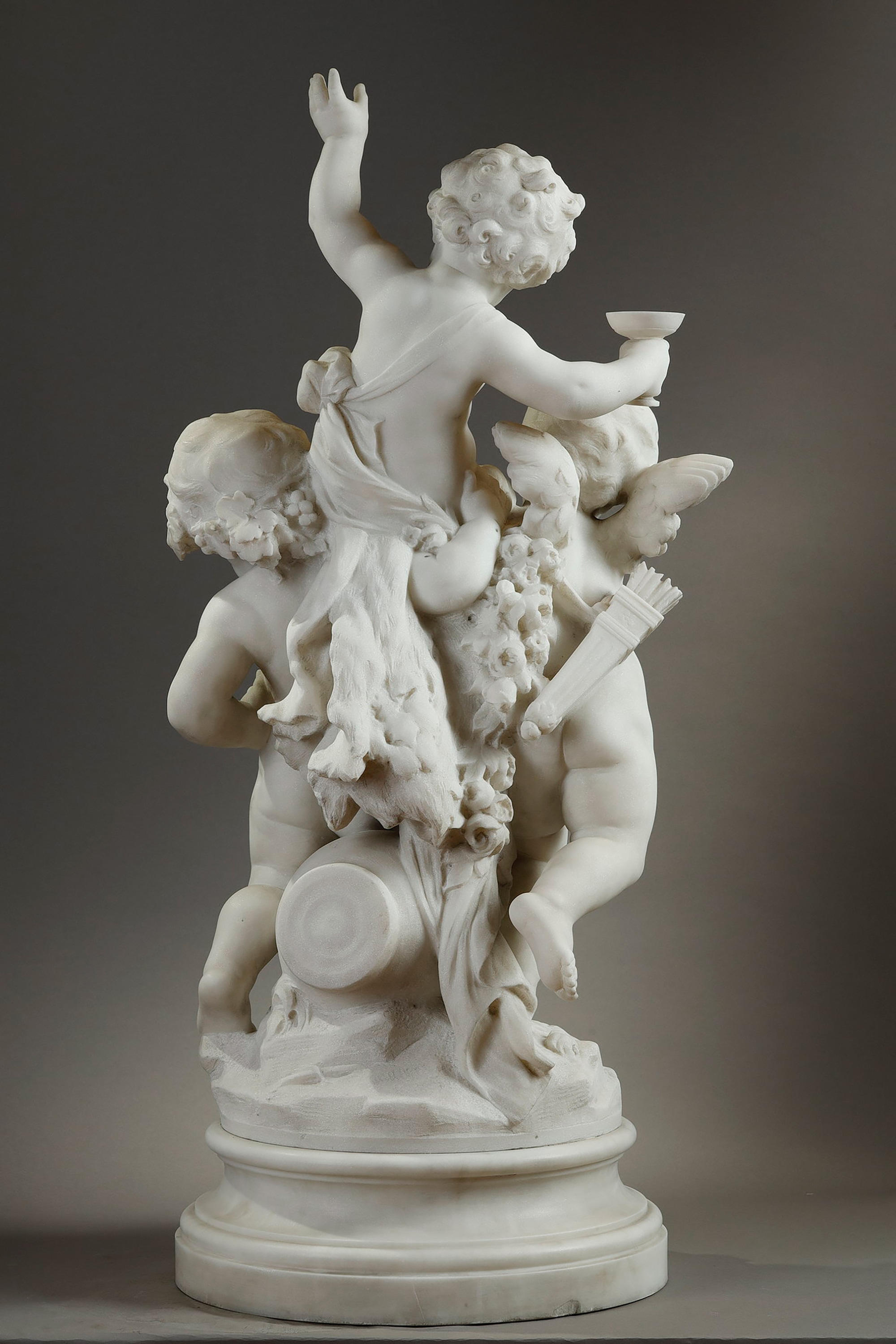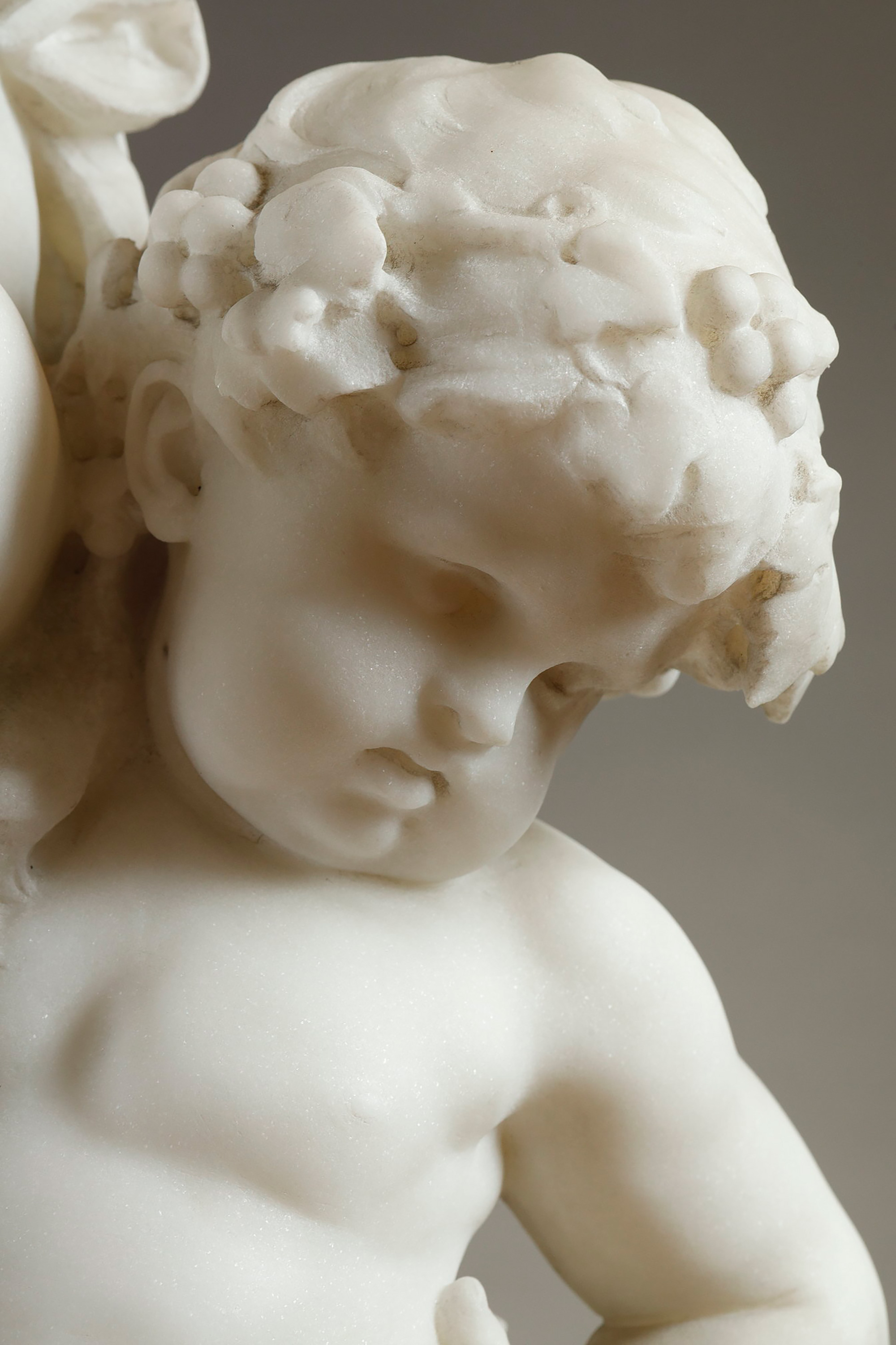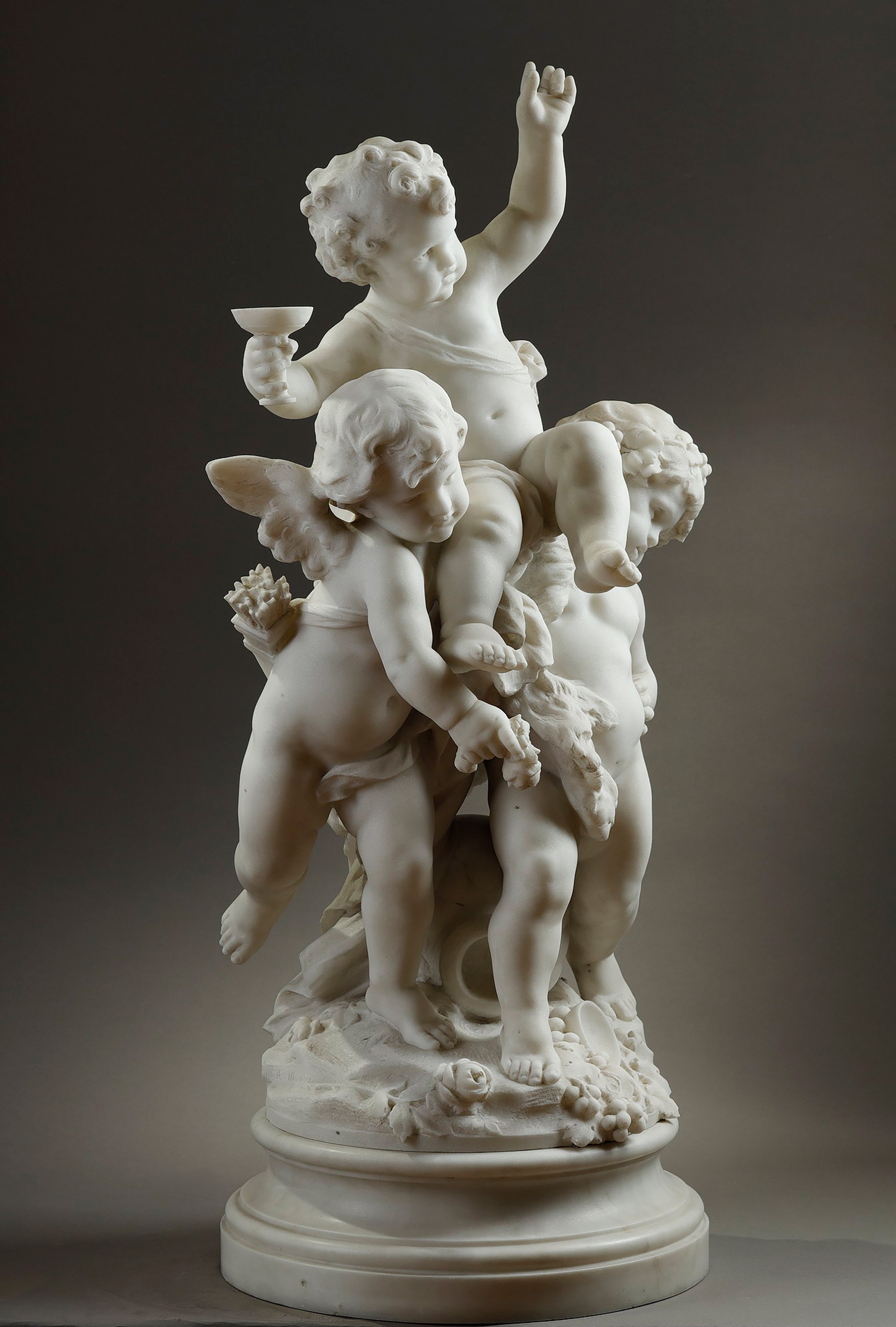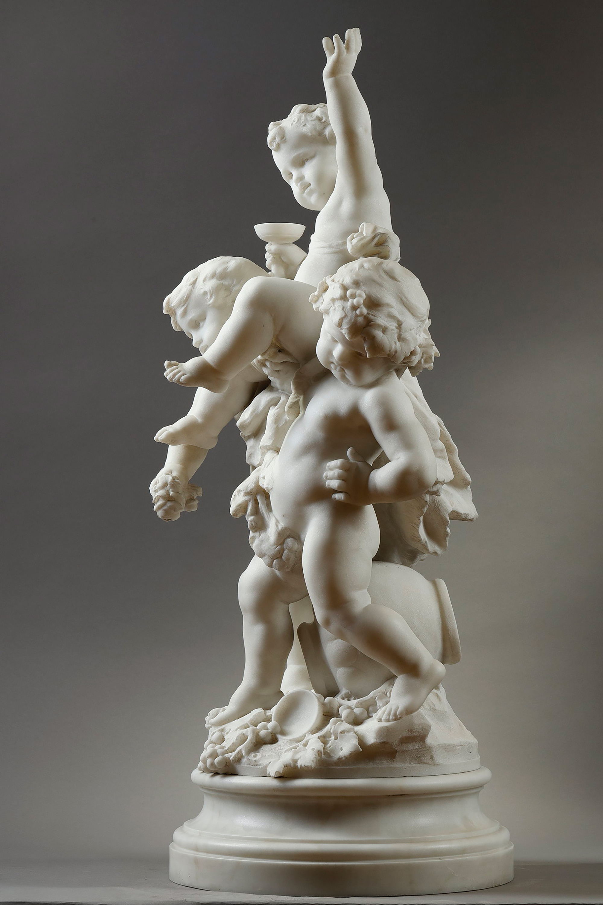 19世纪法国著名雕塑家Math. Moreau签名创作神话人物主题卡拉拉大理石雕塑作品《年轻的巴克斯》
