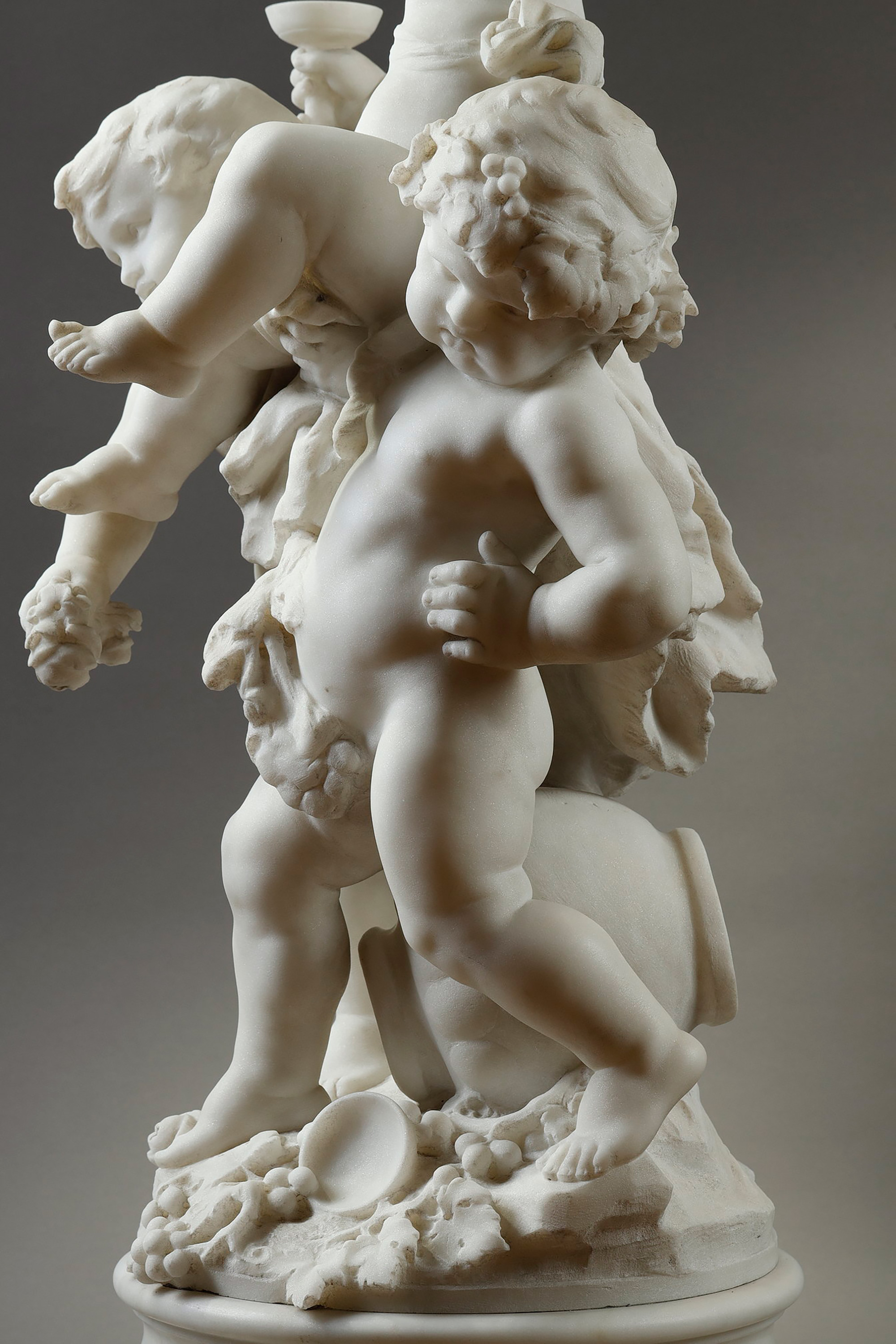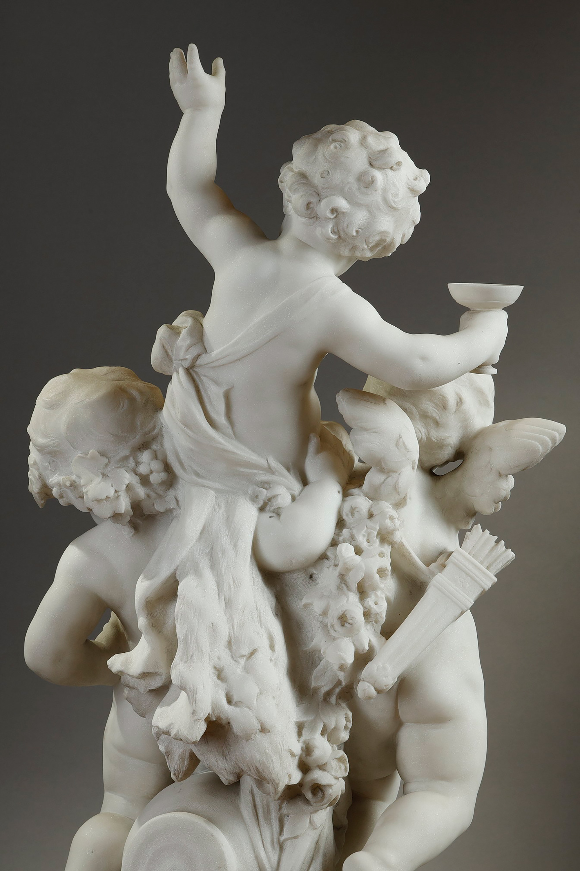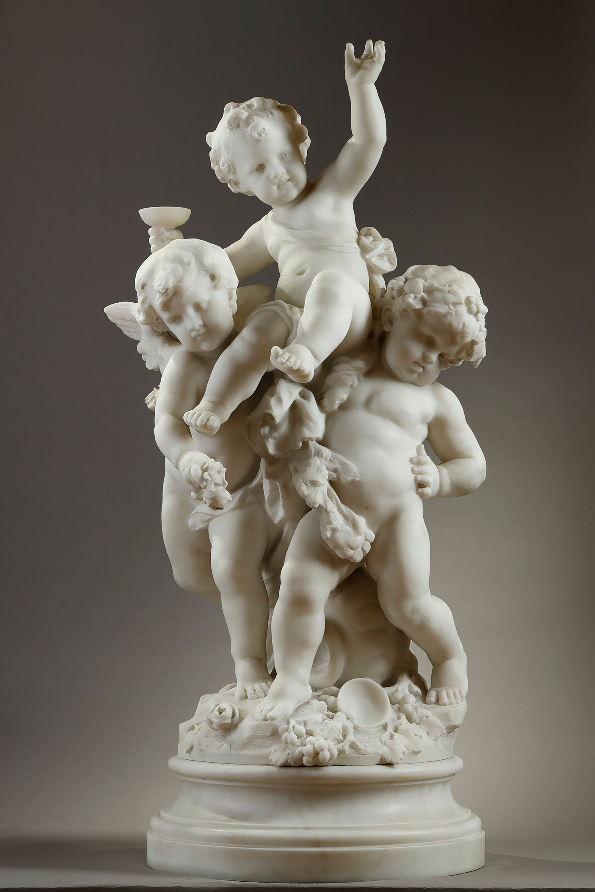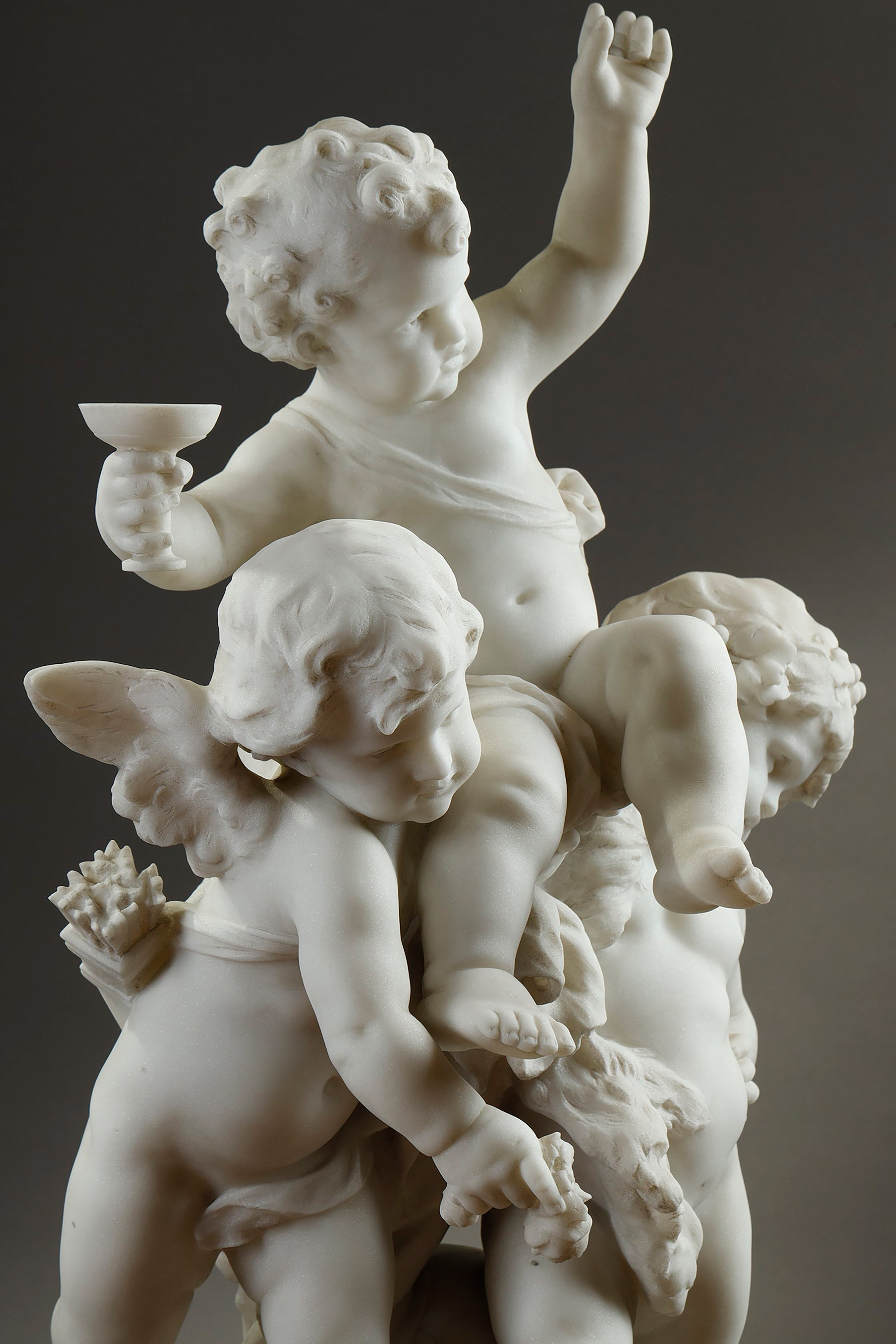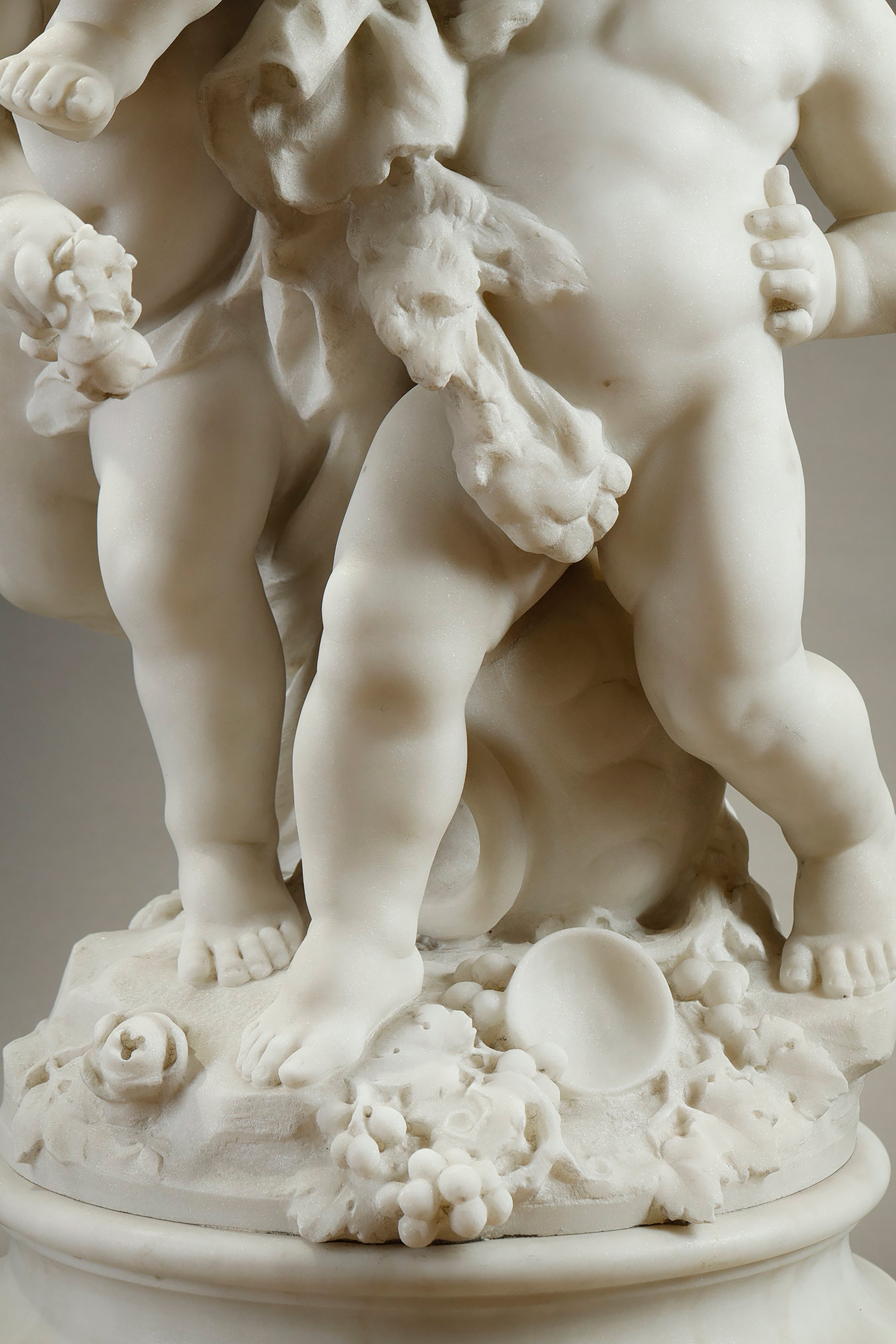 19世纪法国著名雕塑家Math. Moreau签名创作神话人物主题卡拉拉大理石雕塑作品《年轻的巴克斯》