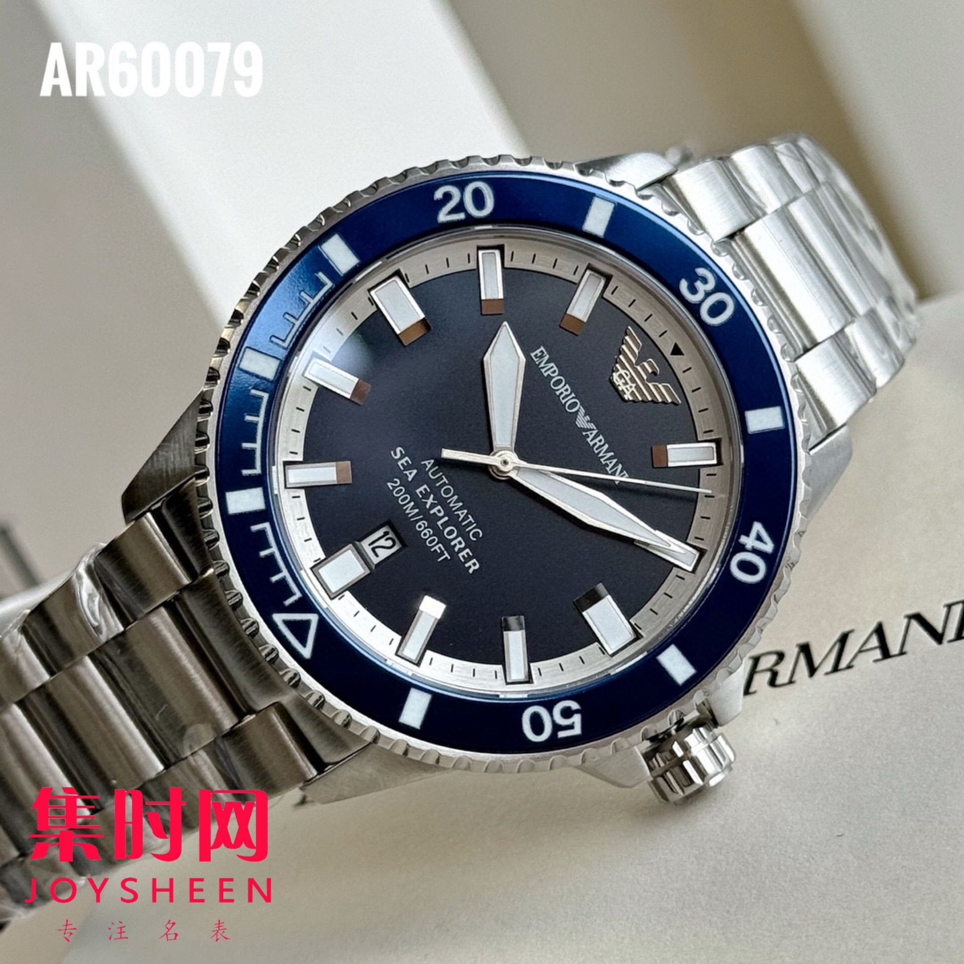 原单阿玛尼AR60079蓝水鬼 钢带男士机械腕表
